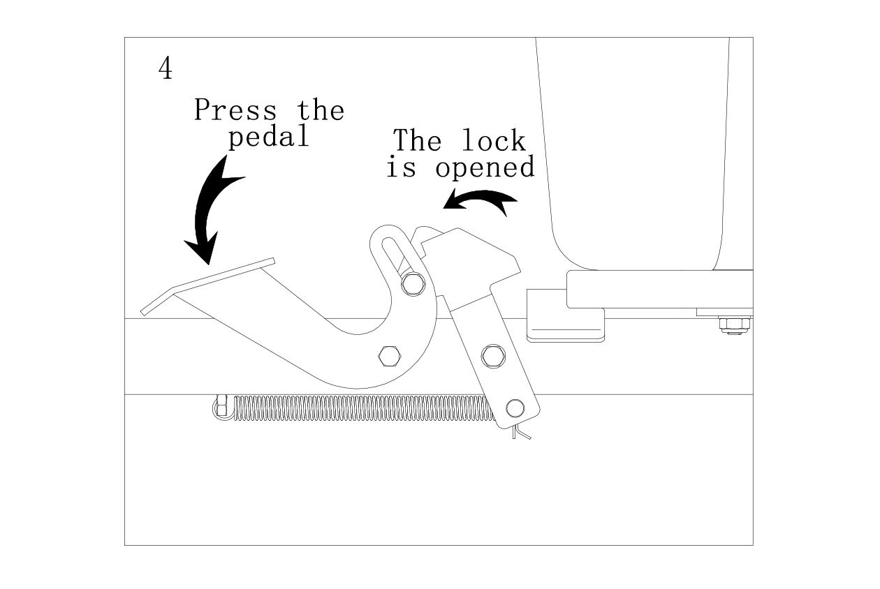 Warning: Do not press the pedal after the safety device is locked.