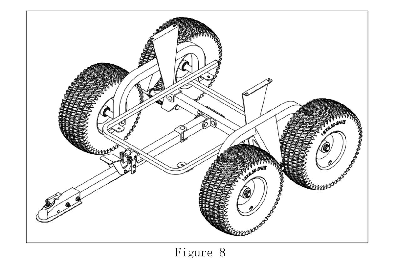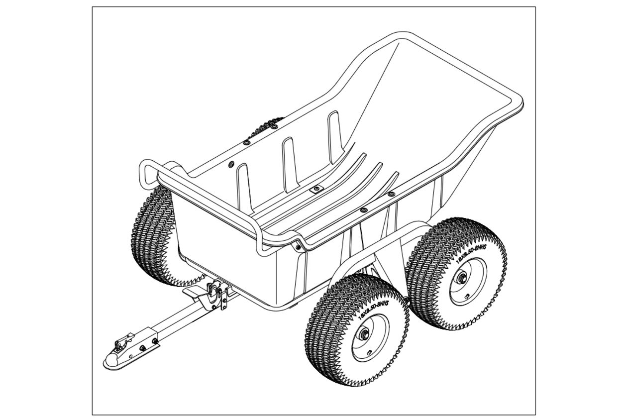 DO NOT make sharp turns that may cause the Lawn/Garden Tractor or ATV tires to rub against the Tipper Trailer.