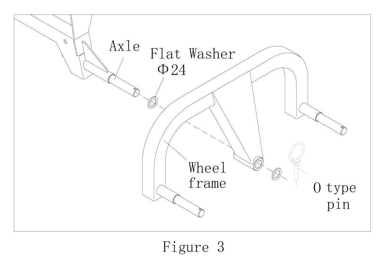 As shown in Figure 3, use 2 x Flat Washers φ24 and 1 x 0 type pin to install a Wheel Frame on the Axle on one side of the Beam, and install the Wheel Frame on the other side in the same way (see Figure 4).
