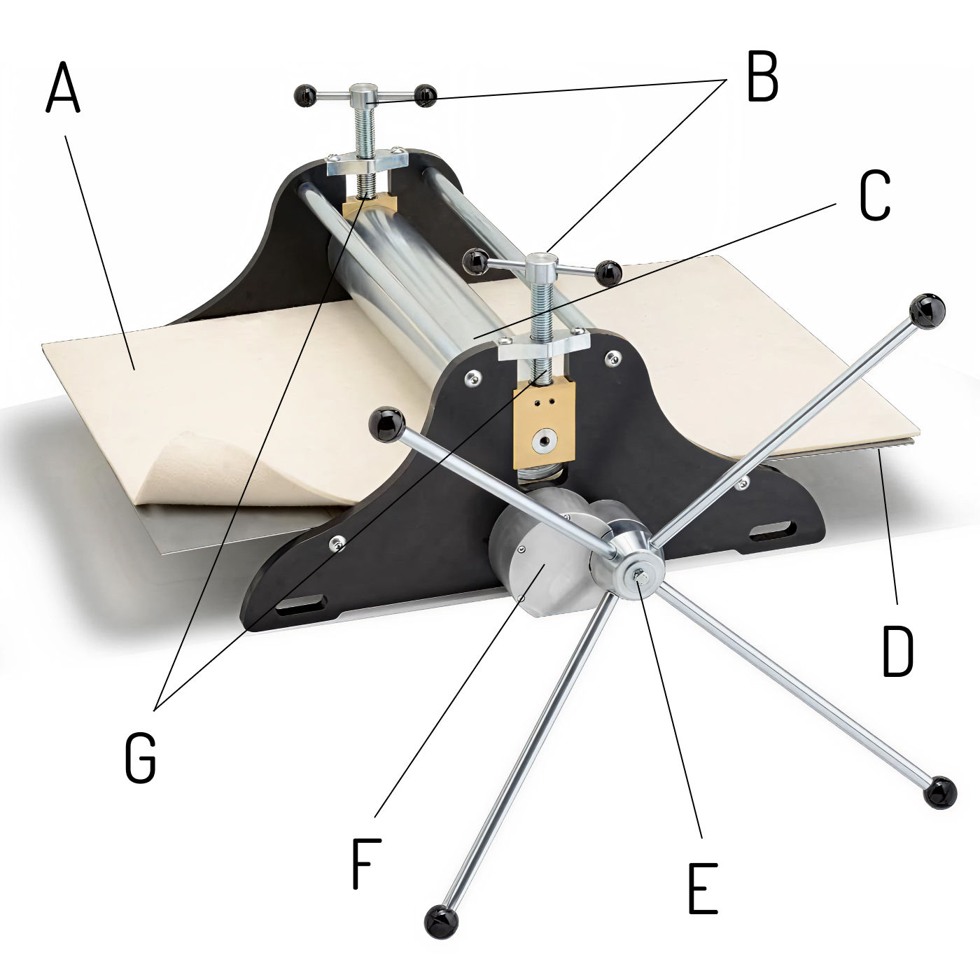 The manual press 5070 1:3, was created by RGM and specifically designed for intaglio printing. It is a simple tool to