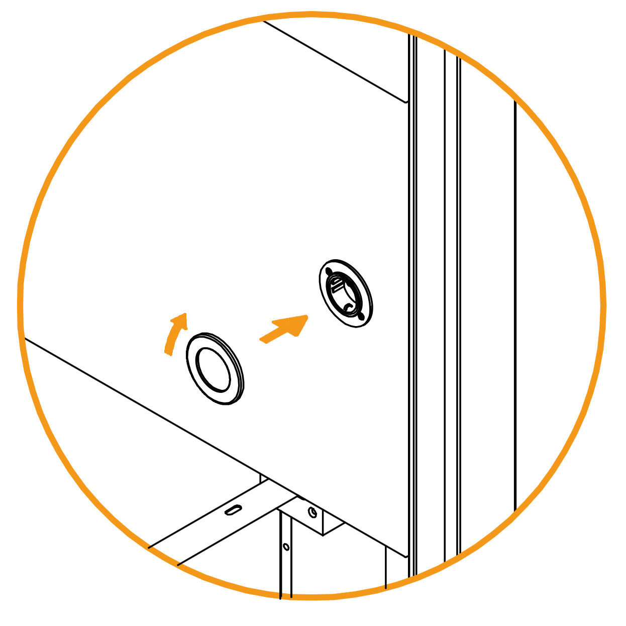 Fasten the Bolts: Insert the provided bolts through the frame and into the display housing. Tighten them securely to sandwich the upholstered panel between the display and the rear frame.