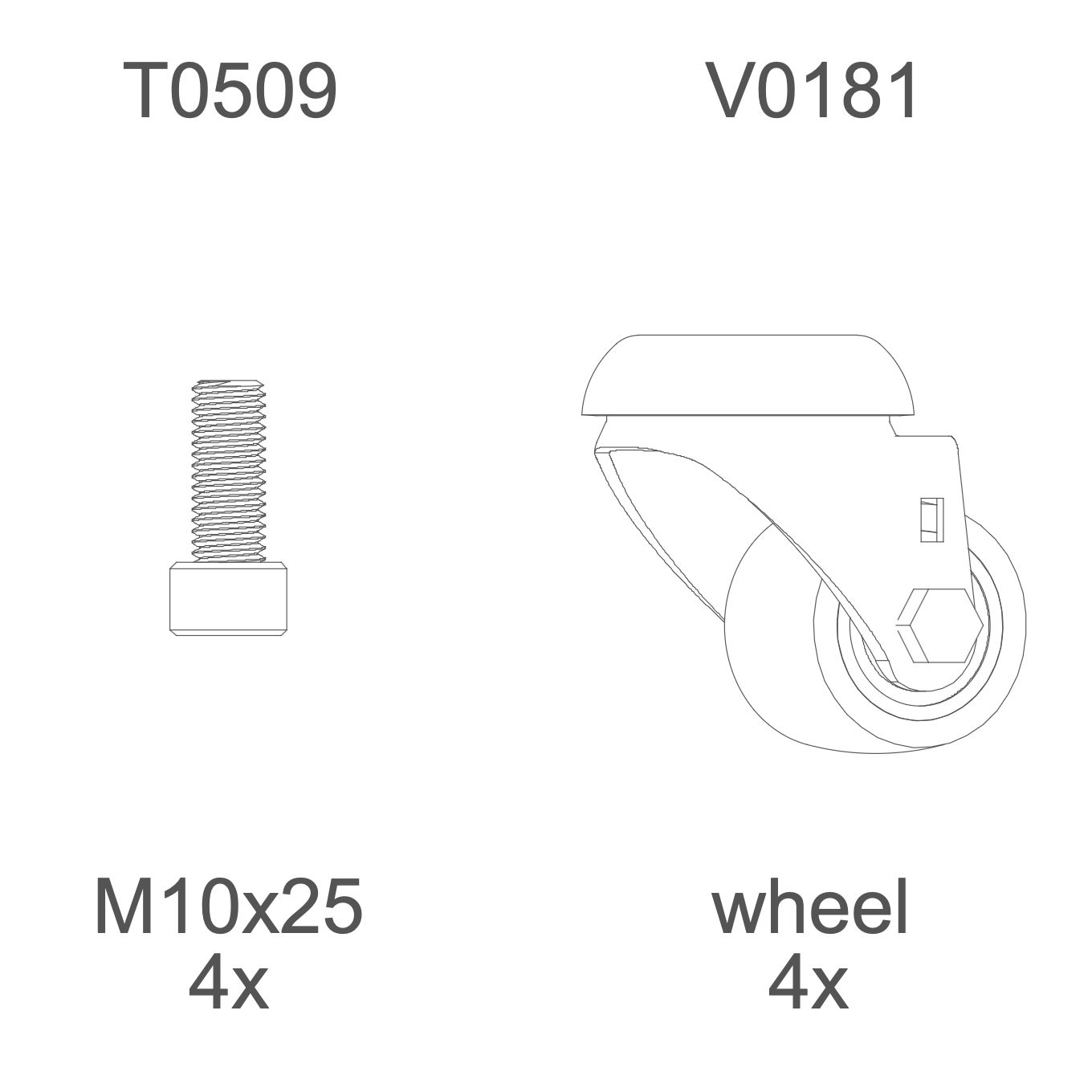 M10×25 mm screw | T0509 | 4×