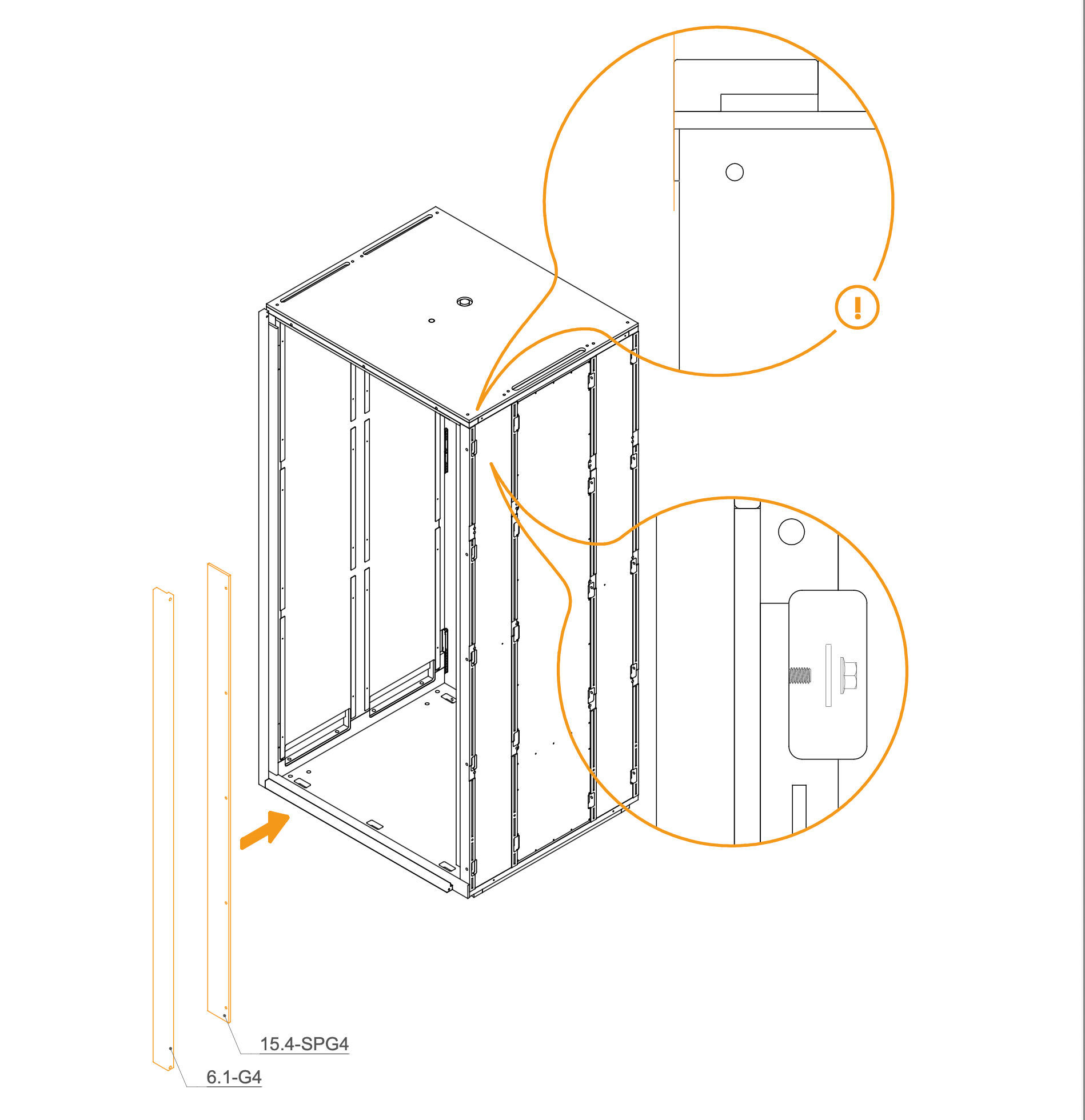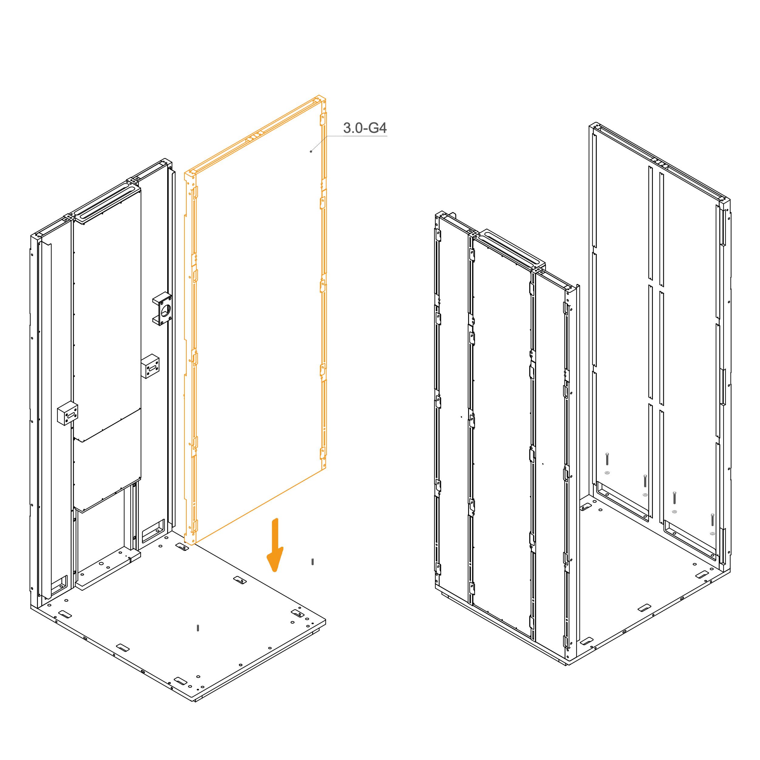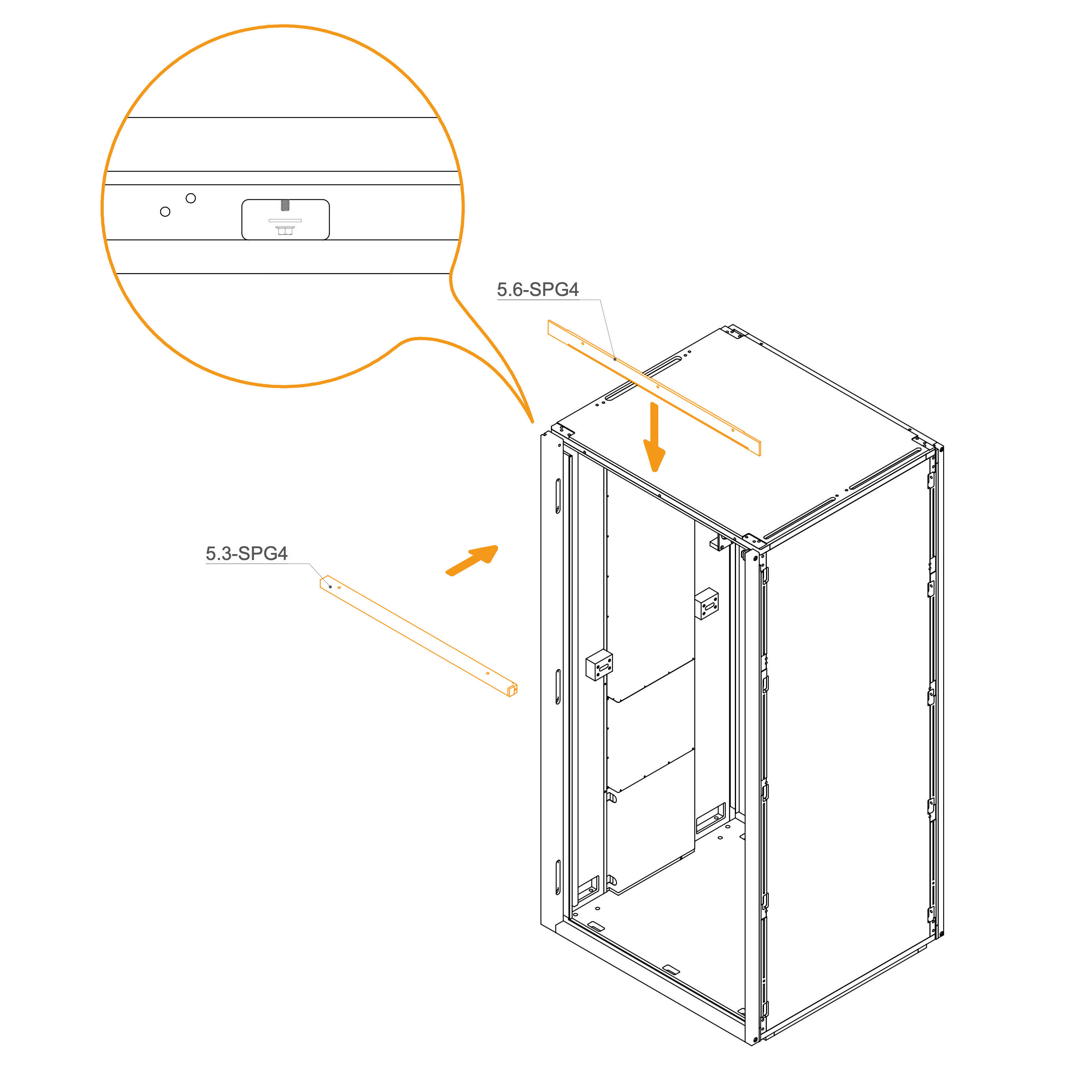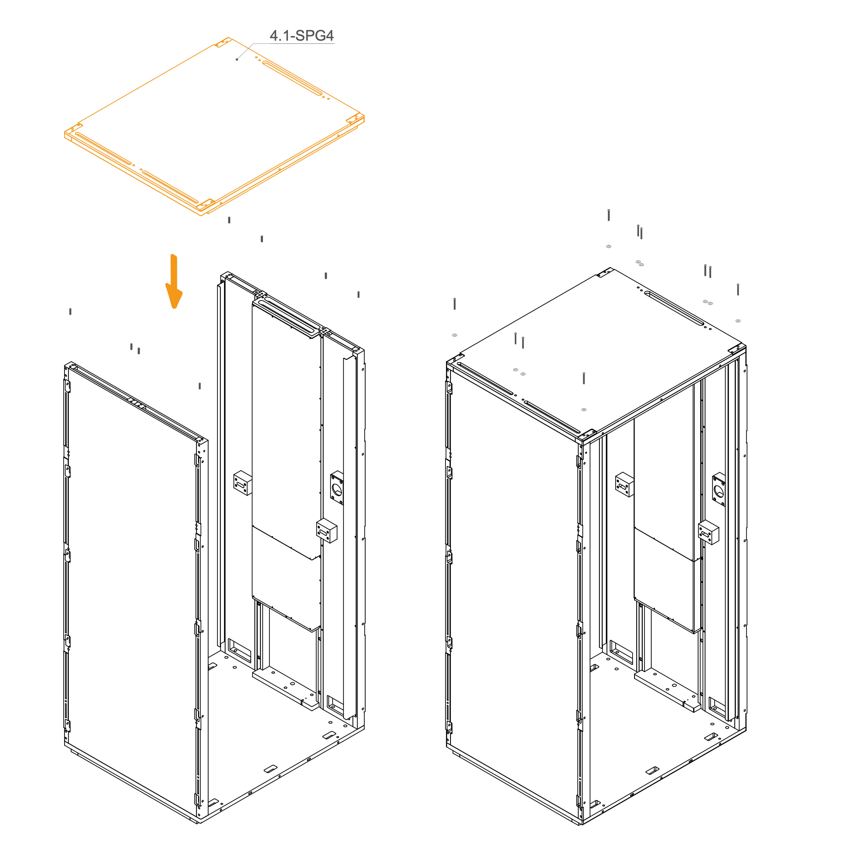 Install the upper panels 8.3-SPG4 by aligning them with the edge of the frame and the screw holes.
