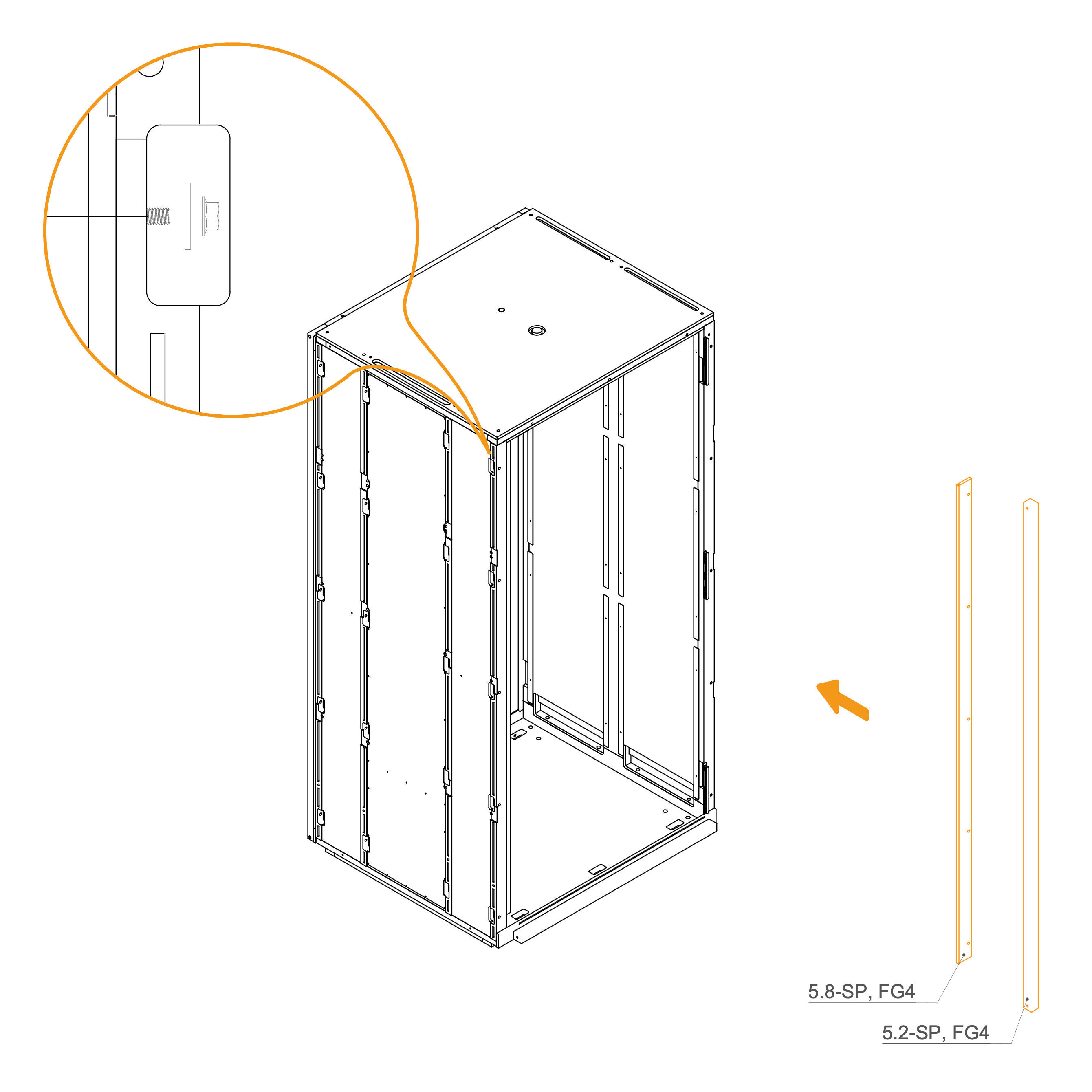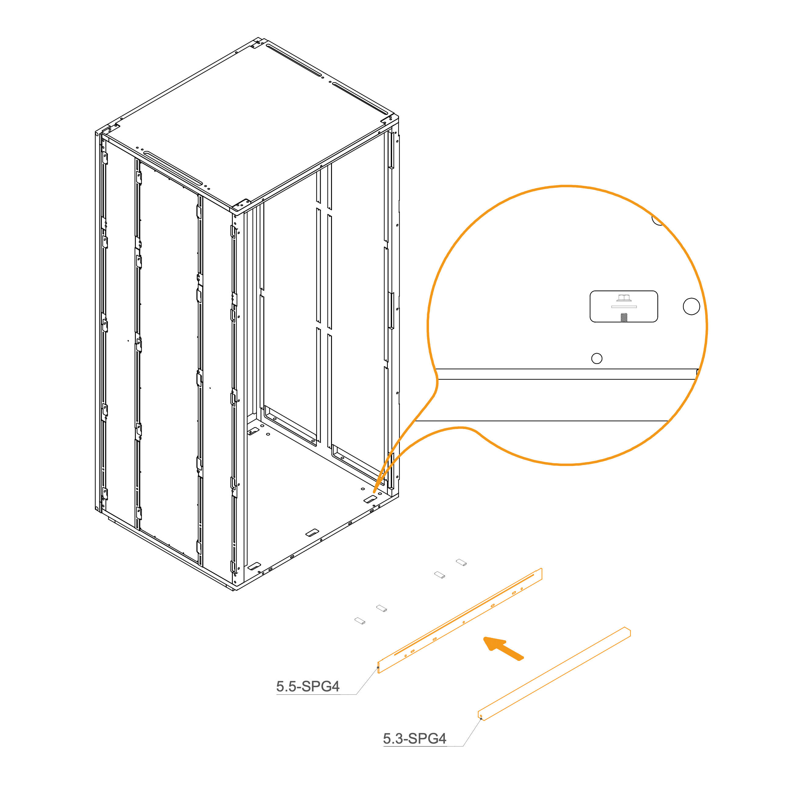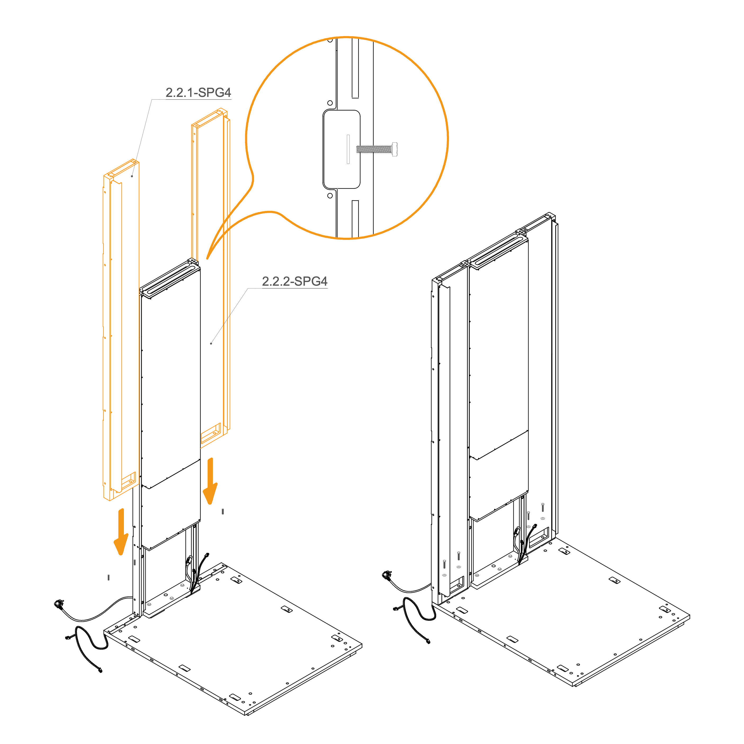 Install the upper panels 8.3-SPG4 by aligning them with the edge of the frame and the screw holes.