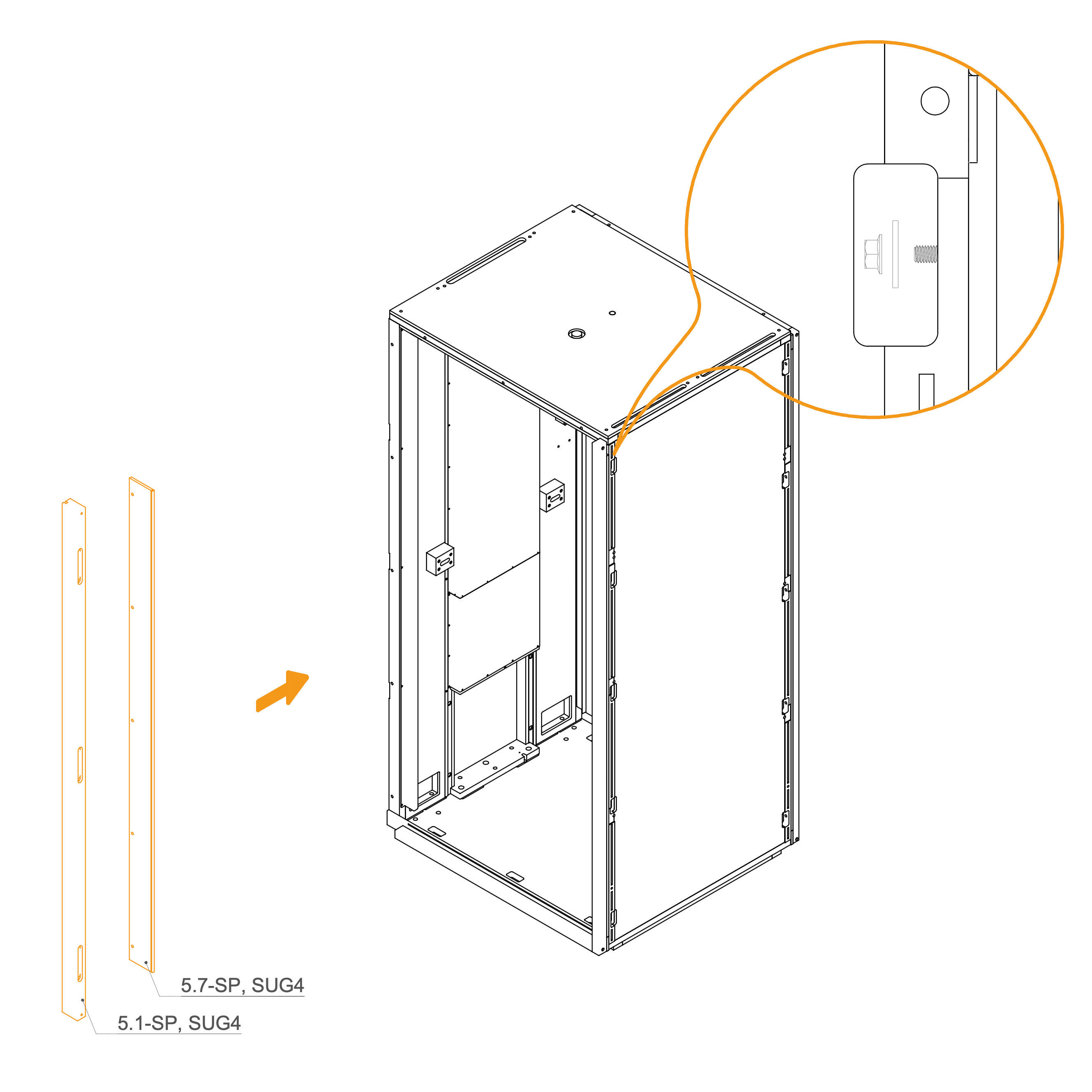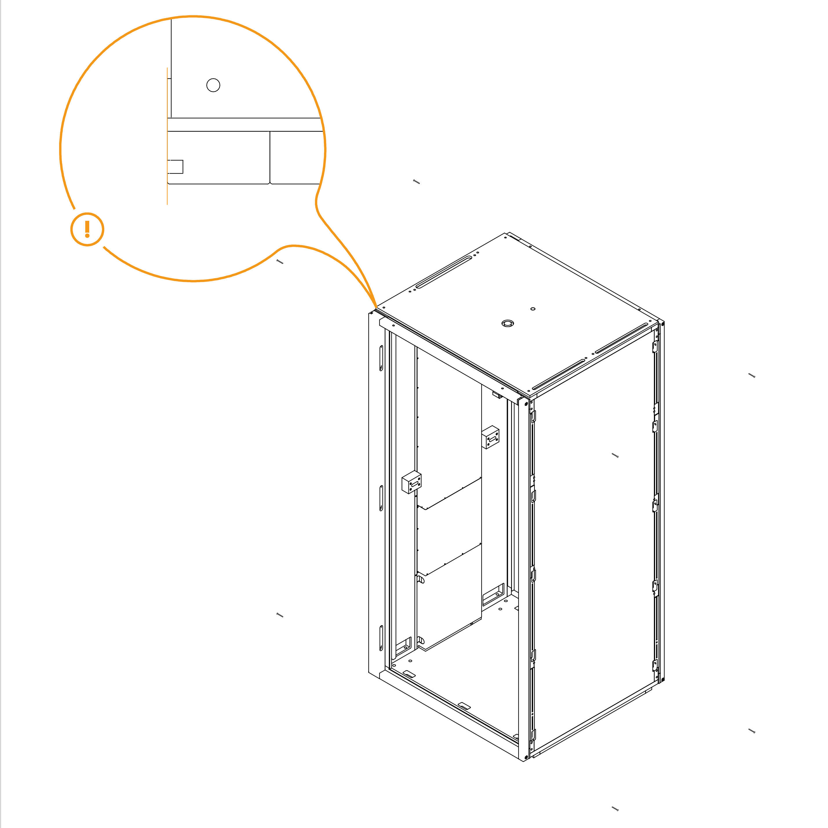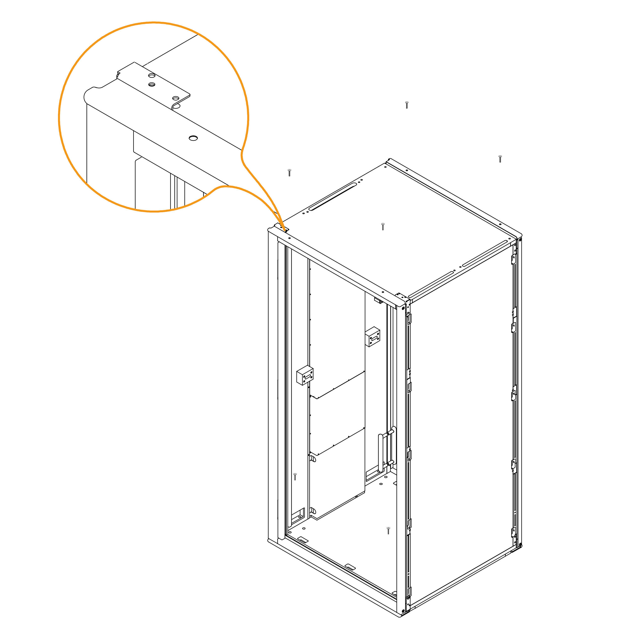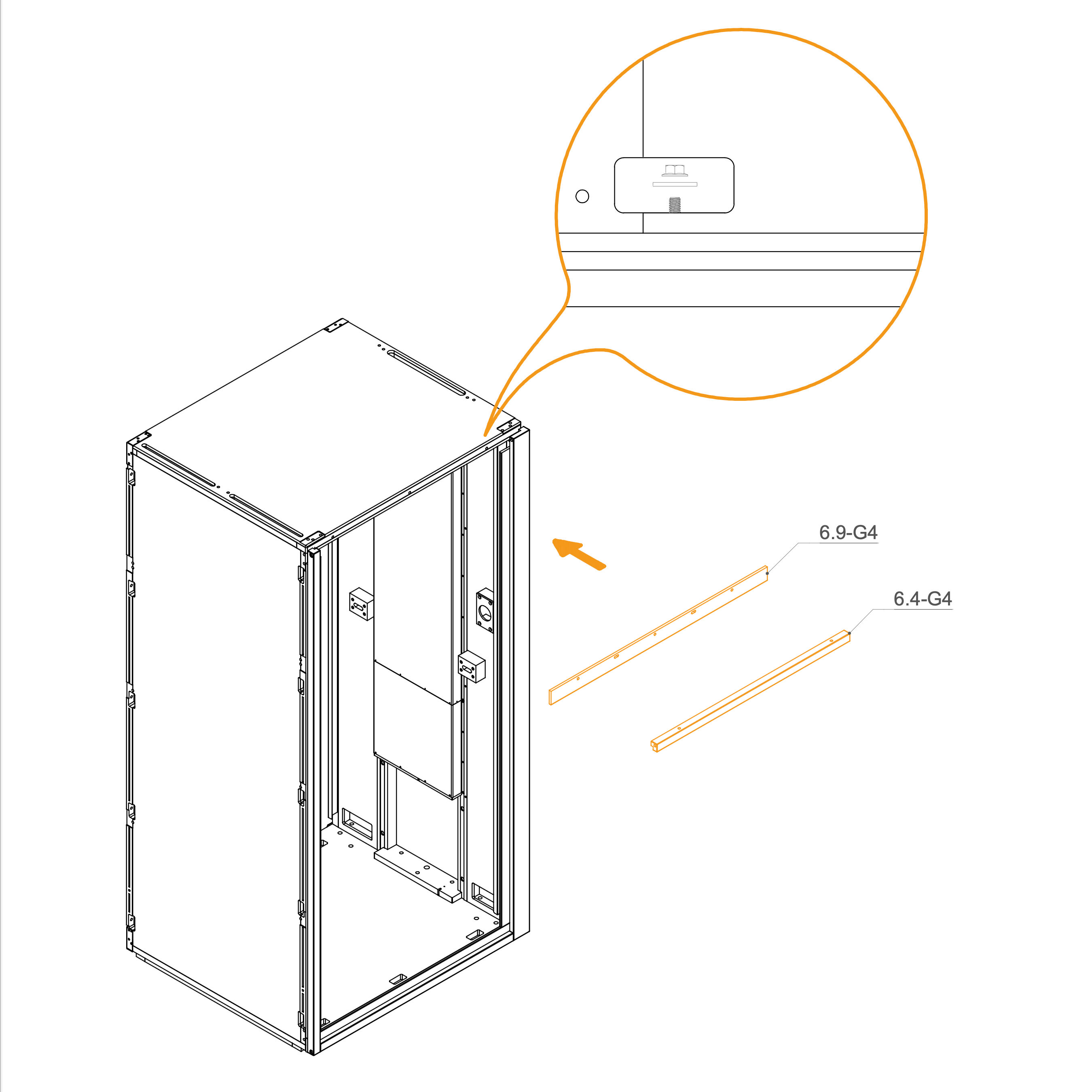 Install the upper panels 8.3-SPG4 by aligning them with the edge of the frame and the screw holes.