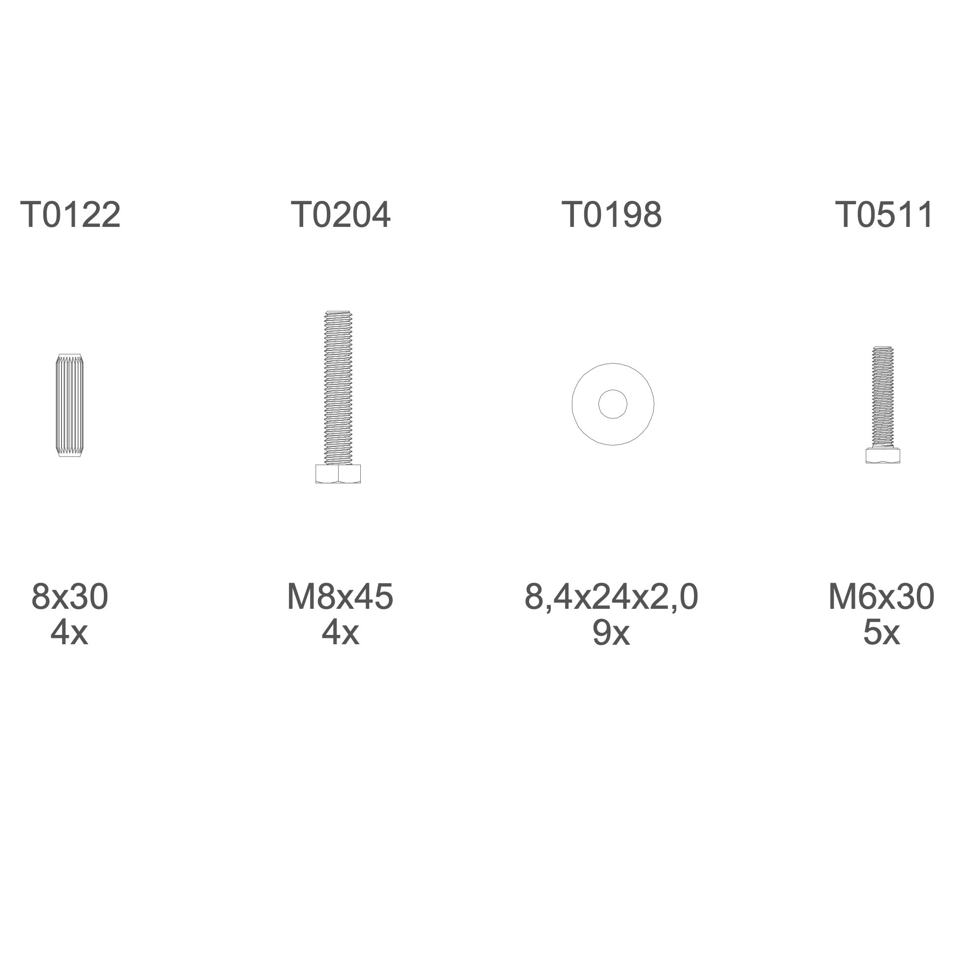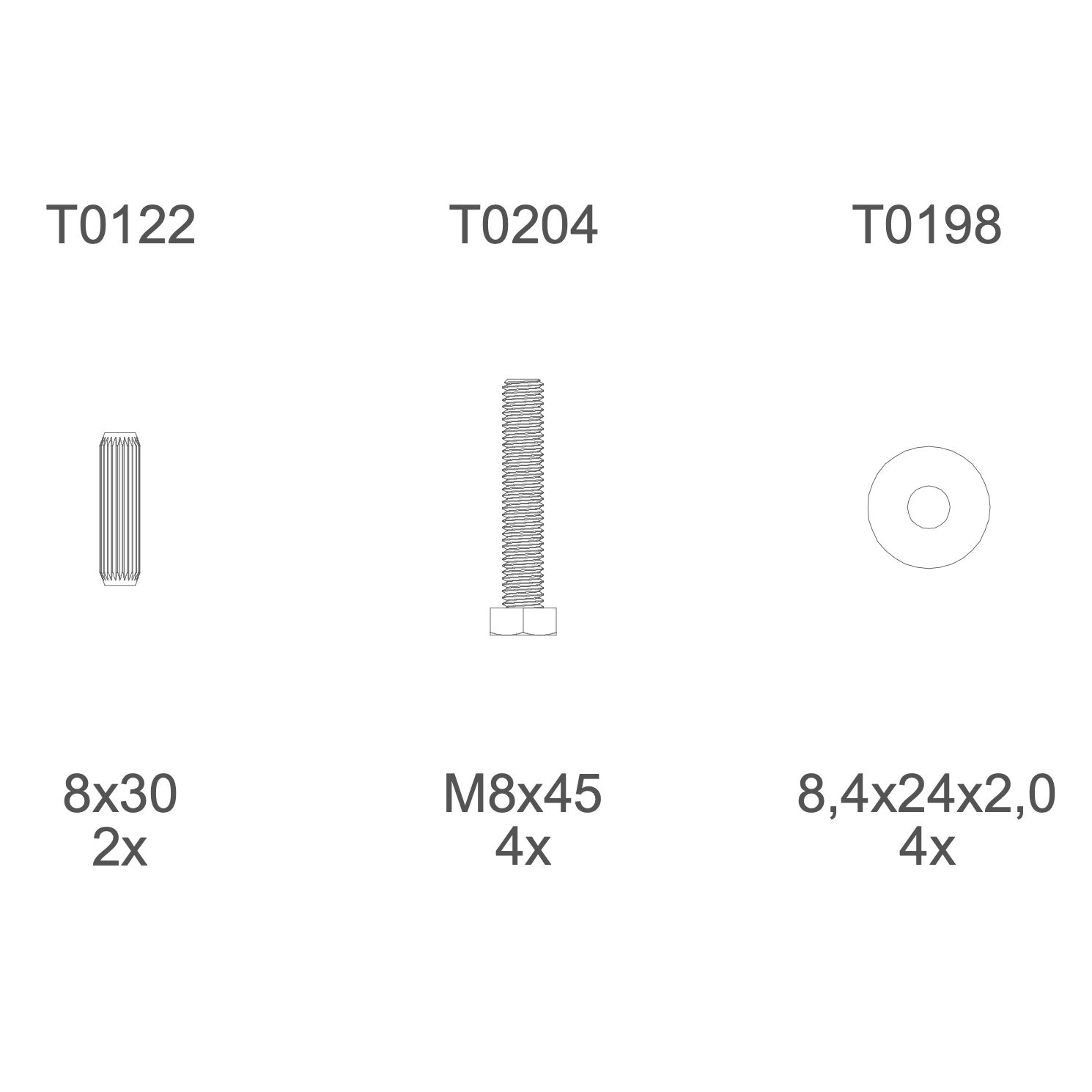 T0204 | M8×45 mm bolt | 4×