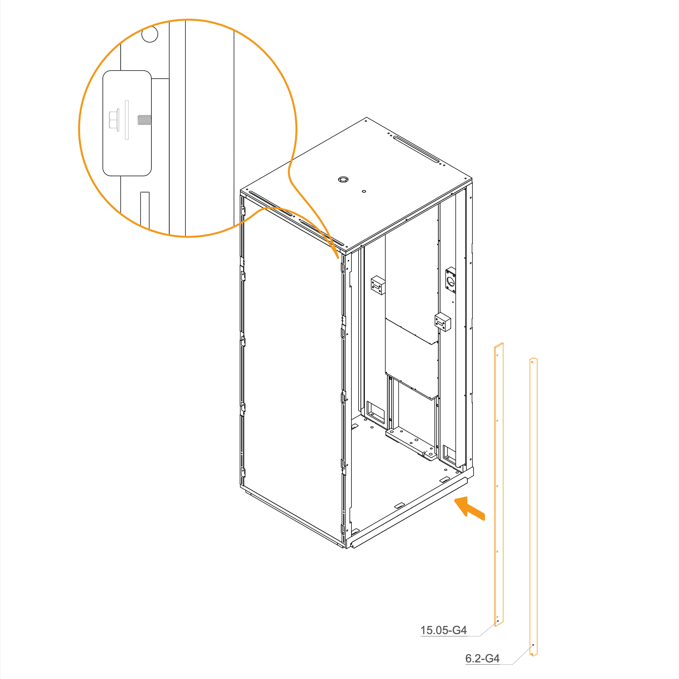 Place the two vertical frames, 6.2-G4 and 15.05-G4, in their designated positions.