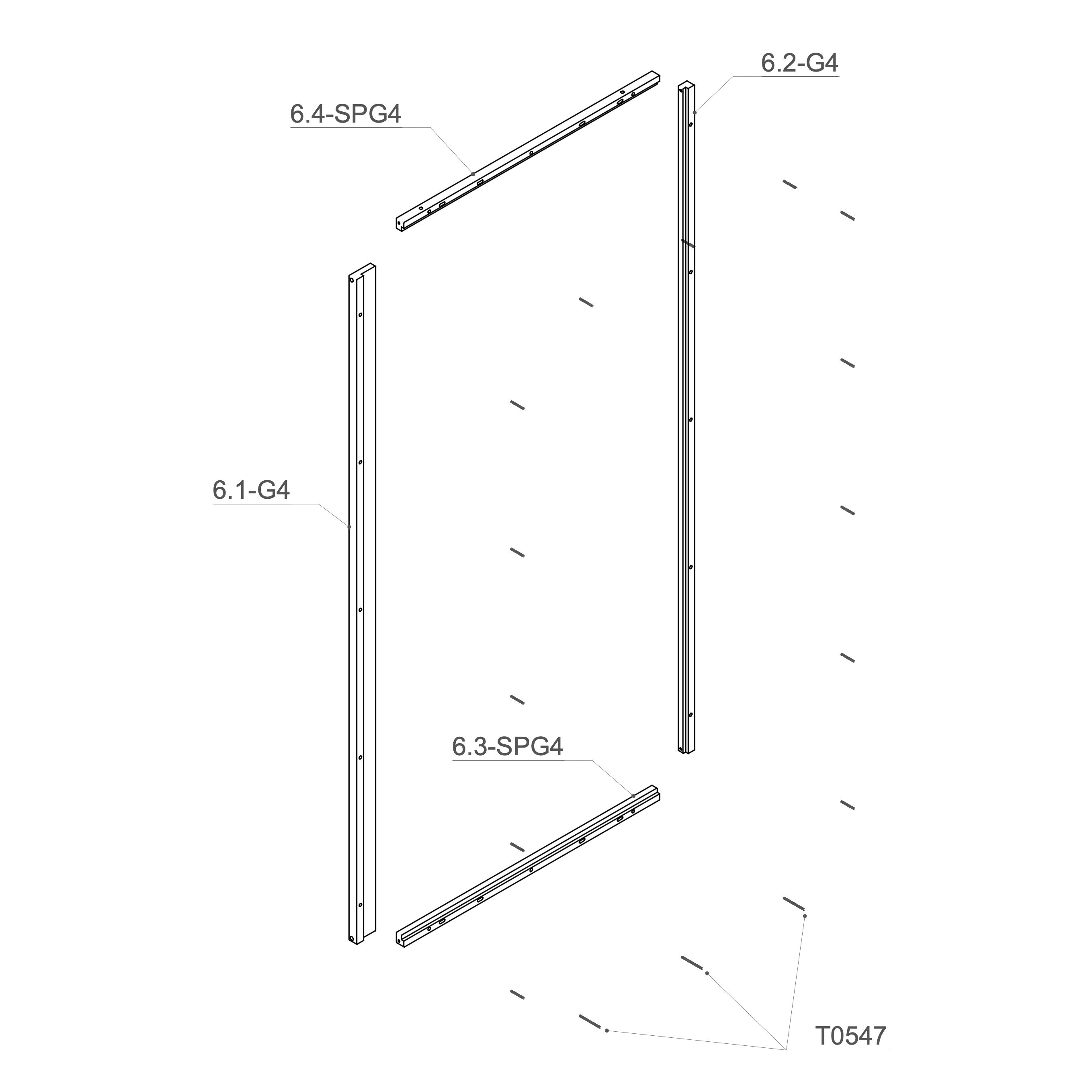 Place the M6×90 mm threaded rod (T0547) into the 6.3-SPG4 and M6×50 mm threaded rod (T0515) into the 6.1-G4, 6.2-G4 and 6.4-SPG4.