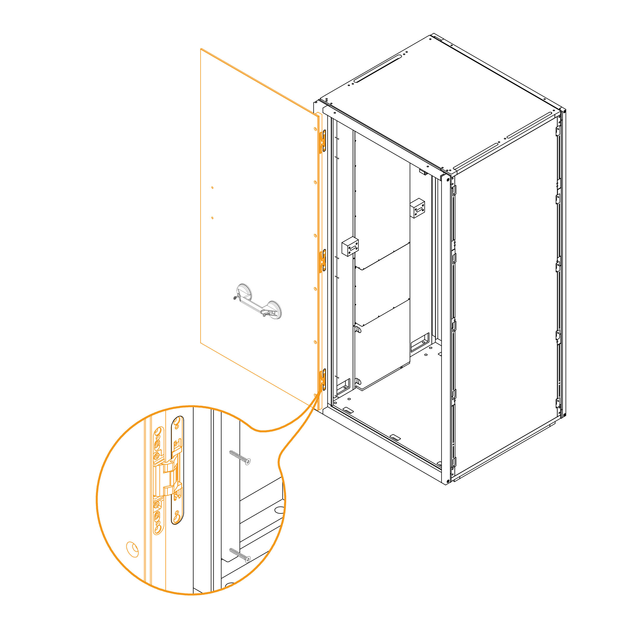 Place the hinge covers over the hinges on the door frame as shown.