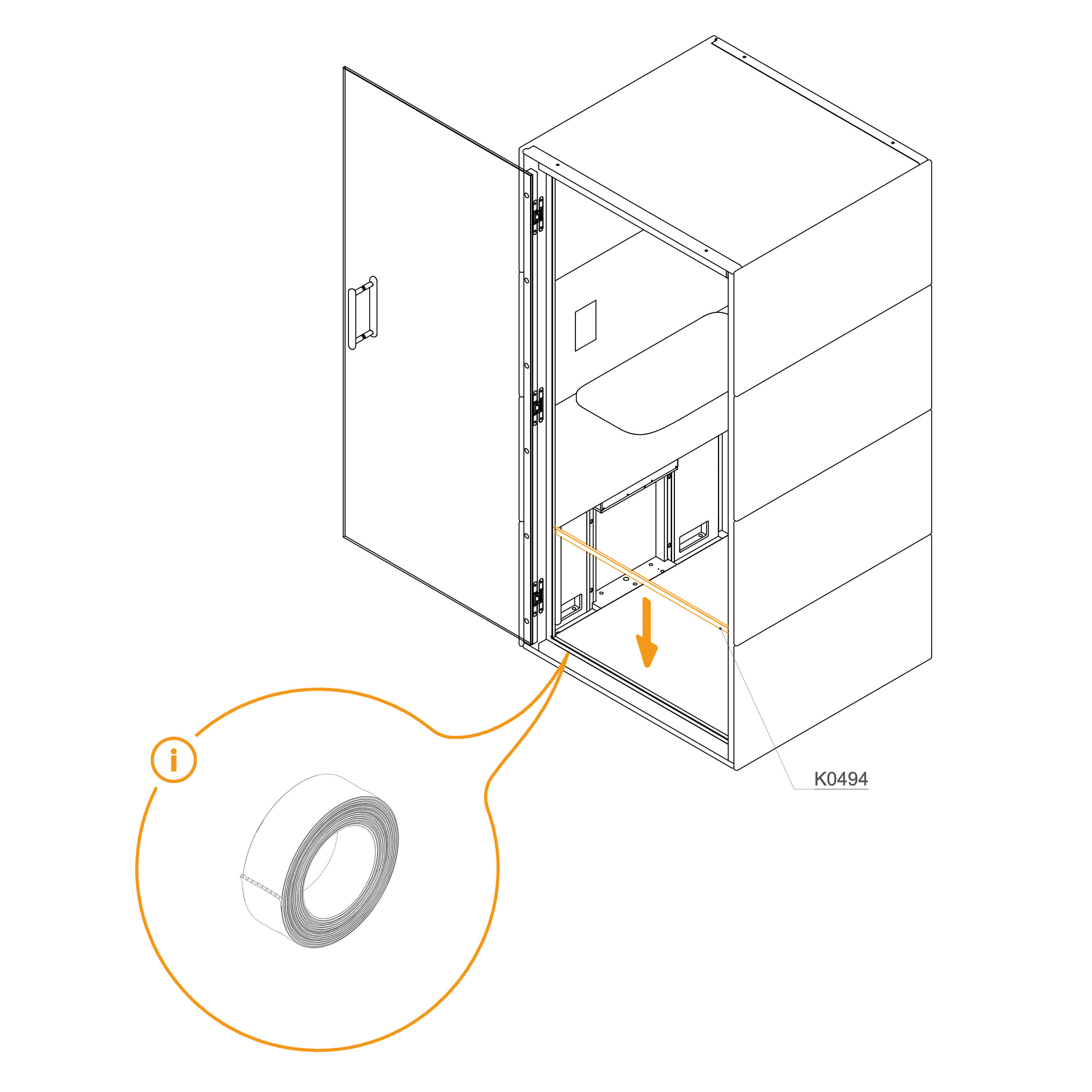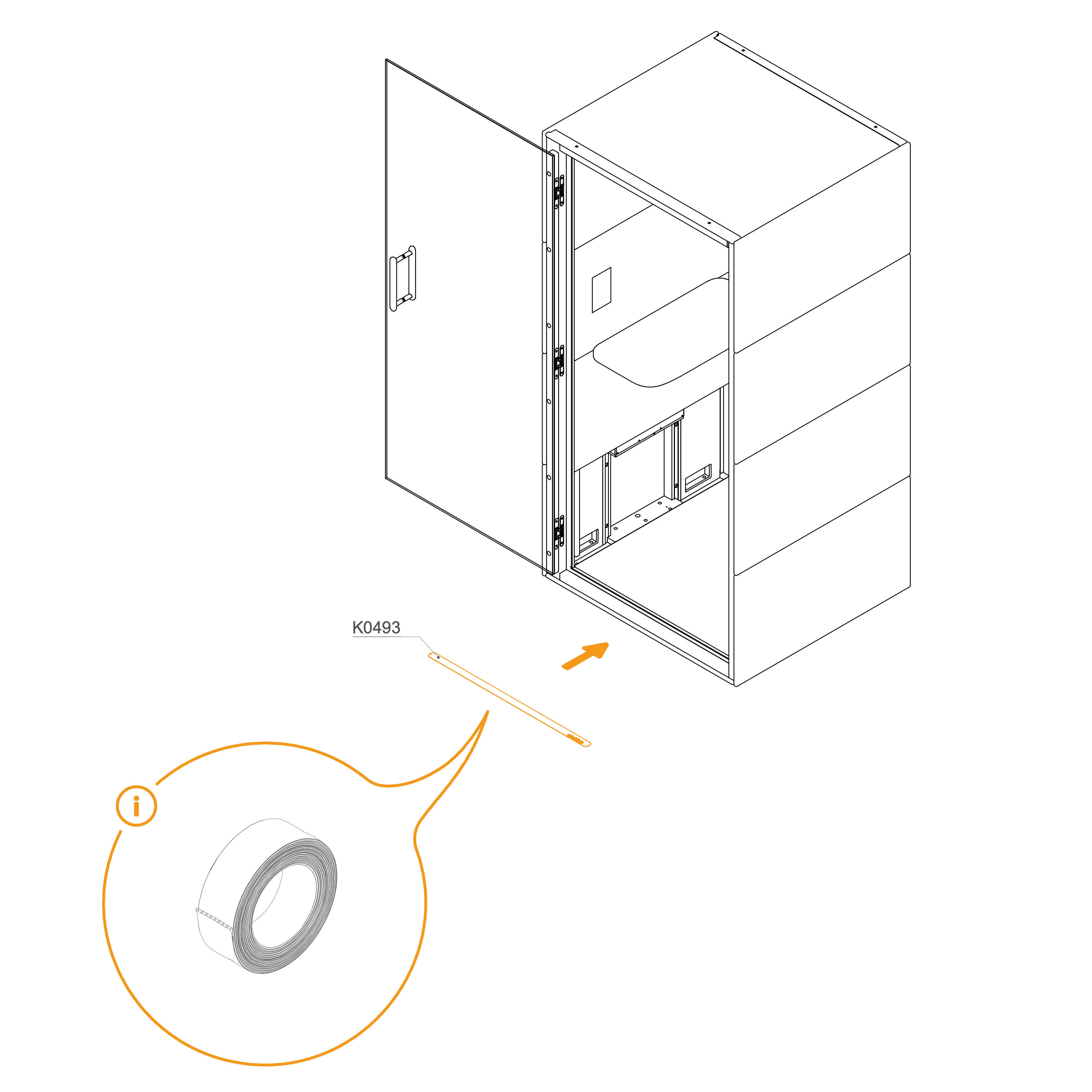 Insert the three spacers (T0215) into the cutouts located on the door side of the pod.
