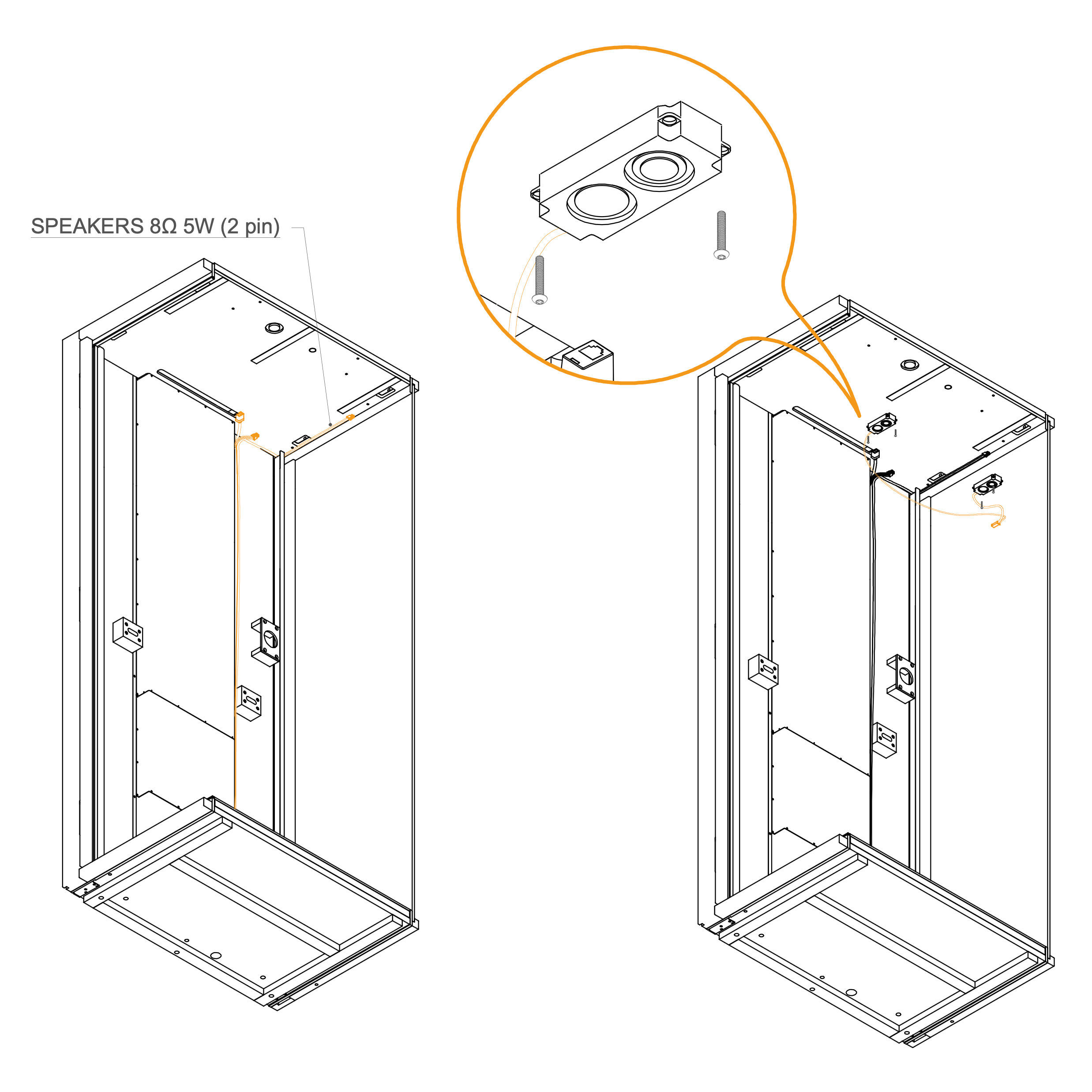 Note: Ensure the cables are oriented upwards as shown in the diagram.