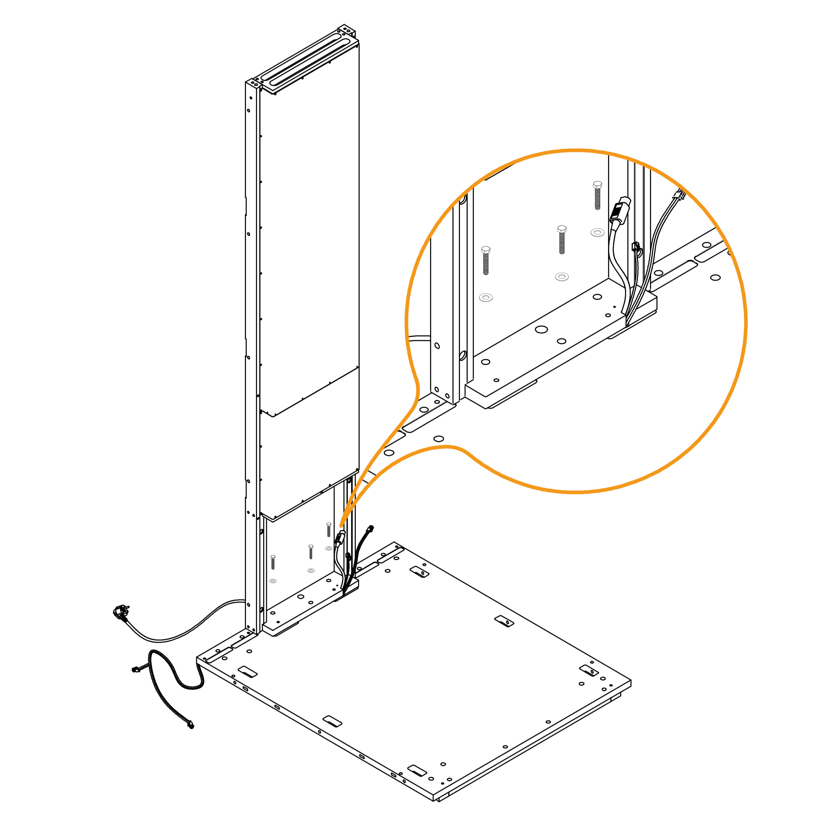 Using a Phillips head screwdriver, partially screw in the standing feet. Leave approximately 20 mm of clearance to allow for future adjustments—do not fully tighten them at this stage.