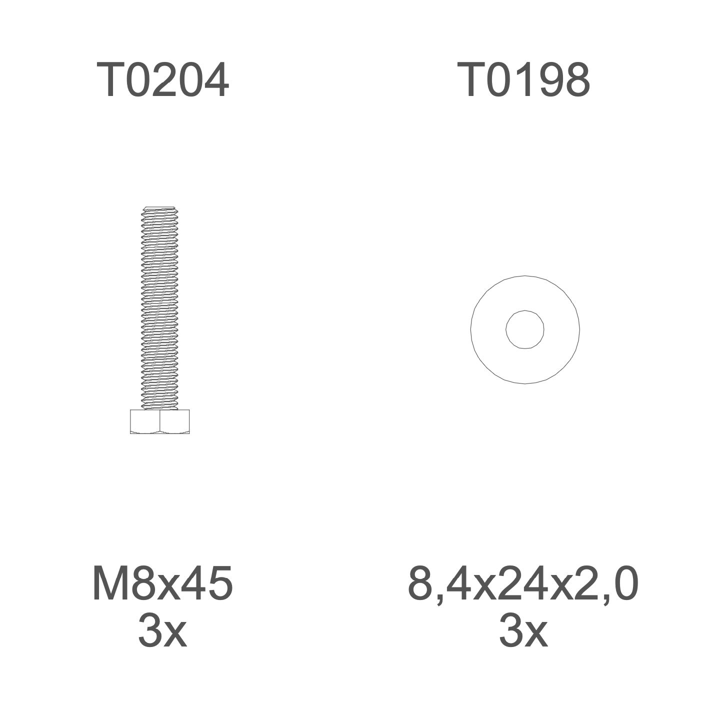 T0204 | M8×45 mm bolt | 3×