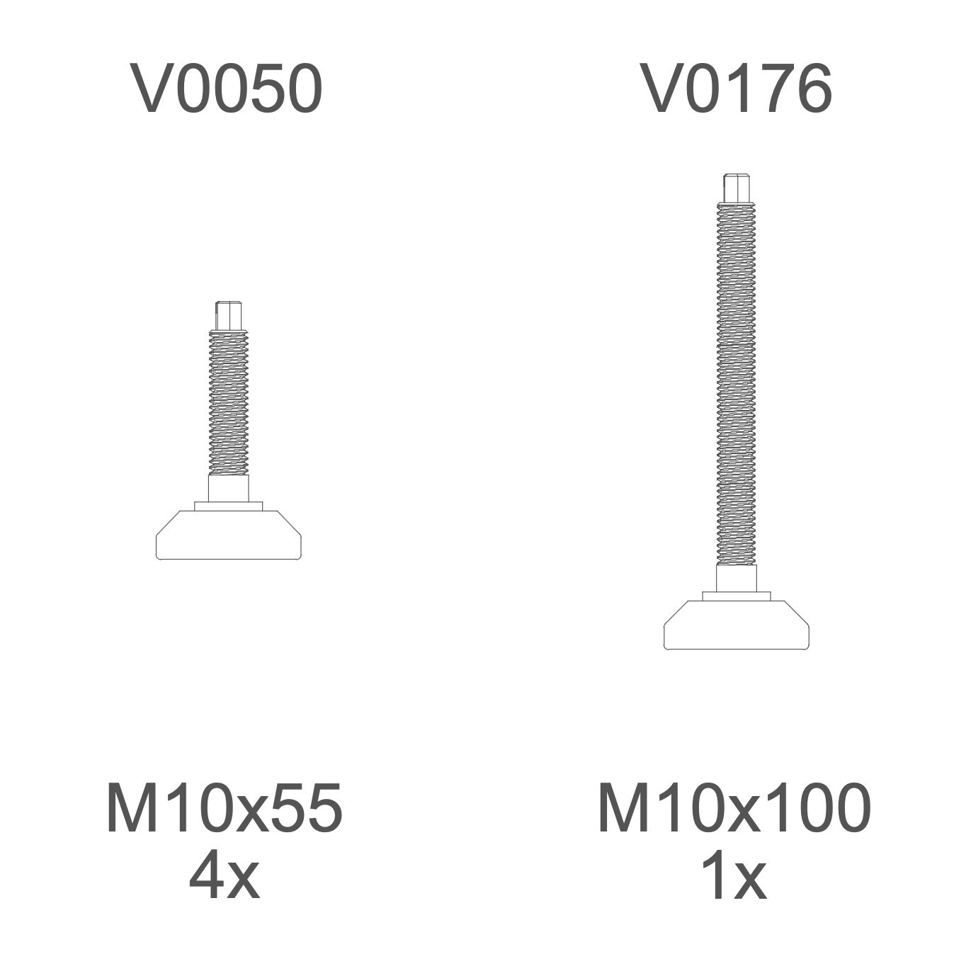 M10×55 mm adjustable foot | V0050 | 4×