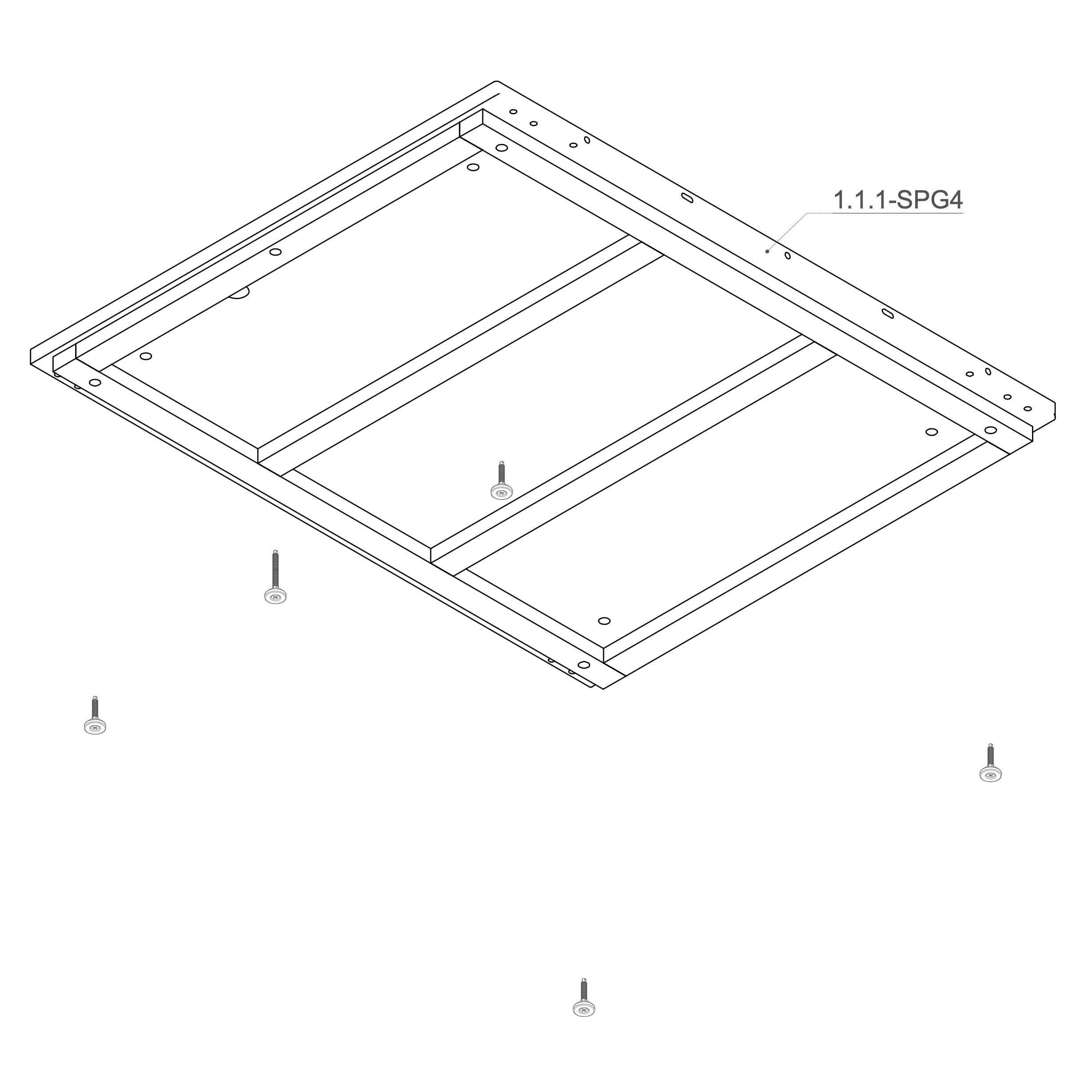 Prepare the lower panels 8.2-SPG4 by positioning them underneath the frame. You may use spacers or supports to make fastening easier.