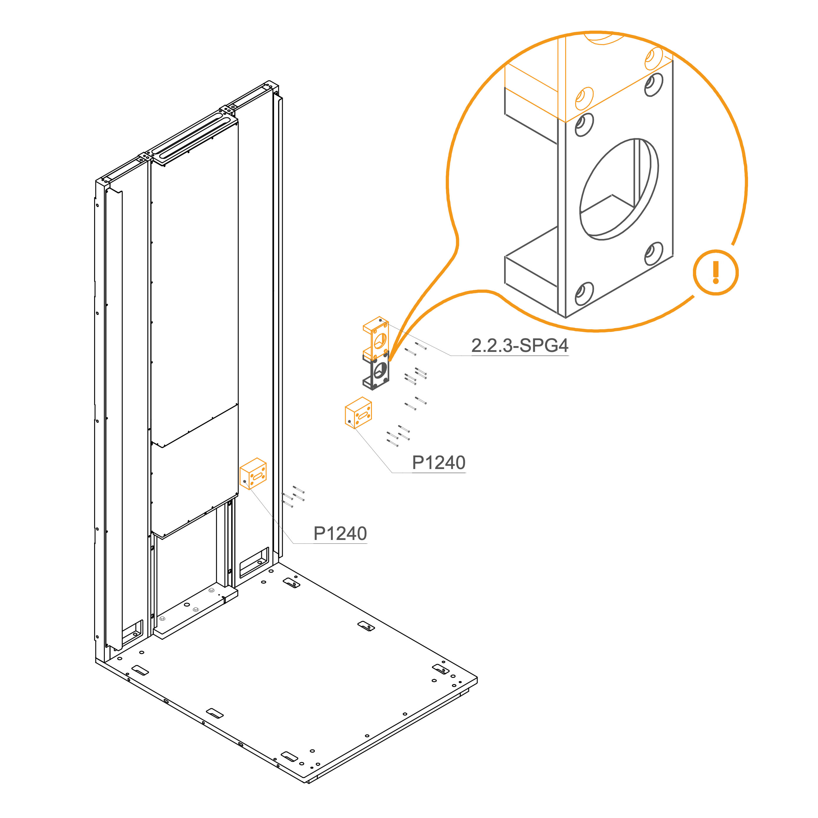 Anchor the wood bracing P1240 and 2.2.3-SPG4 for mounting the table and socket using screws. The second socket is optional.