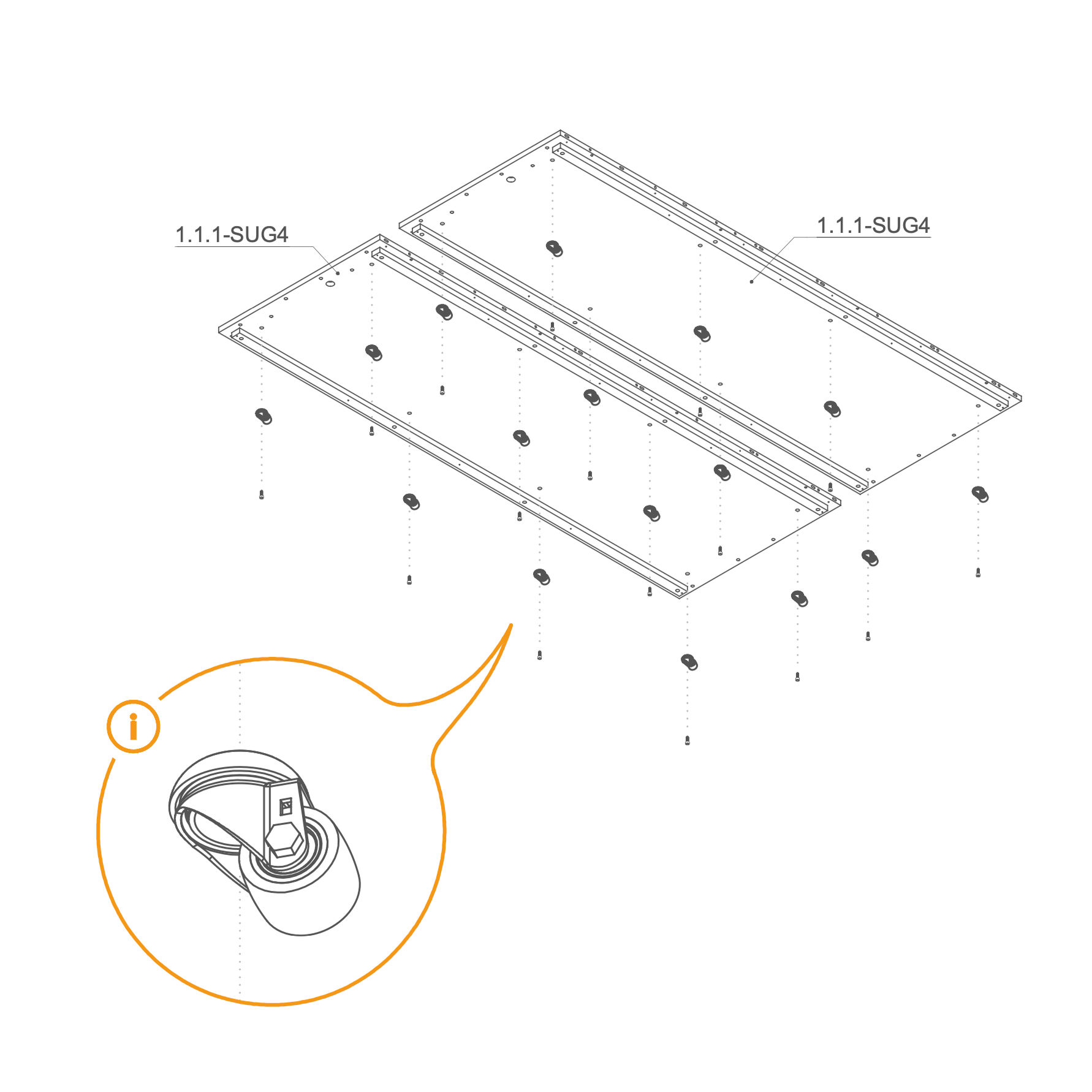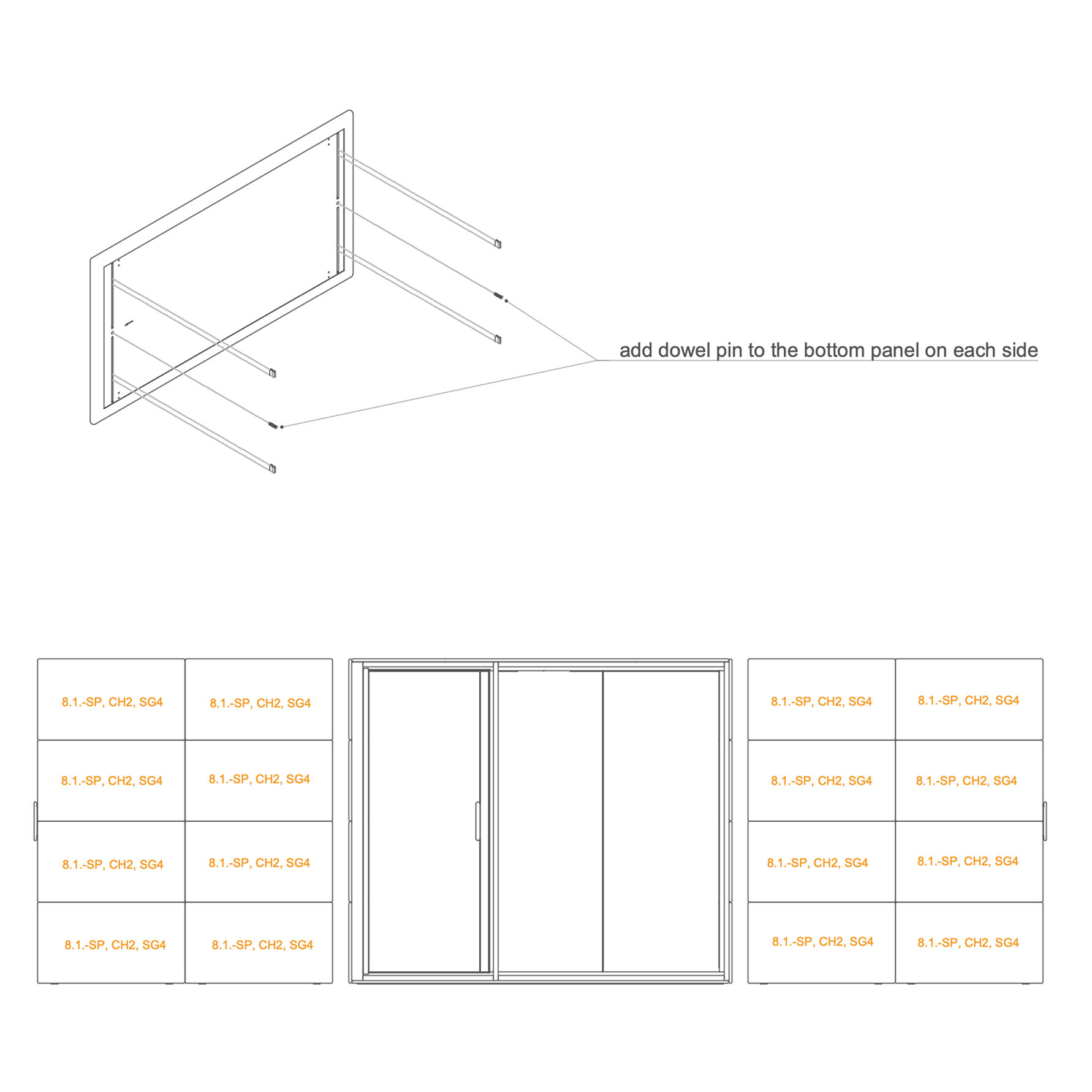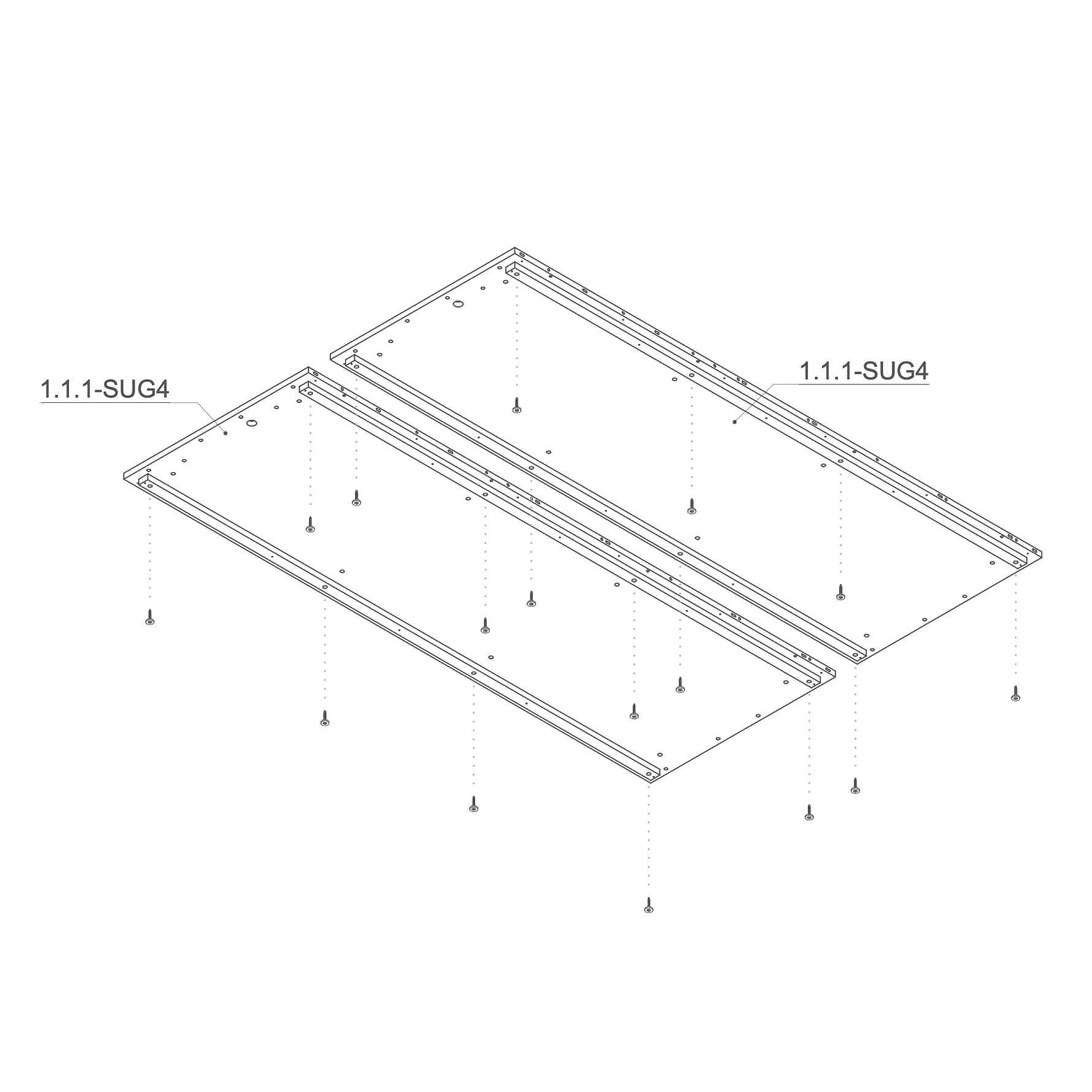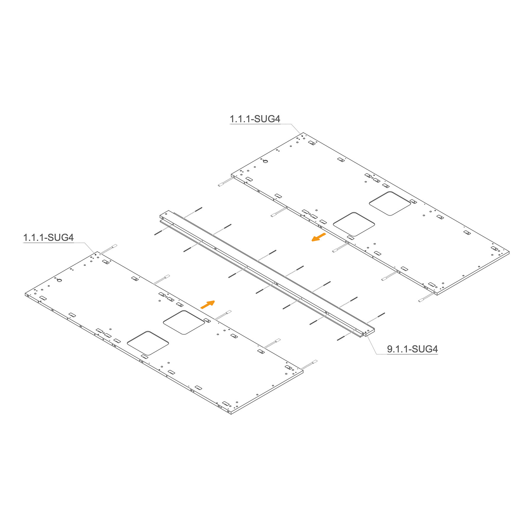 - Prepare the lower panels 8.2-SUG4 by positioning them underneath the frame. You may use spacers or supports to make fastening easier.