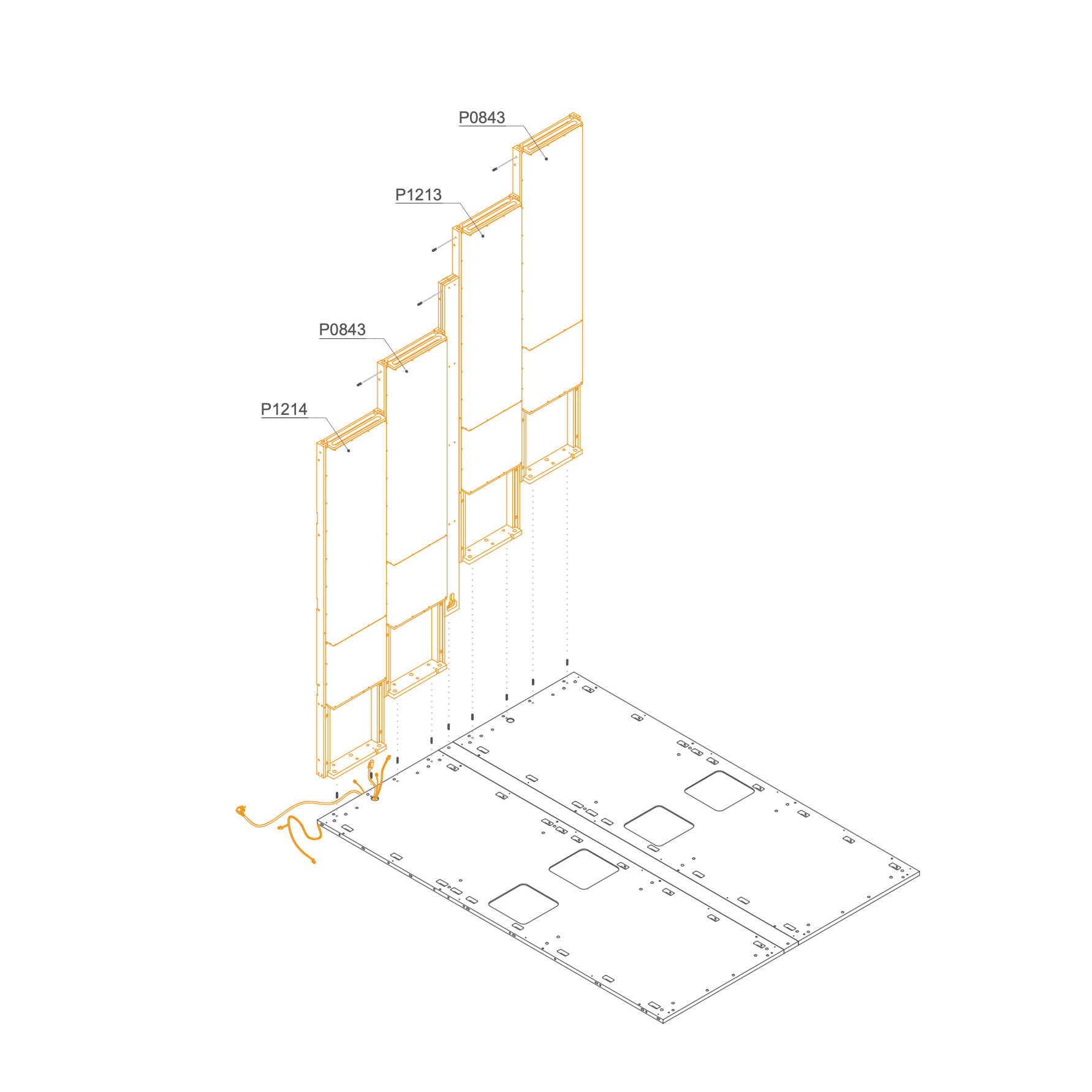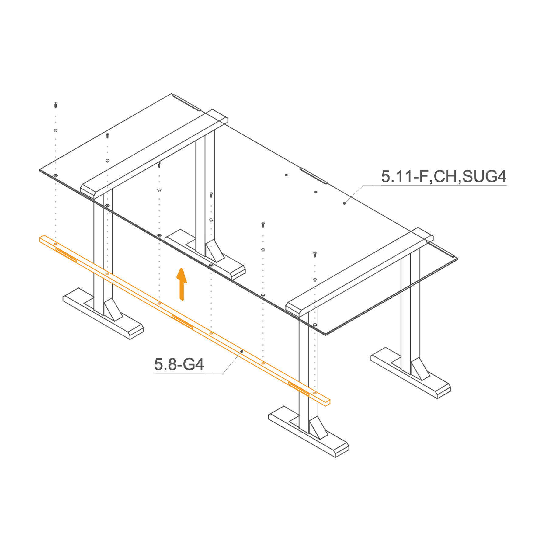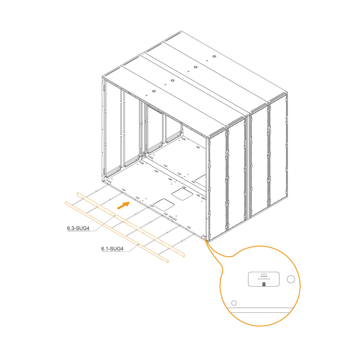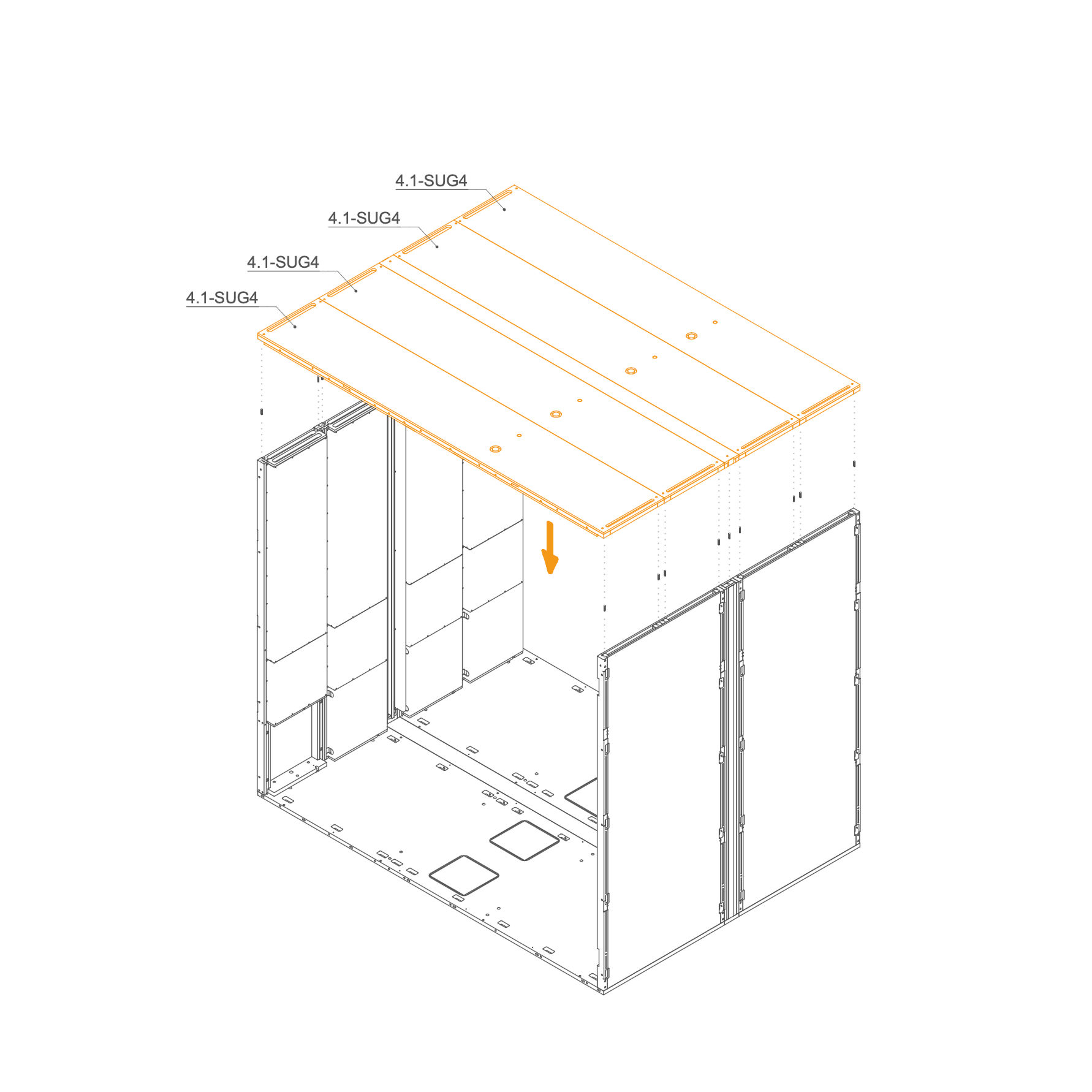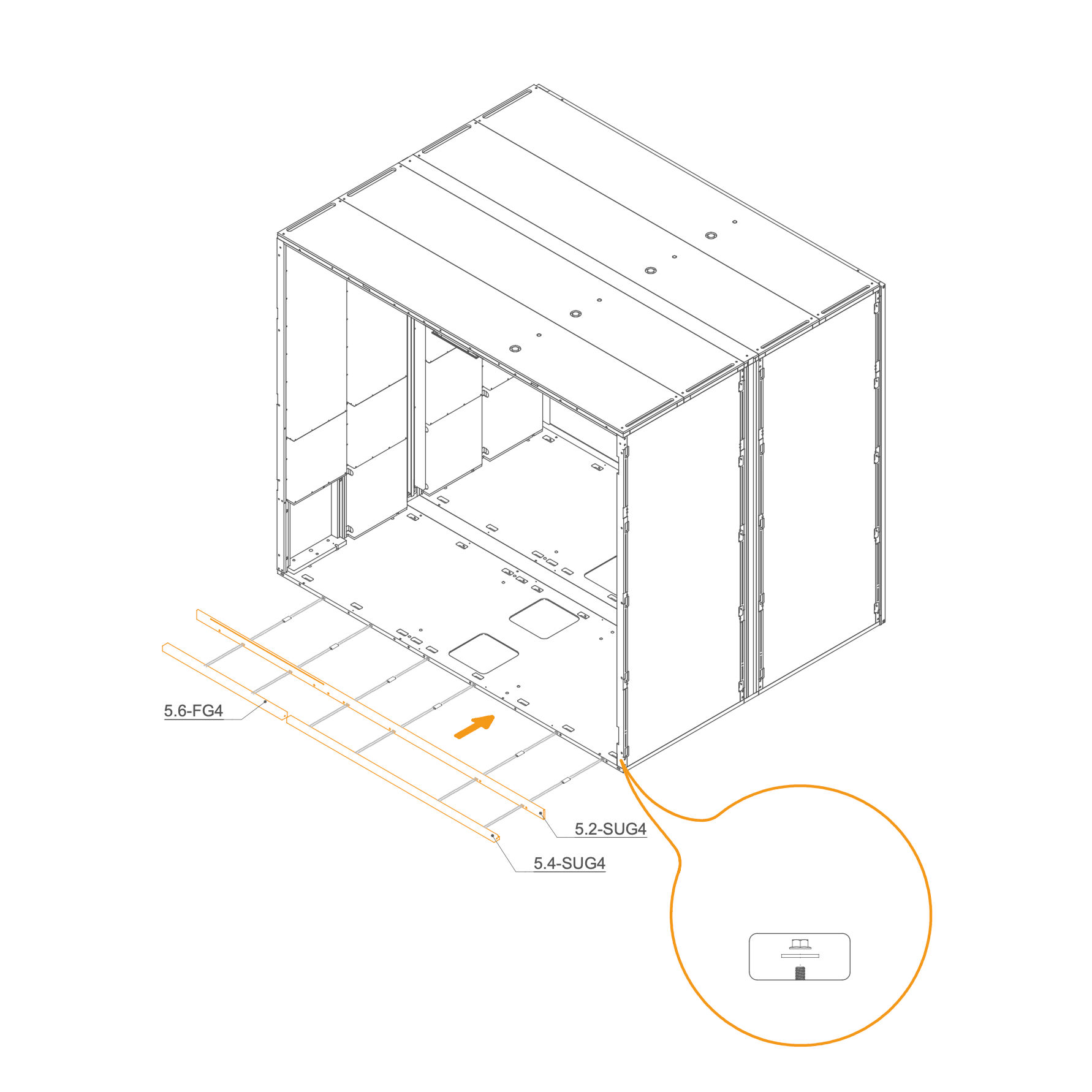 - Prepare the lower panels 8.2-SUG4 by positioning them underneath the frame. You may use spacers or supports to make fastening easier.