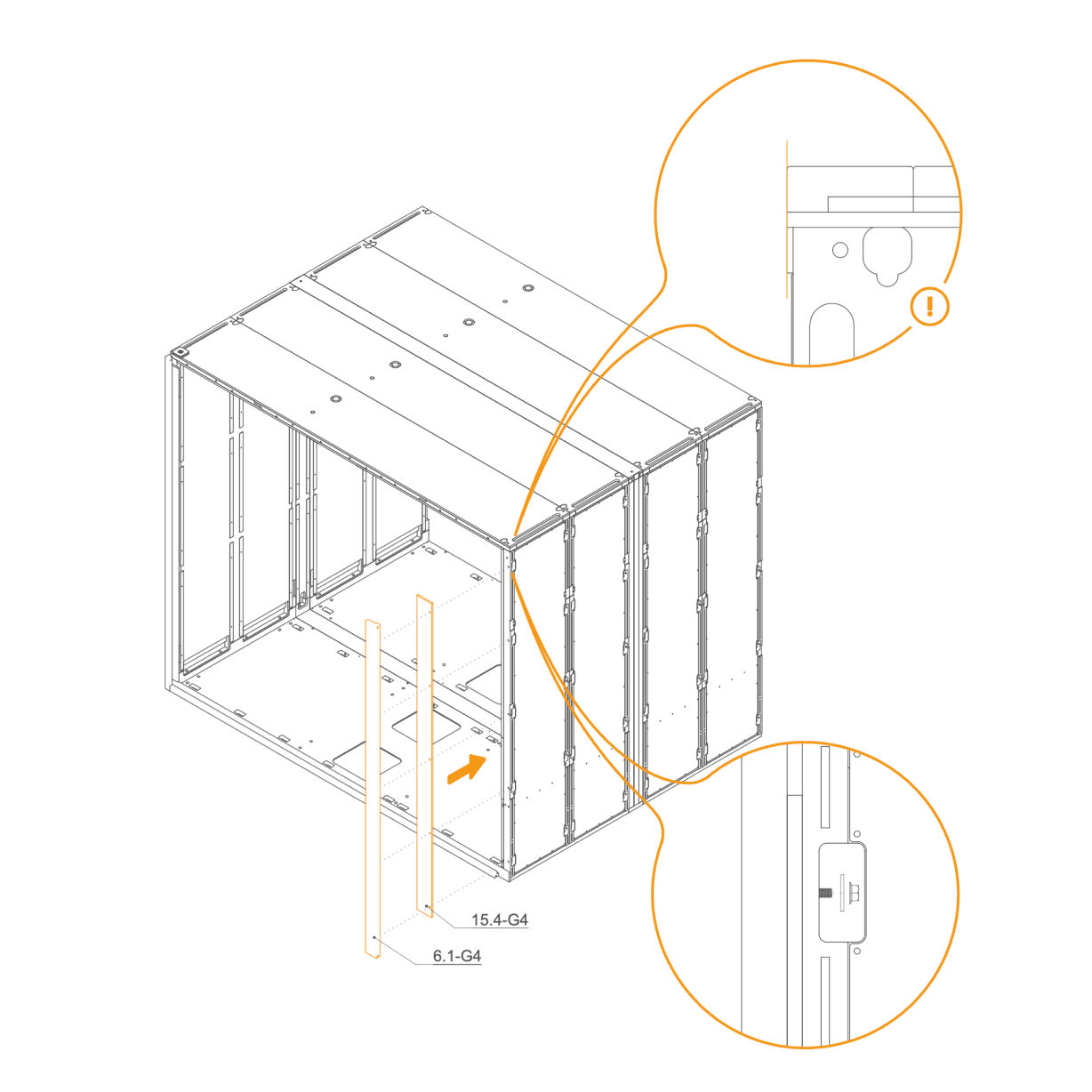 Place the two vertical frames, 15.05-G4 and 6.2-G4, in their designated positions.