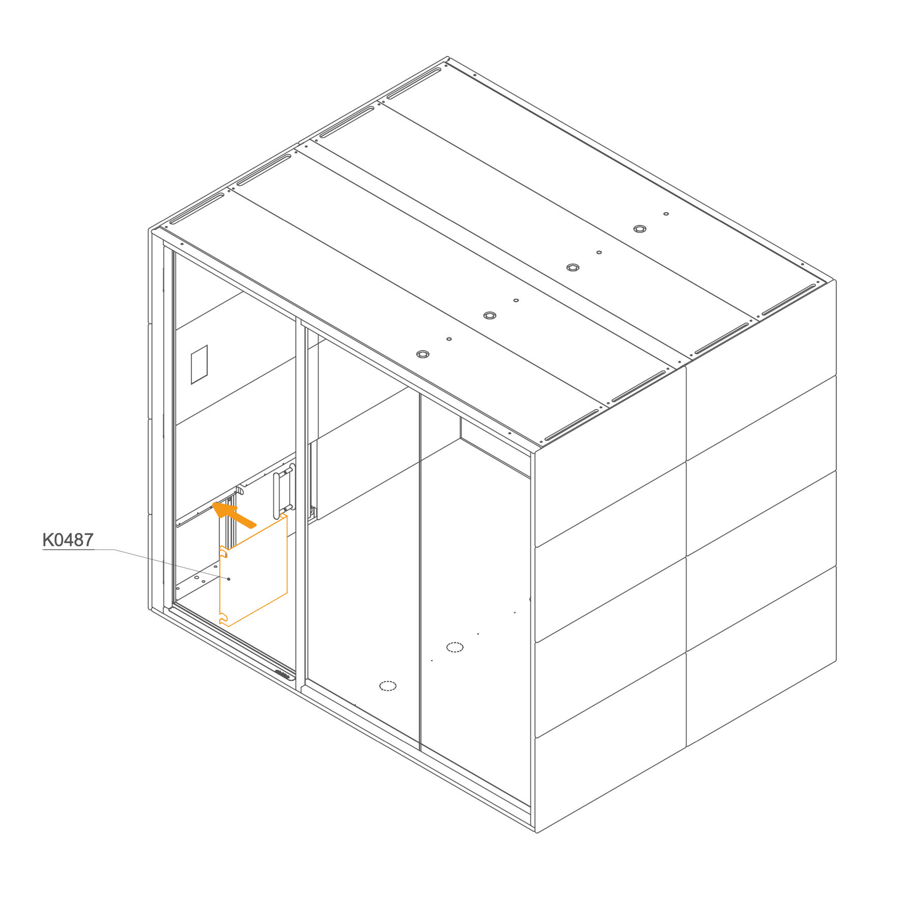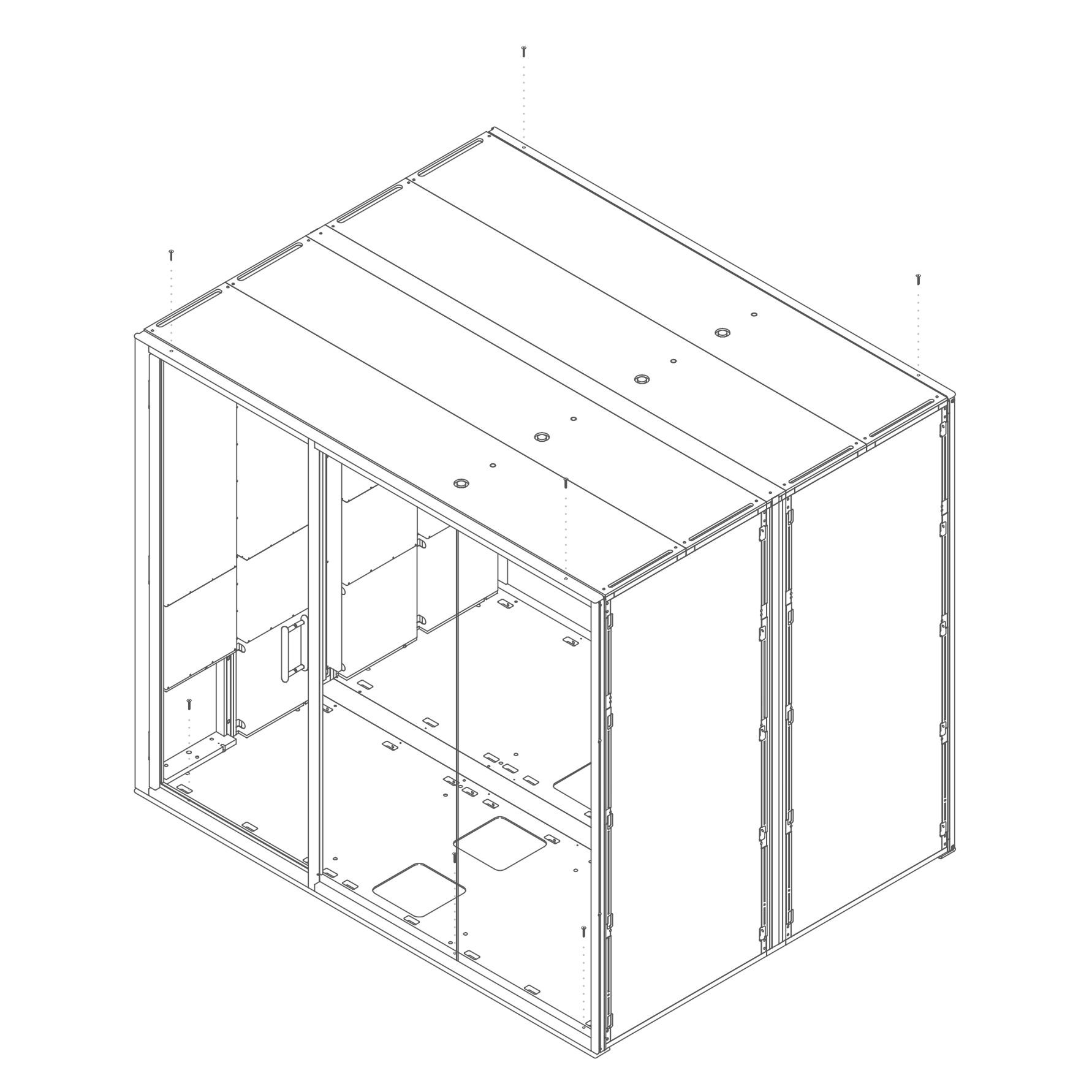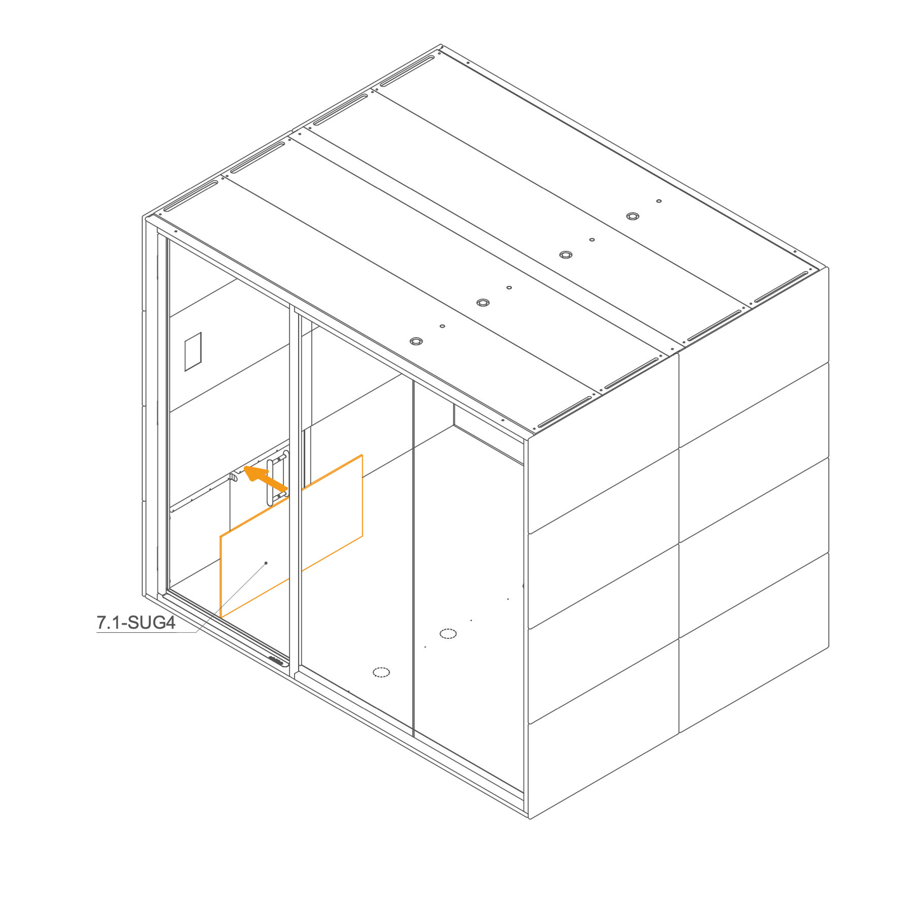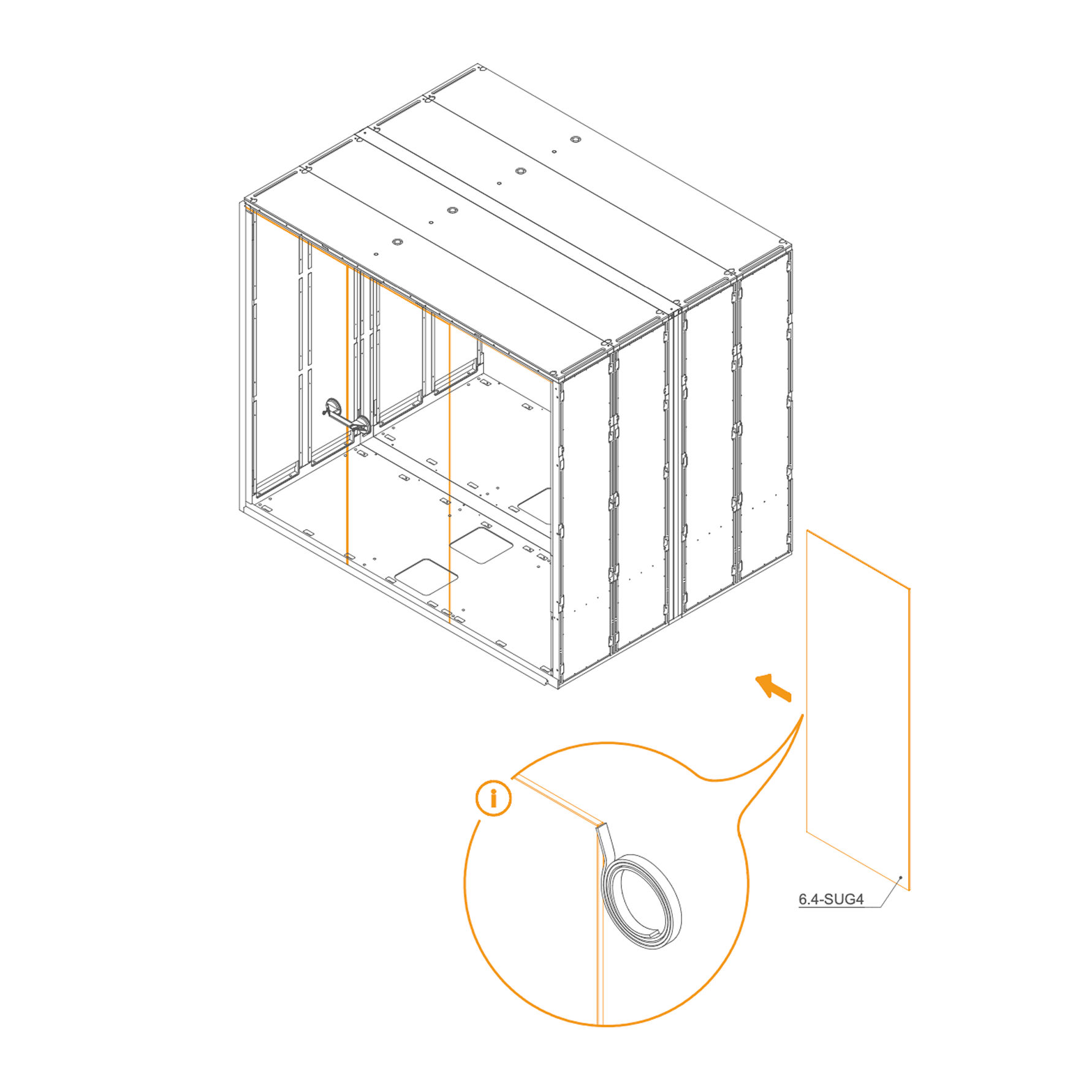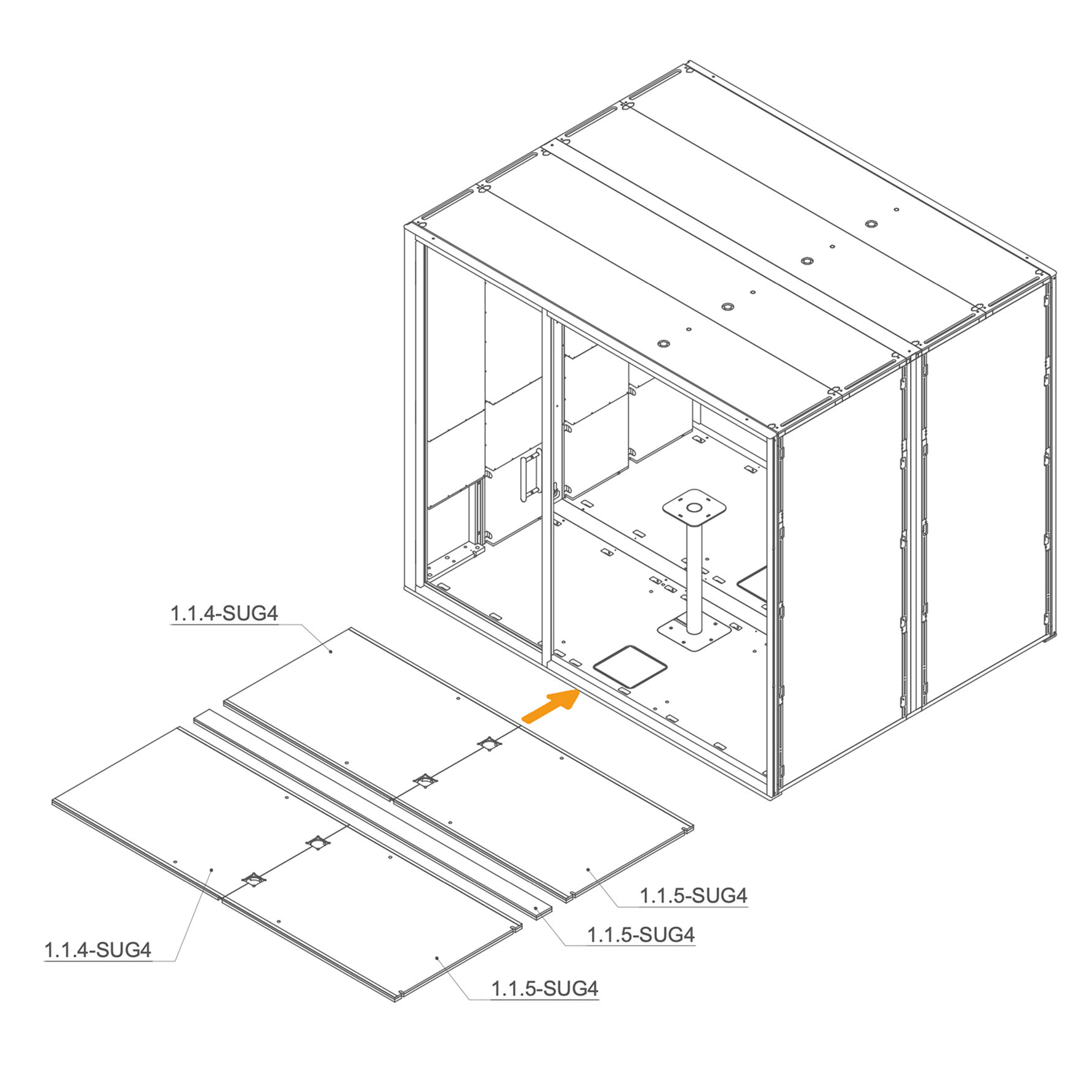 - Position the labeled interior panels (as per the diagram) in their designated locations inside the accoustic pod.