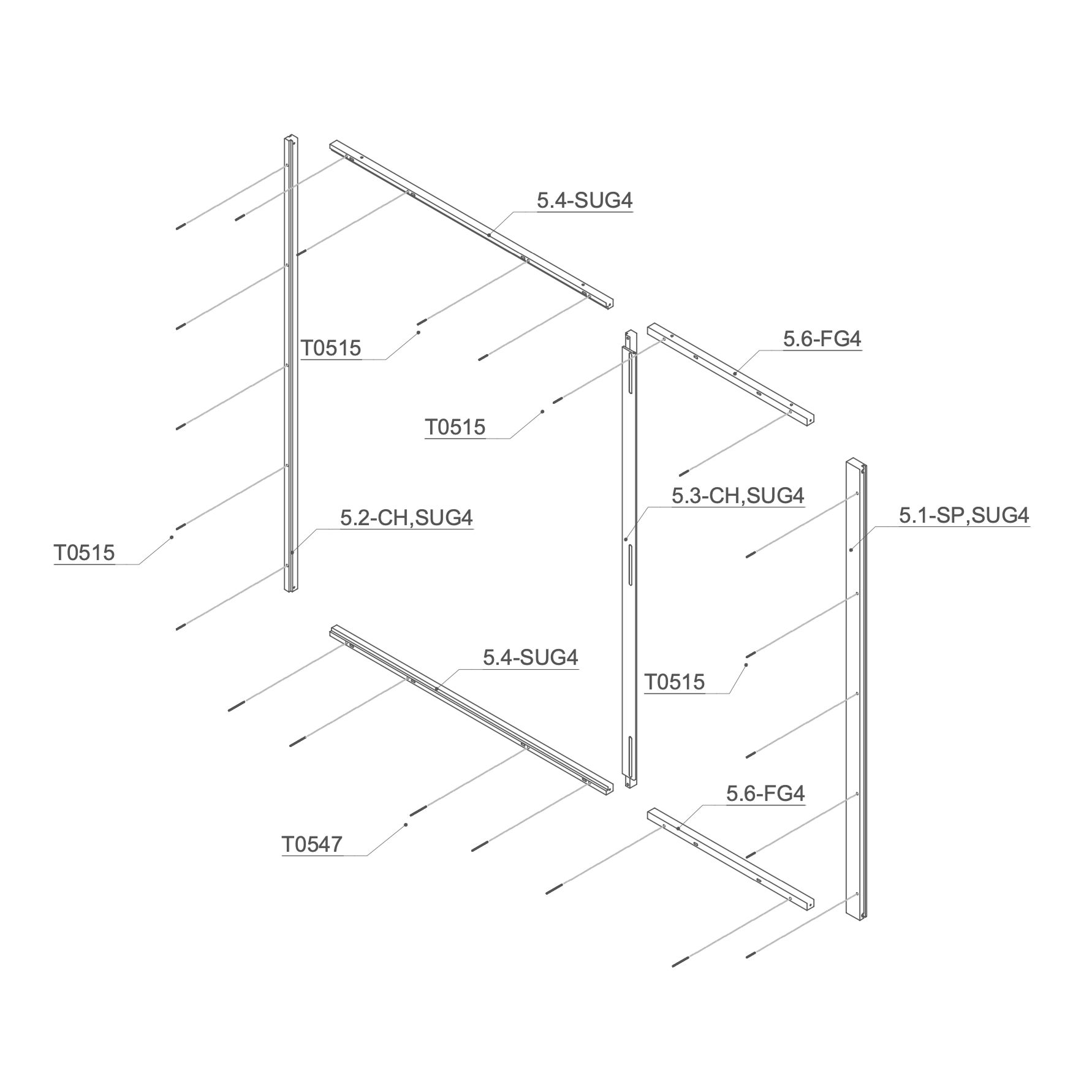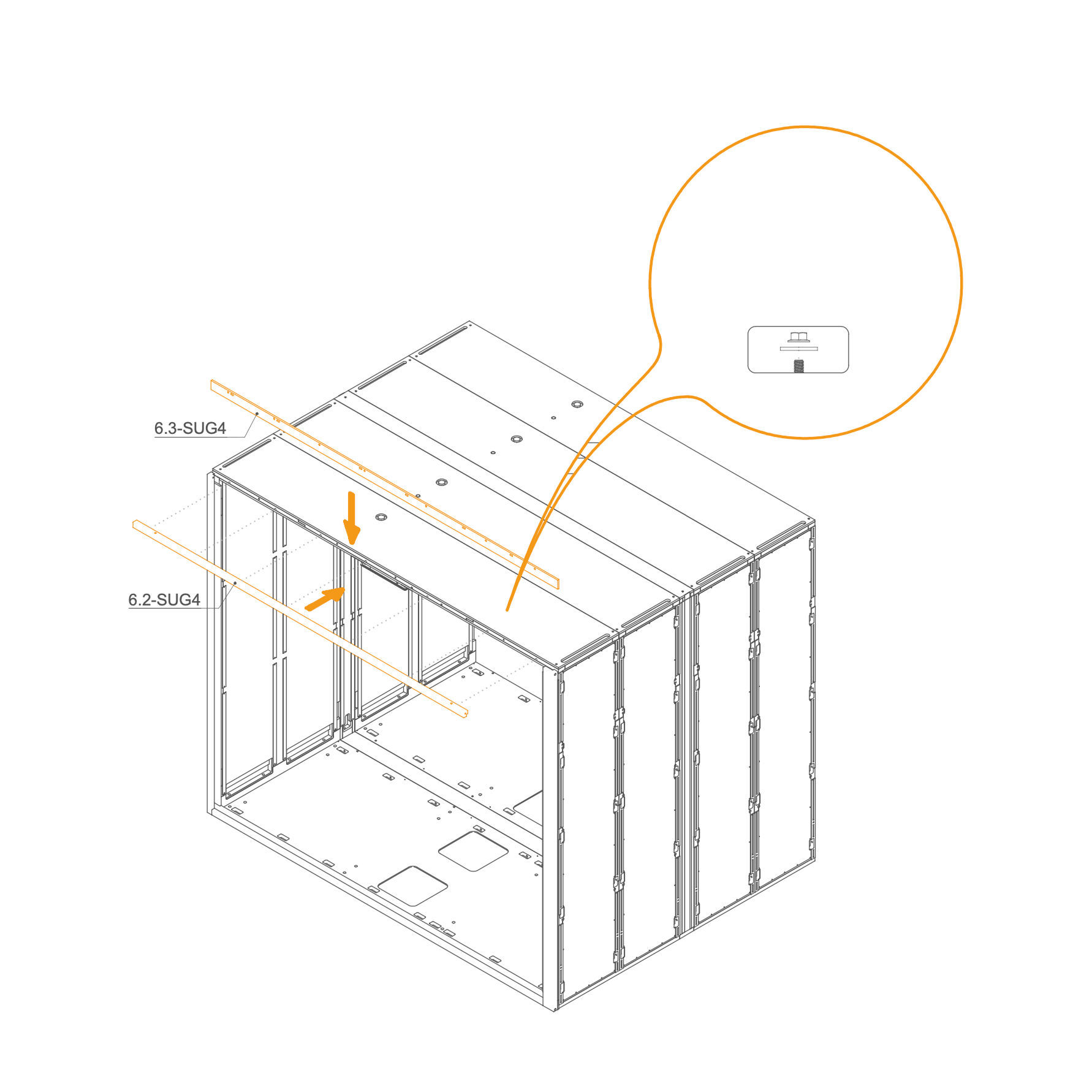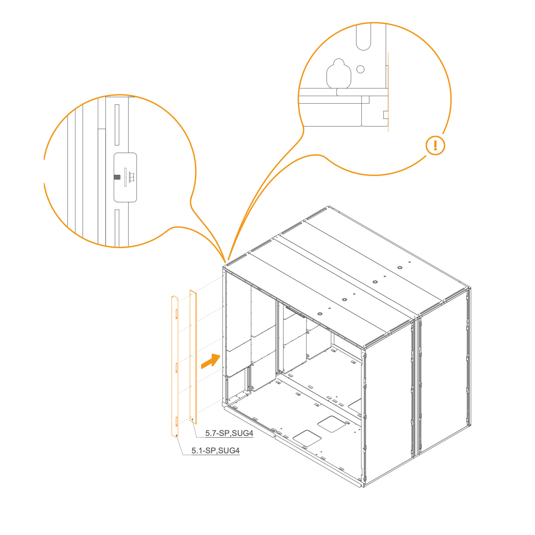- Install the upper panels 8.3-SUG4 by aligning them with the edge of the frame and the screw holes.