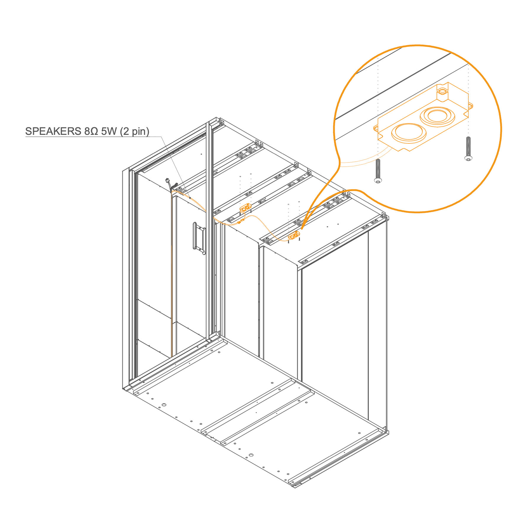 - Plug the corresponding cable SPEAKERS 8Ω 5W (2 pin) to the speakers.