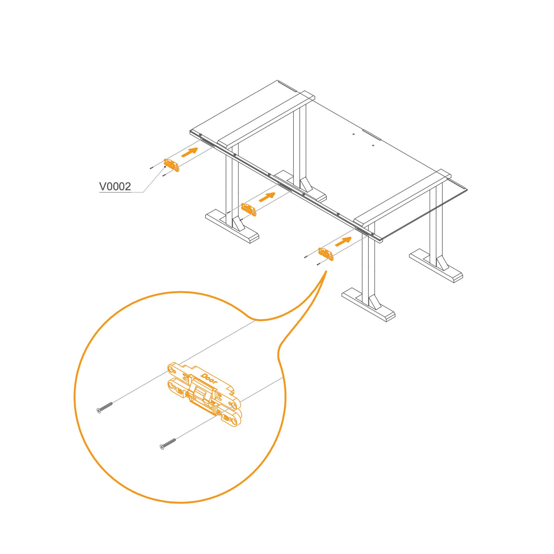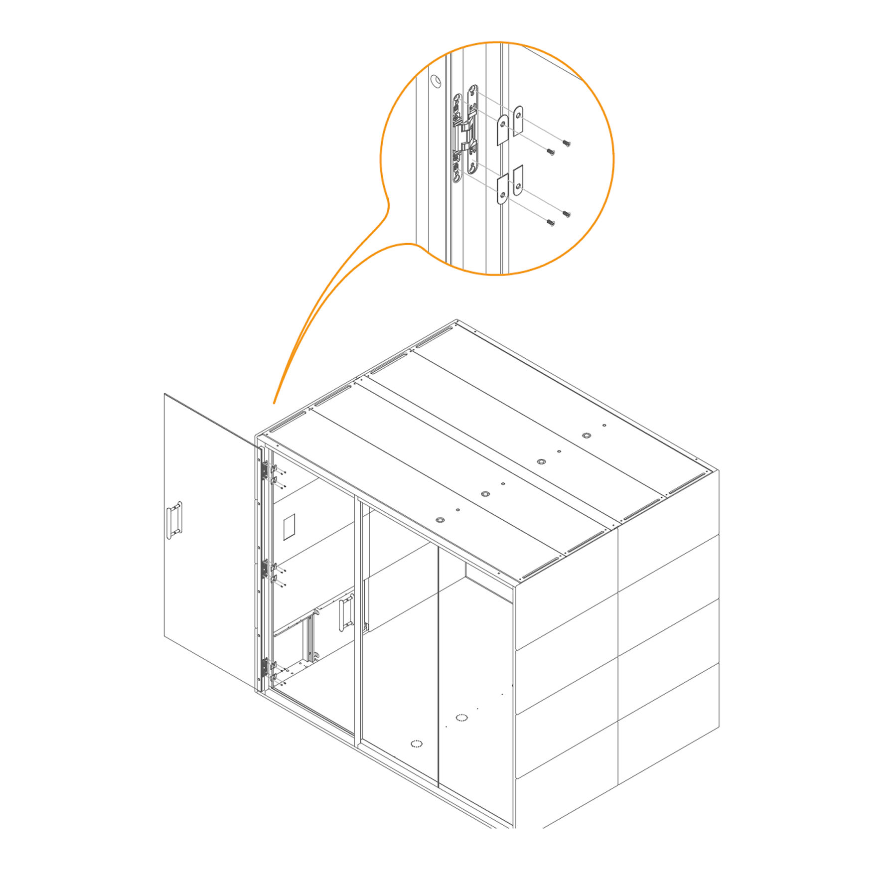 - Attach hinges (V0002) into the recess use M4×30 mm screws to secure the position.