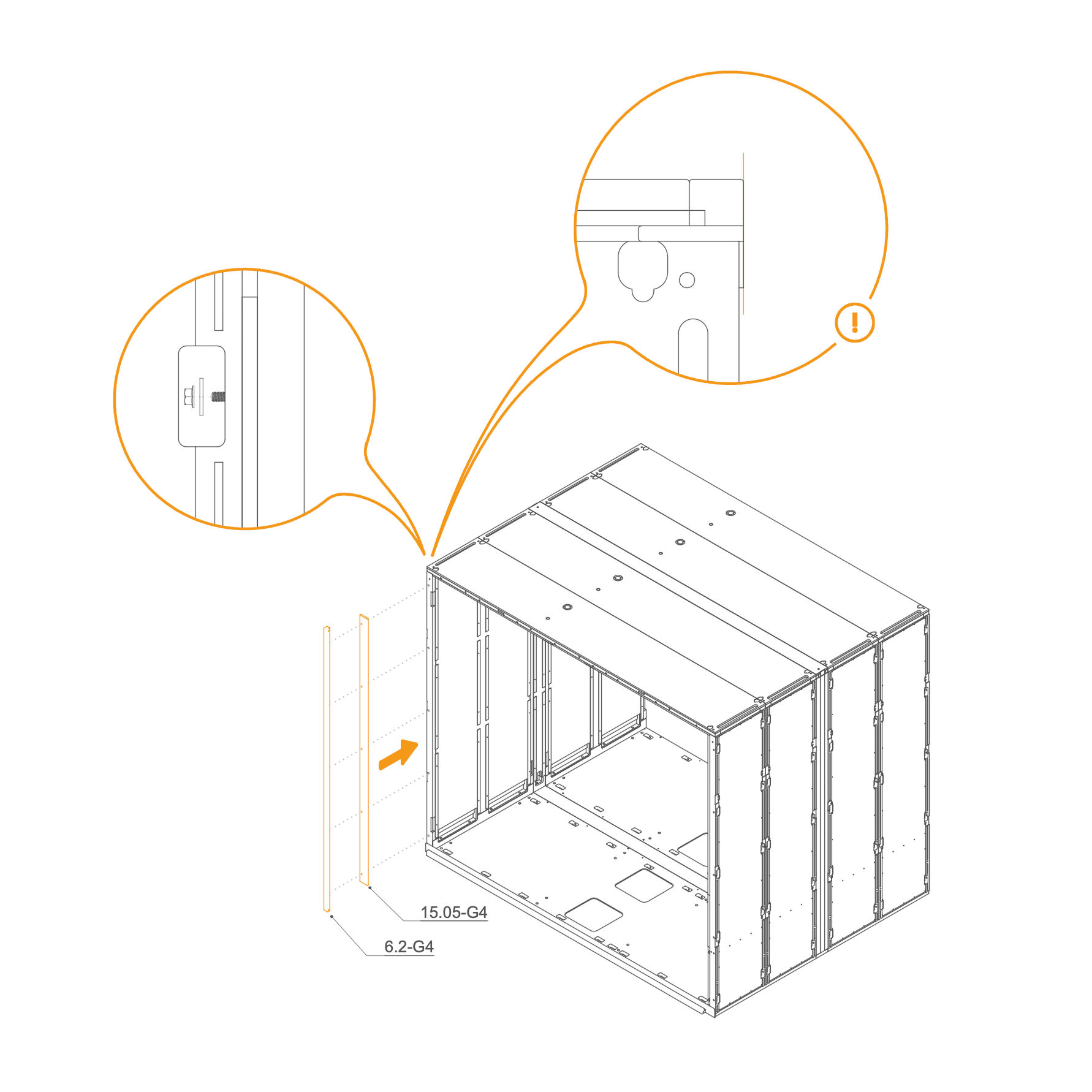 - Secure the previously placed external panels using M6×40 mm screws (T0397).
