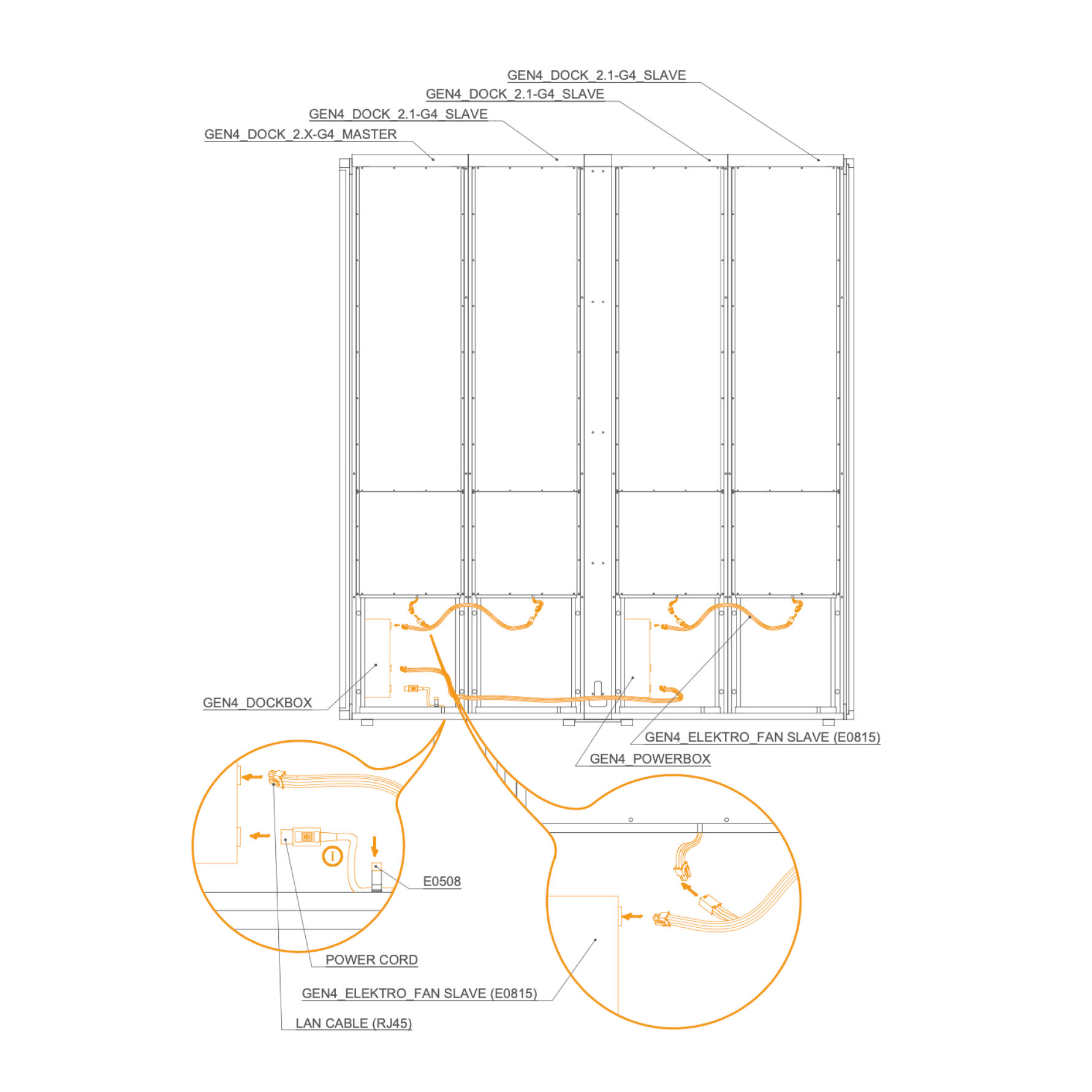 Connect each GEN4_DOCKBOX to the corresponding GEN4_ELEKTRO_FAN SLAVE (E0815).