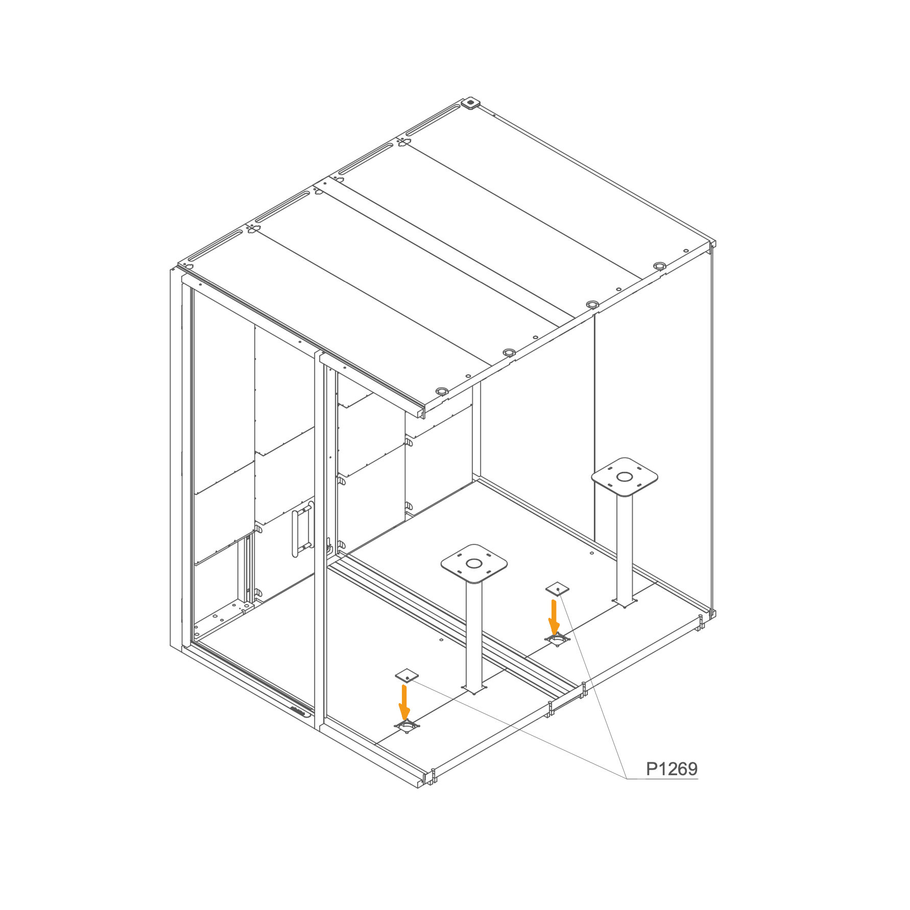 - Align the panel with the pre-drilled holes on the floor panel (1.1.1-SUG4) and the dock frame.