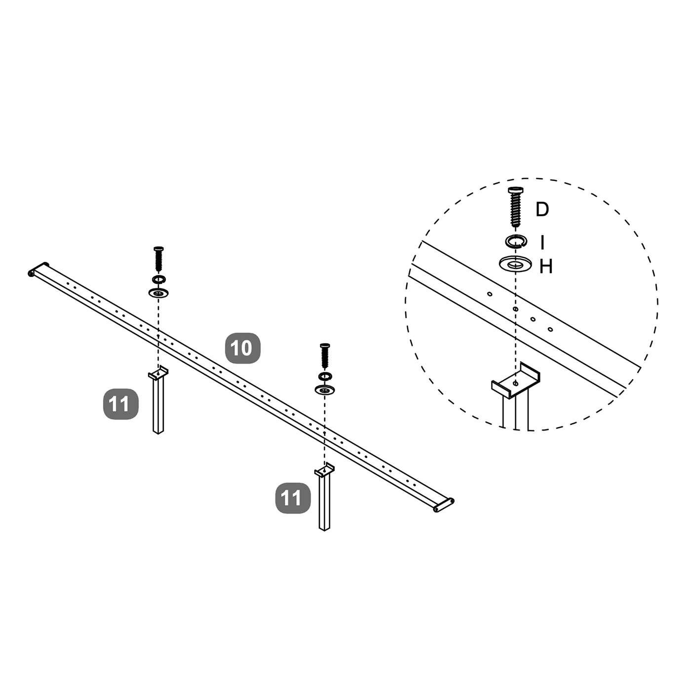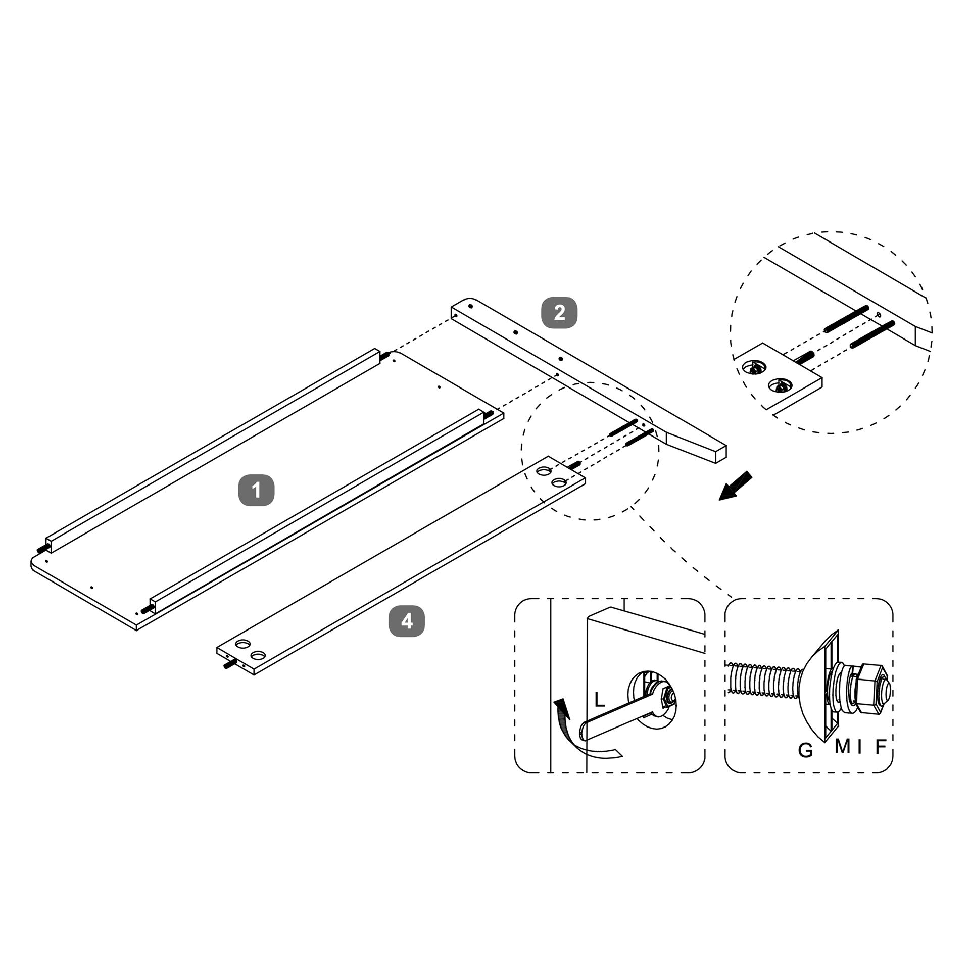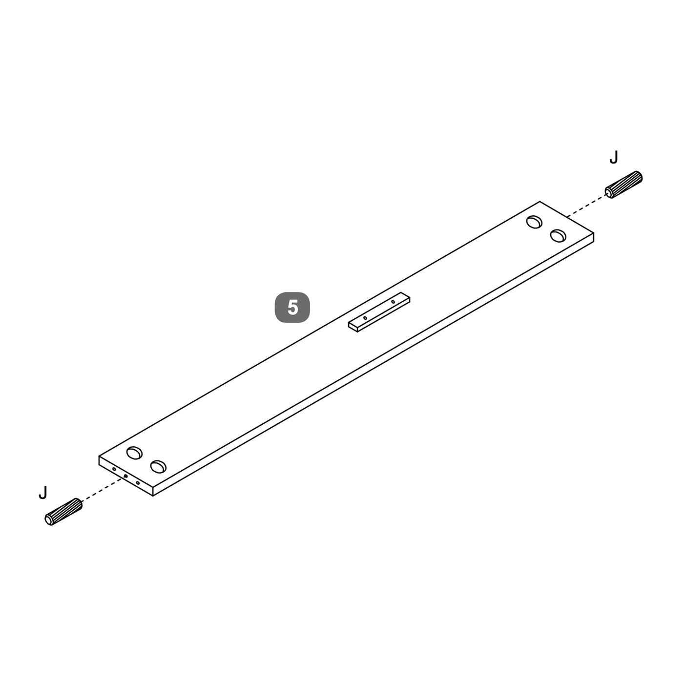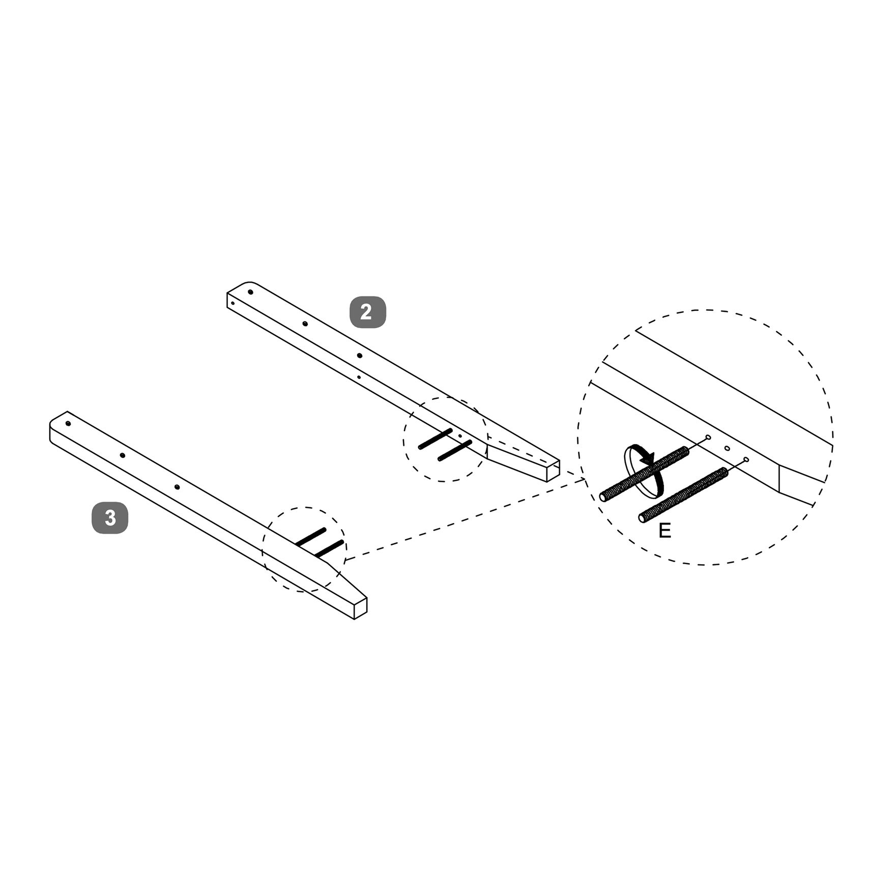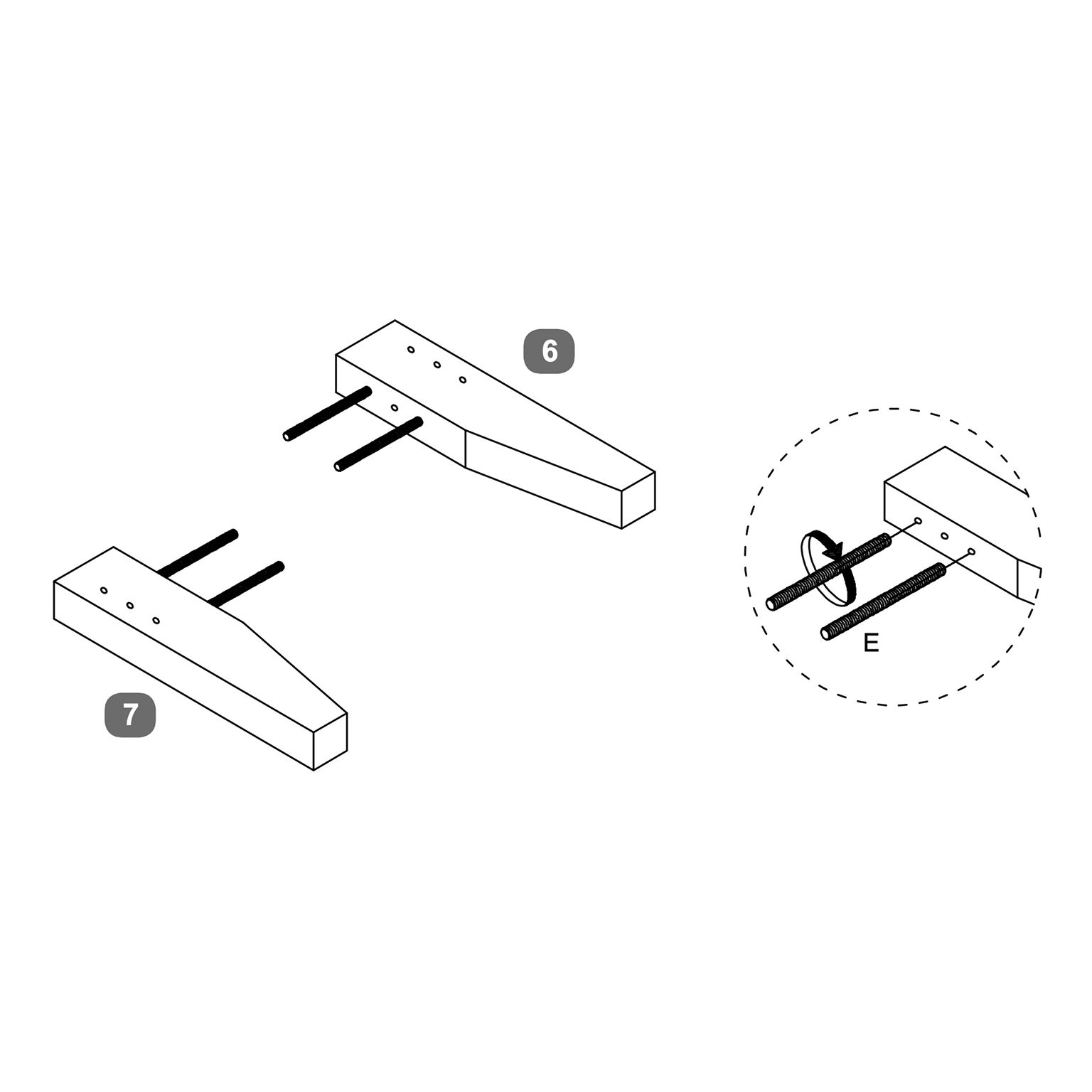 - Insert Threaded Studs (E) into the predrilled holes as shown in the diagram.