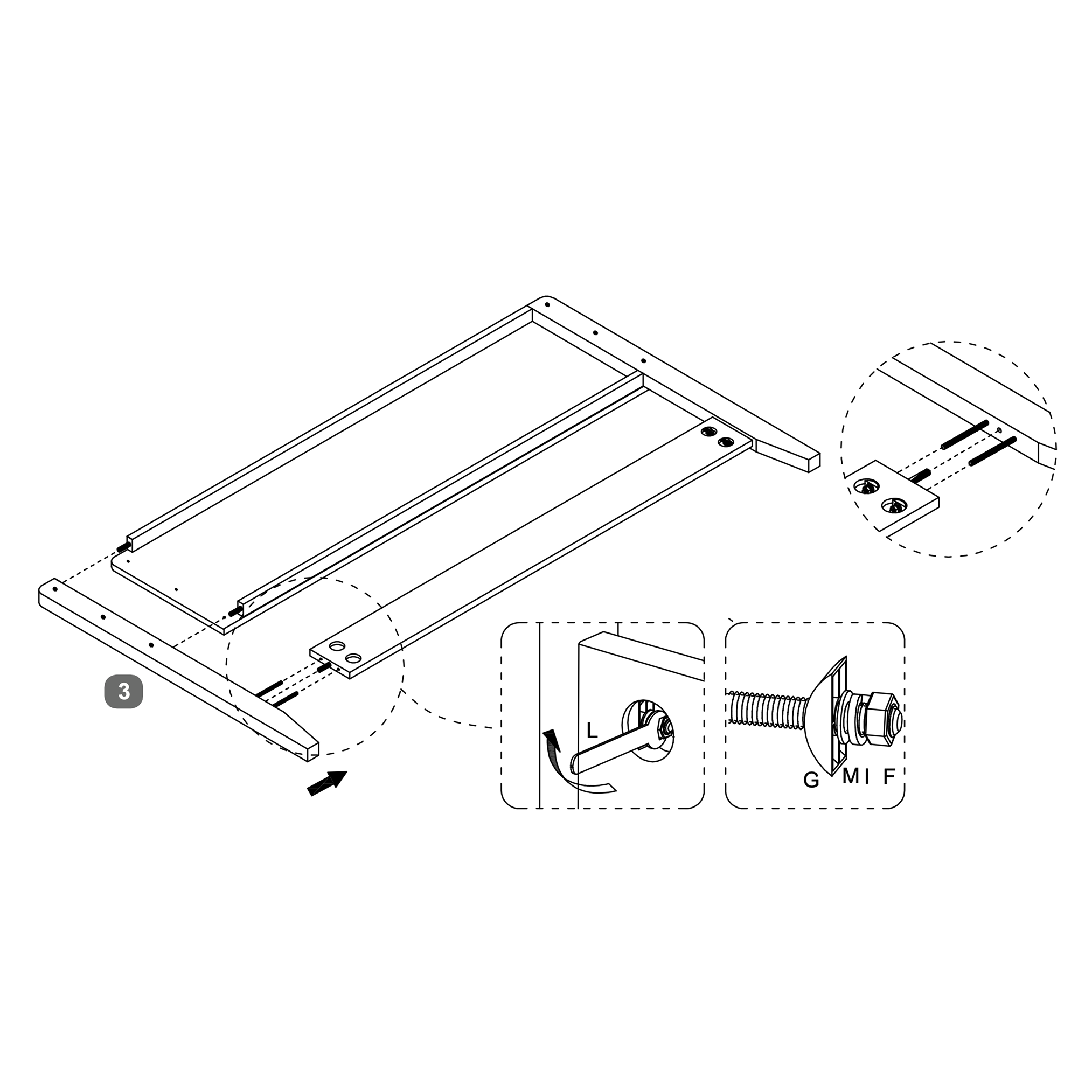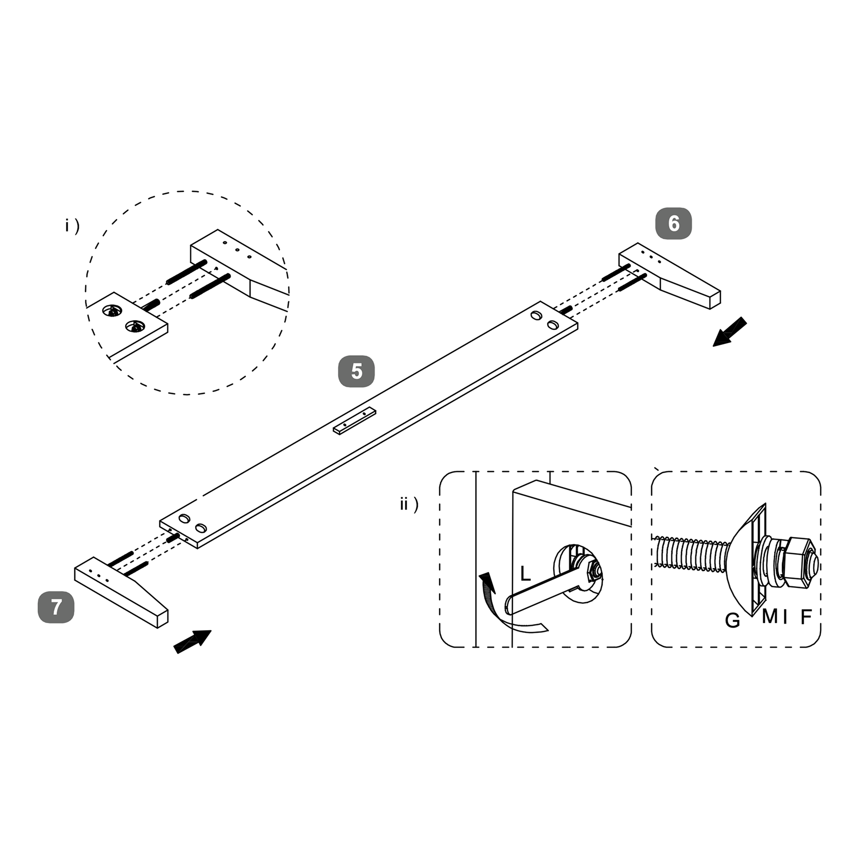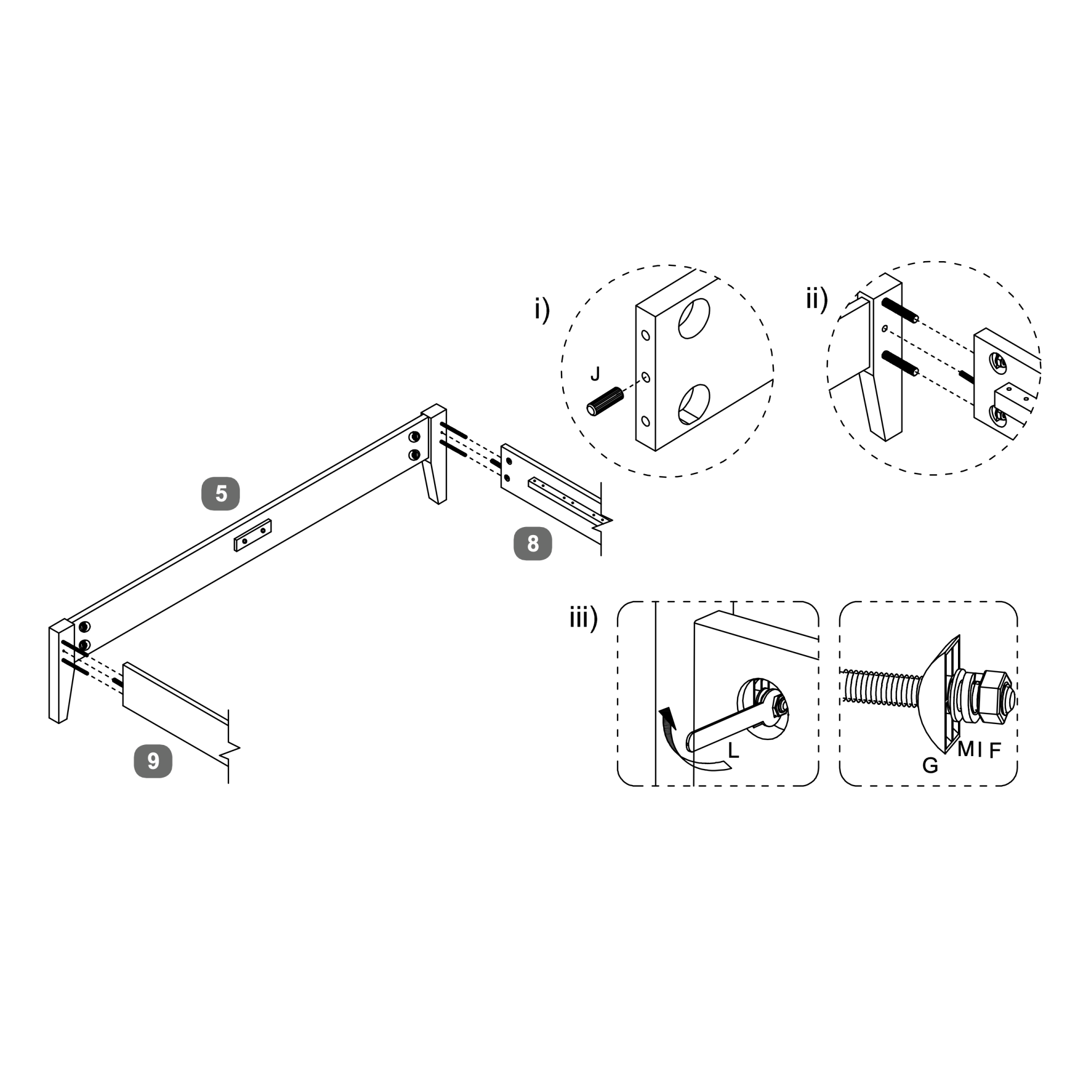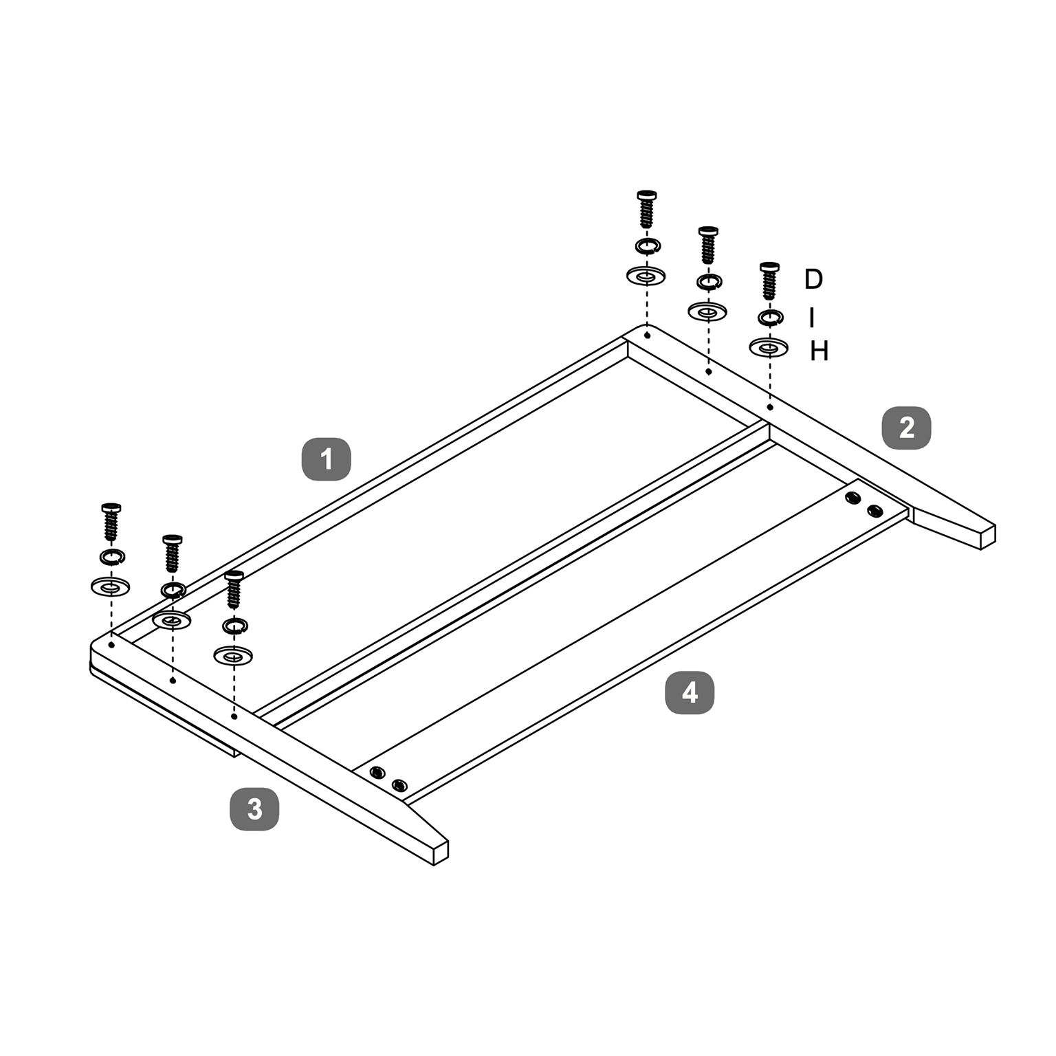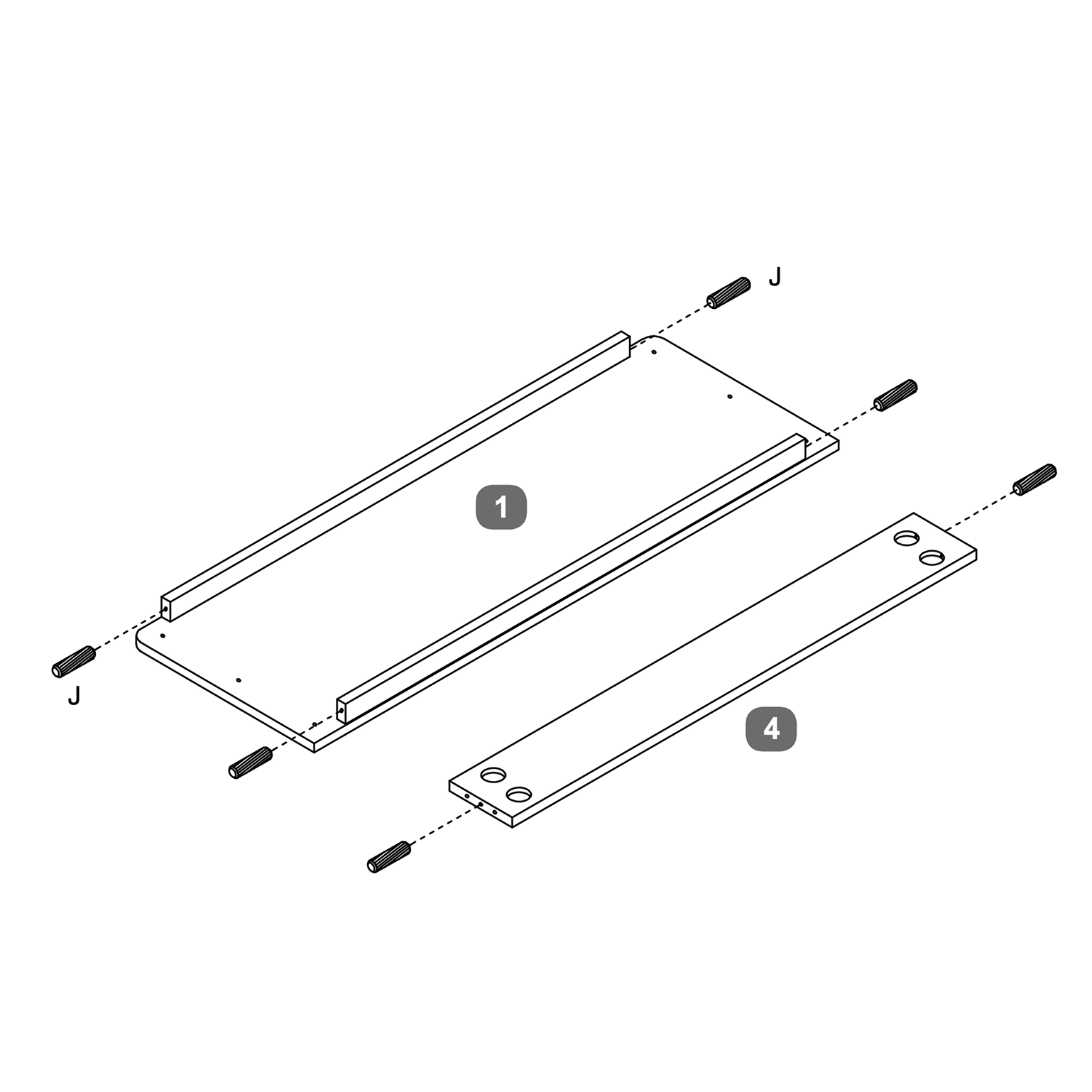 - Insert Threaded Studs (E) into the predrilled holes as shown in the diagram.