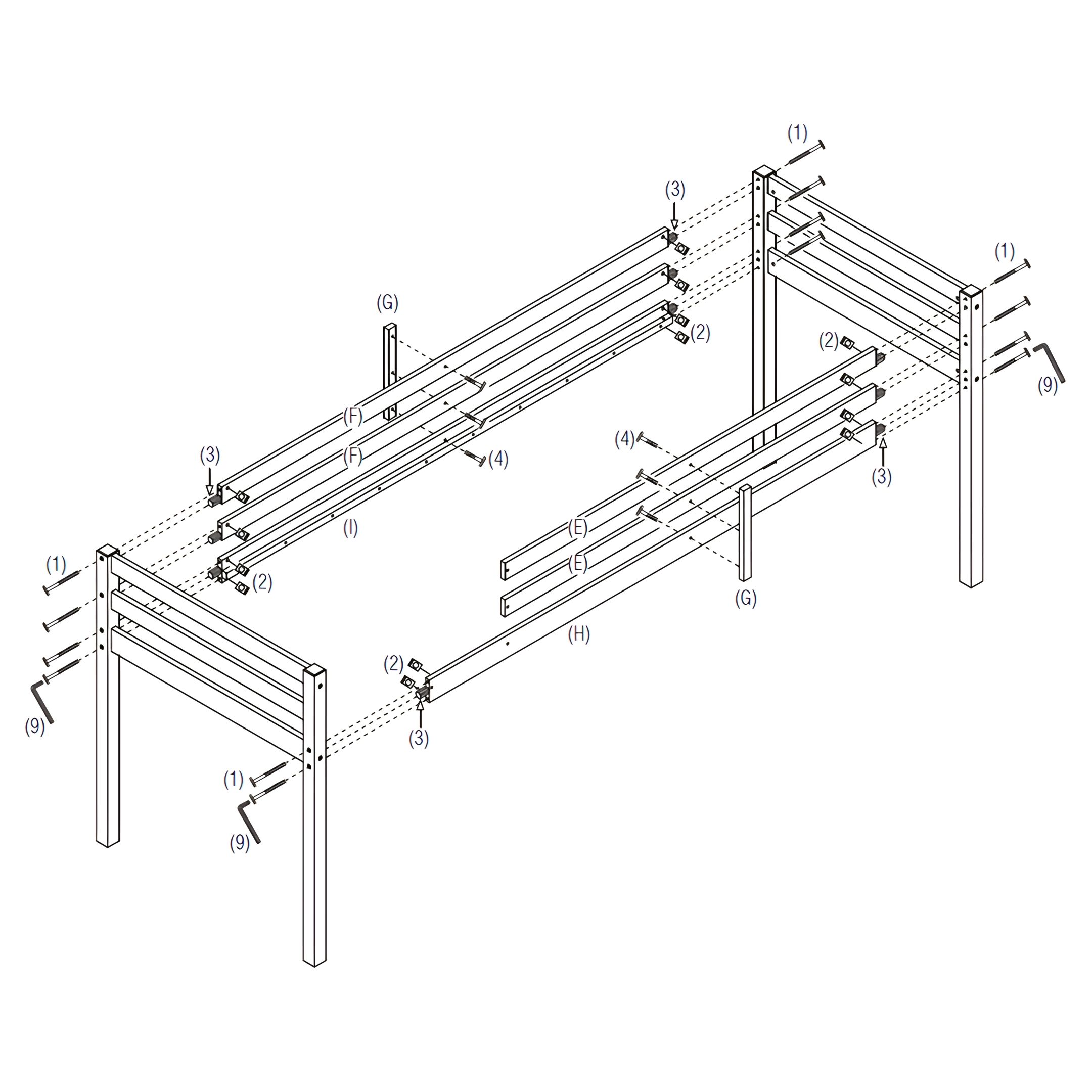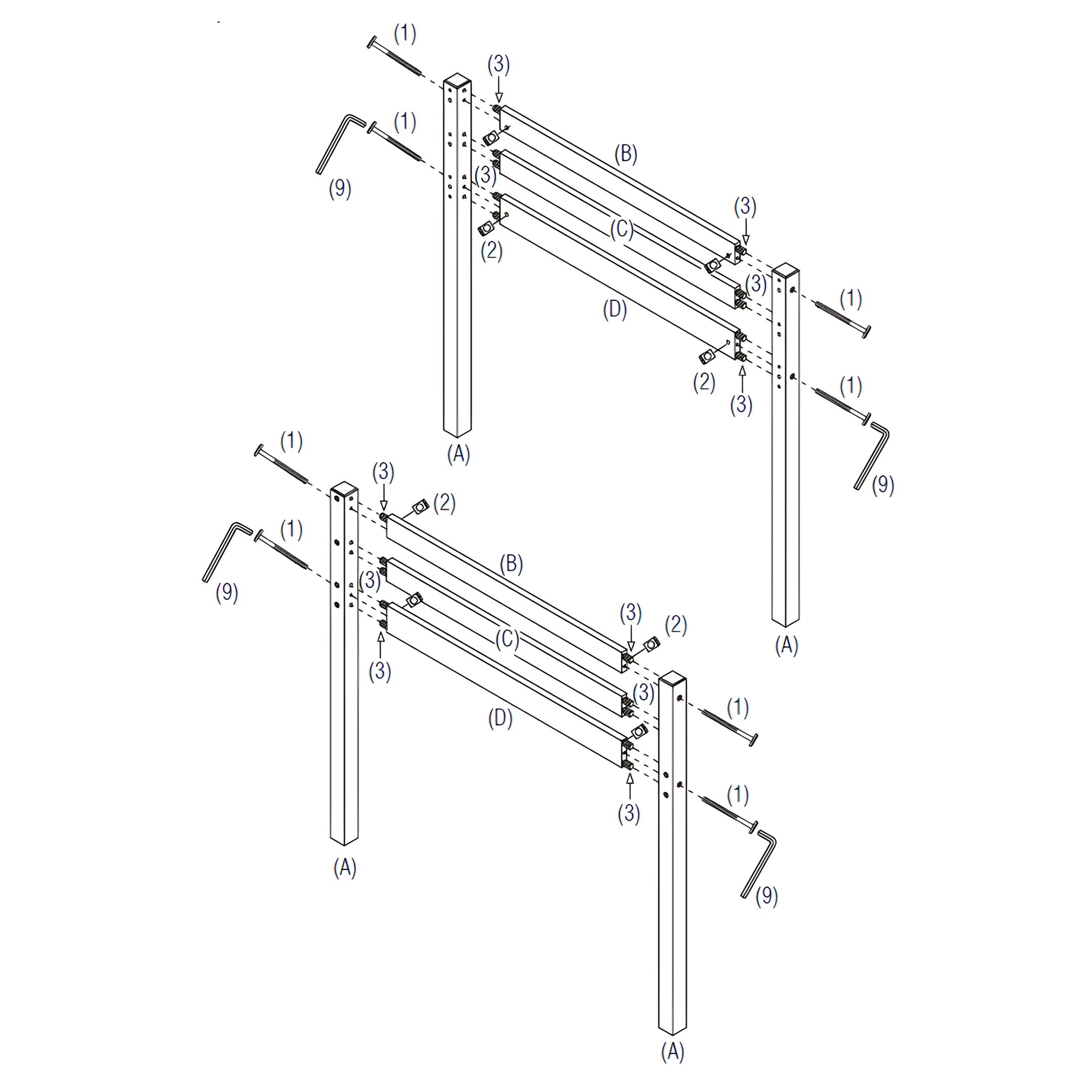 - Use the M4 Allen Key (9) to tighten all bolts, ensuring the frame is stable and secure.