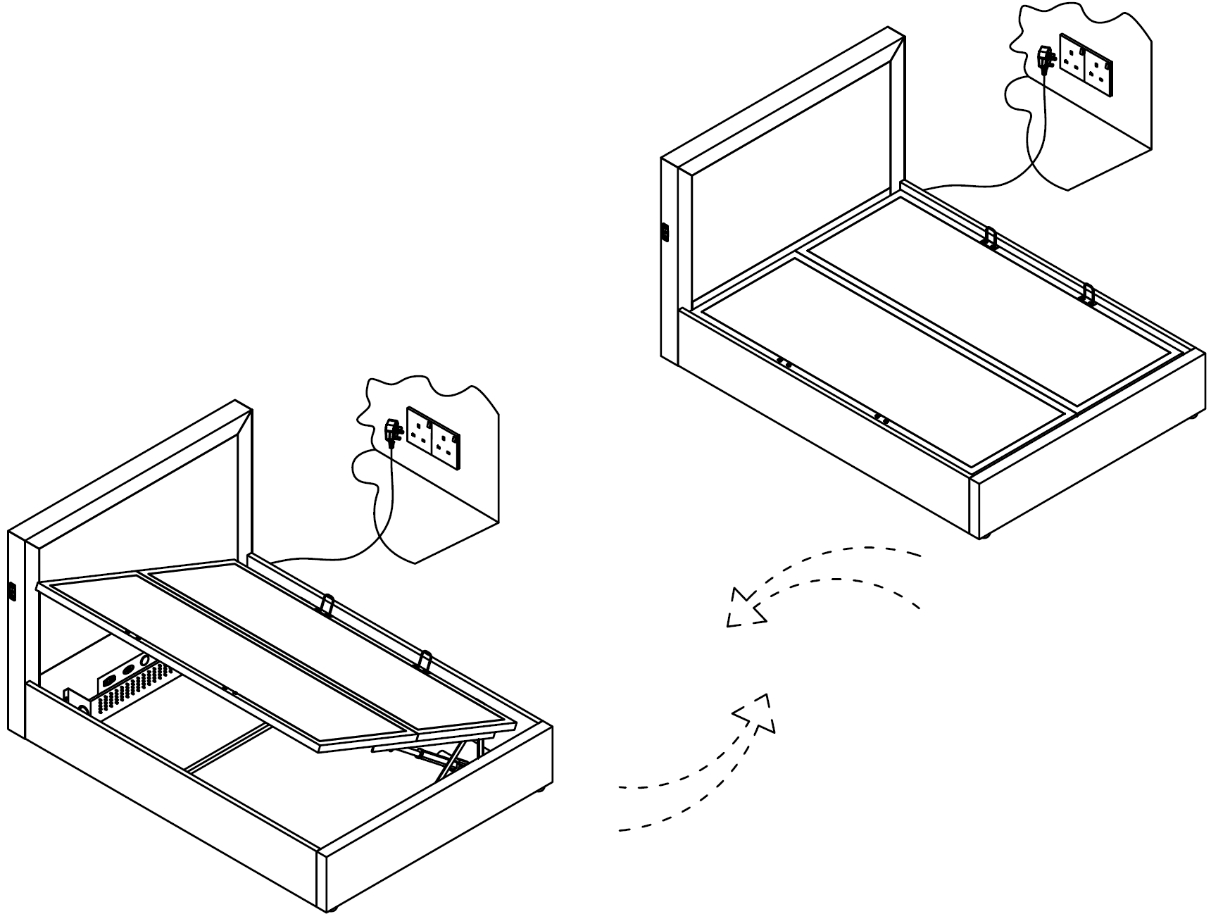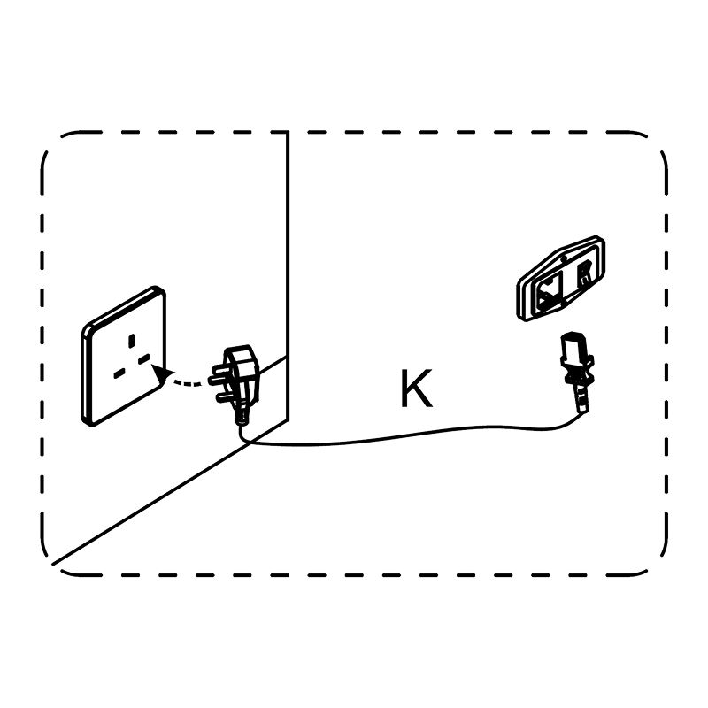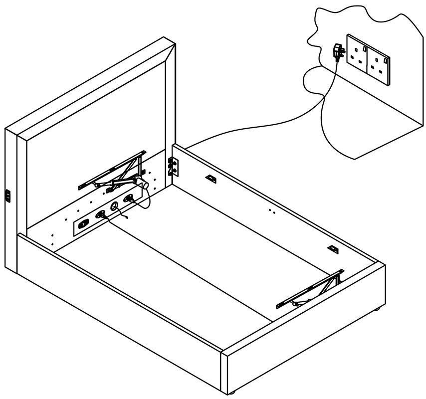 - Plug the Mains Power Lead (K) into the power socket on the bed frame.
