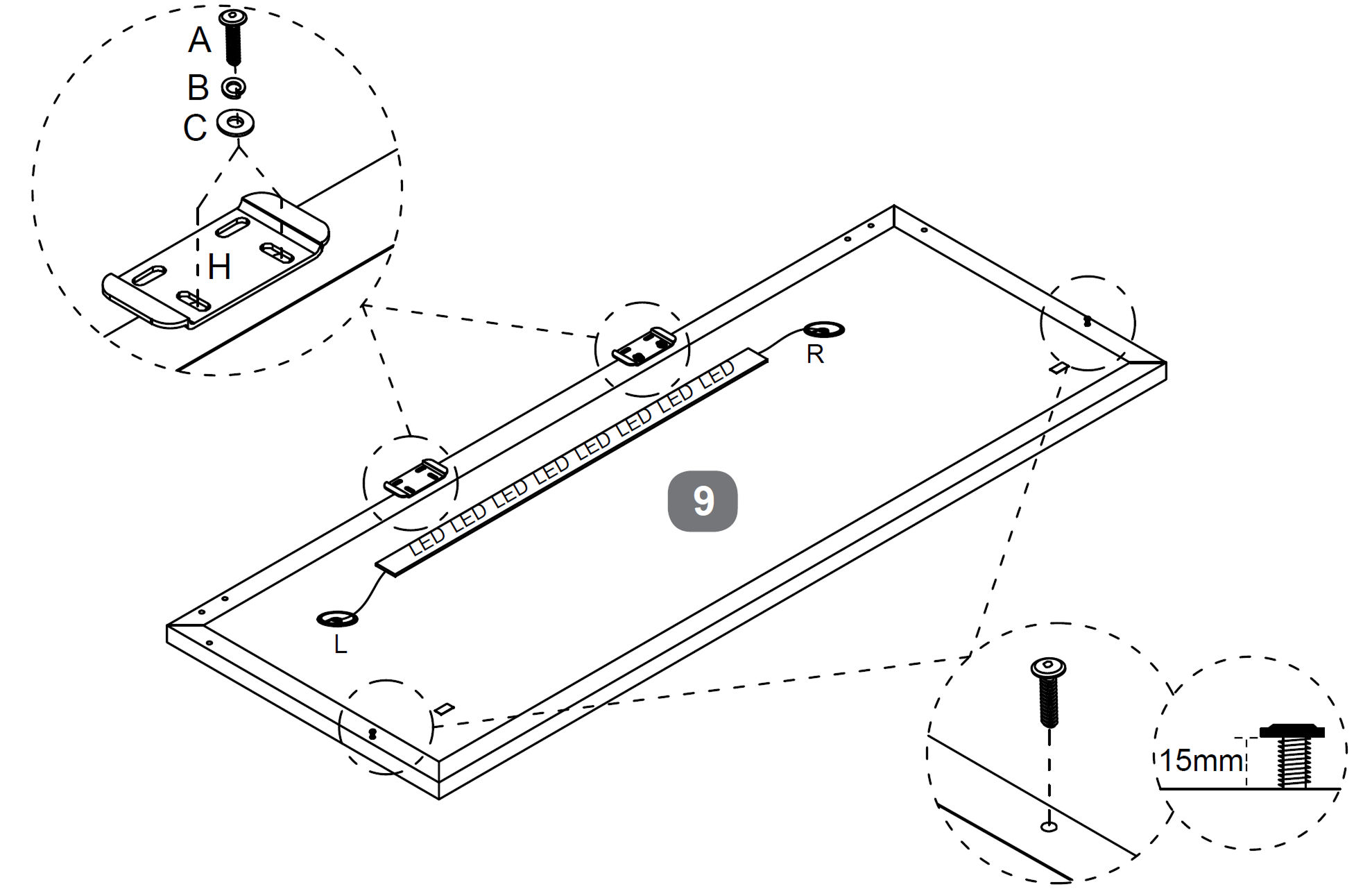 - Place the Mattress Base Board - Lower (9) on a flat surface with the underside facing up.
