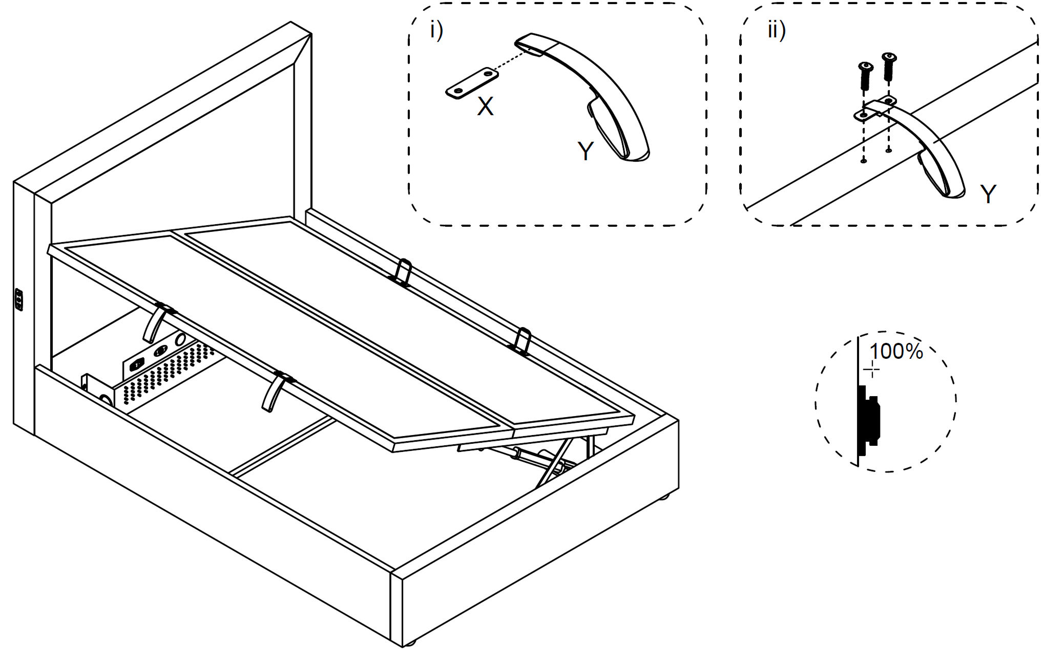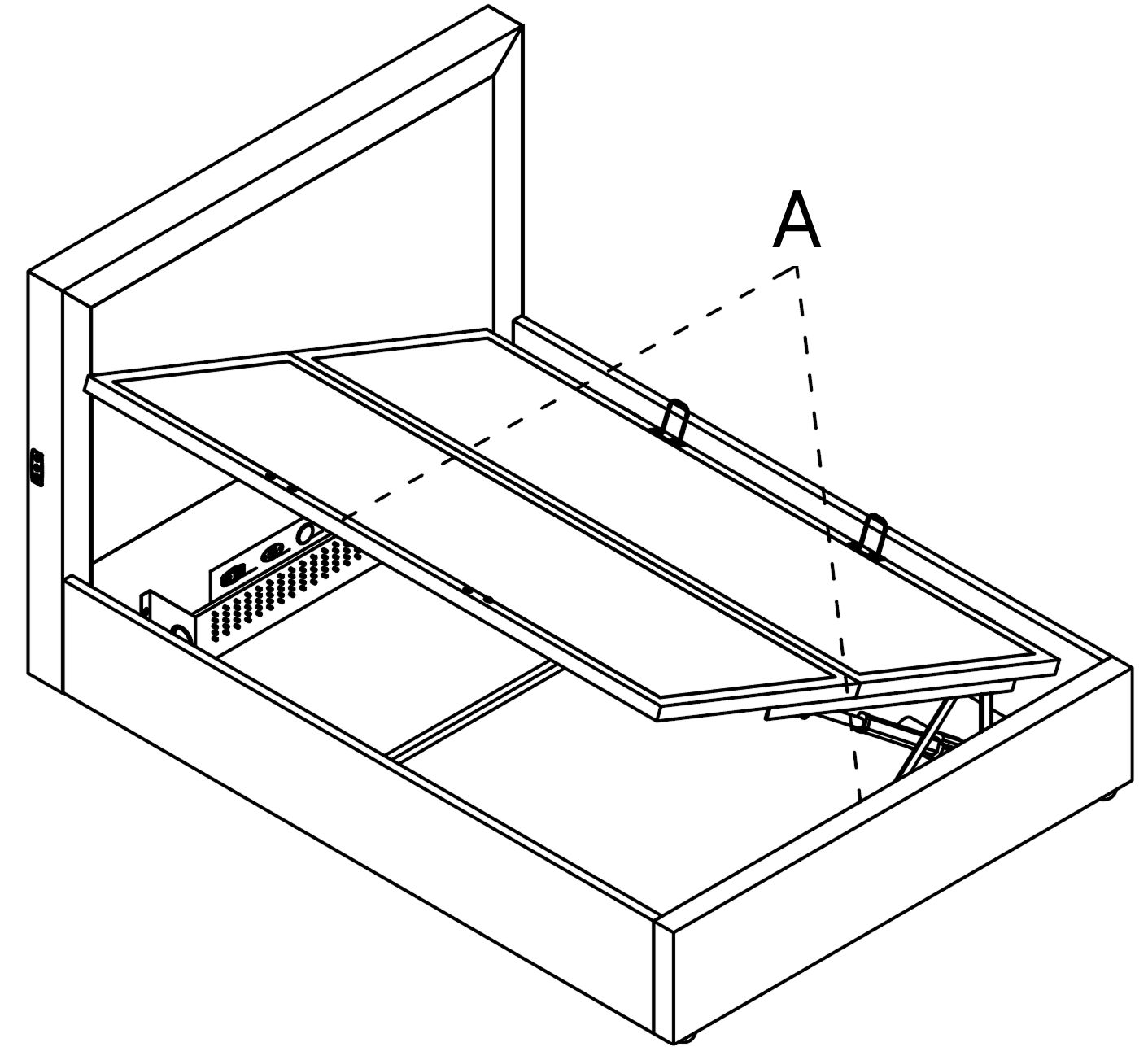 - Raise the mattress base slightly to access the fixing points on the lift mechanism arms.