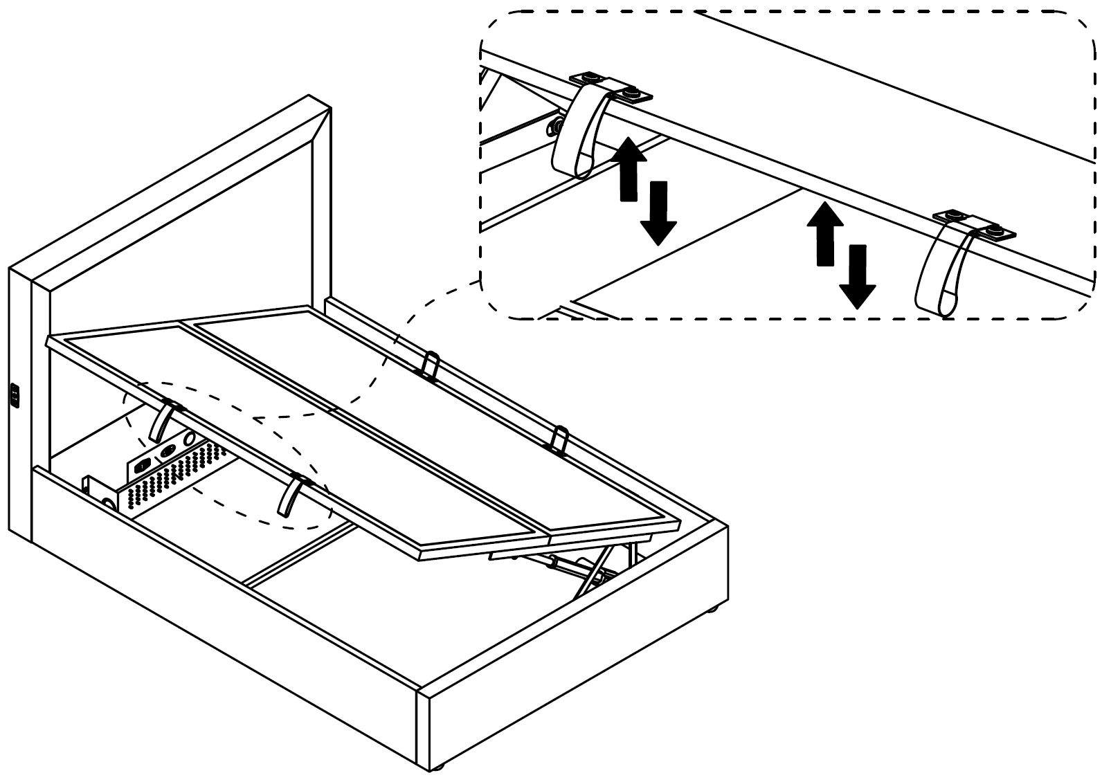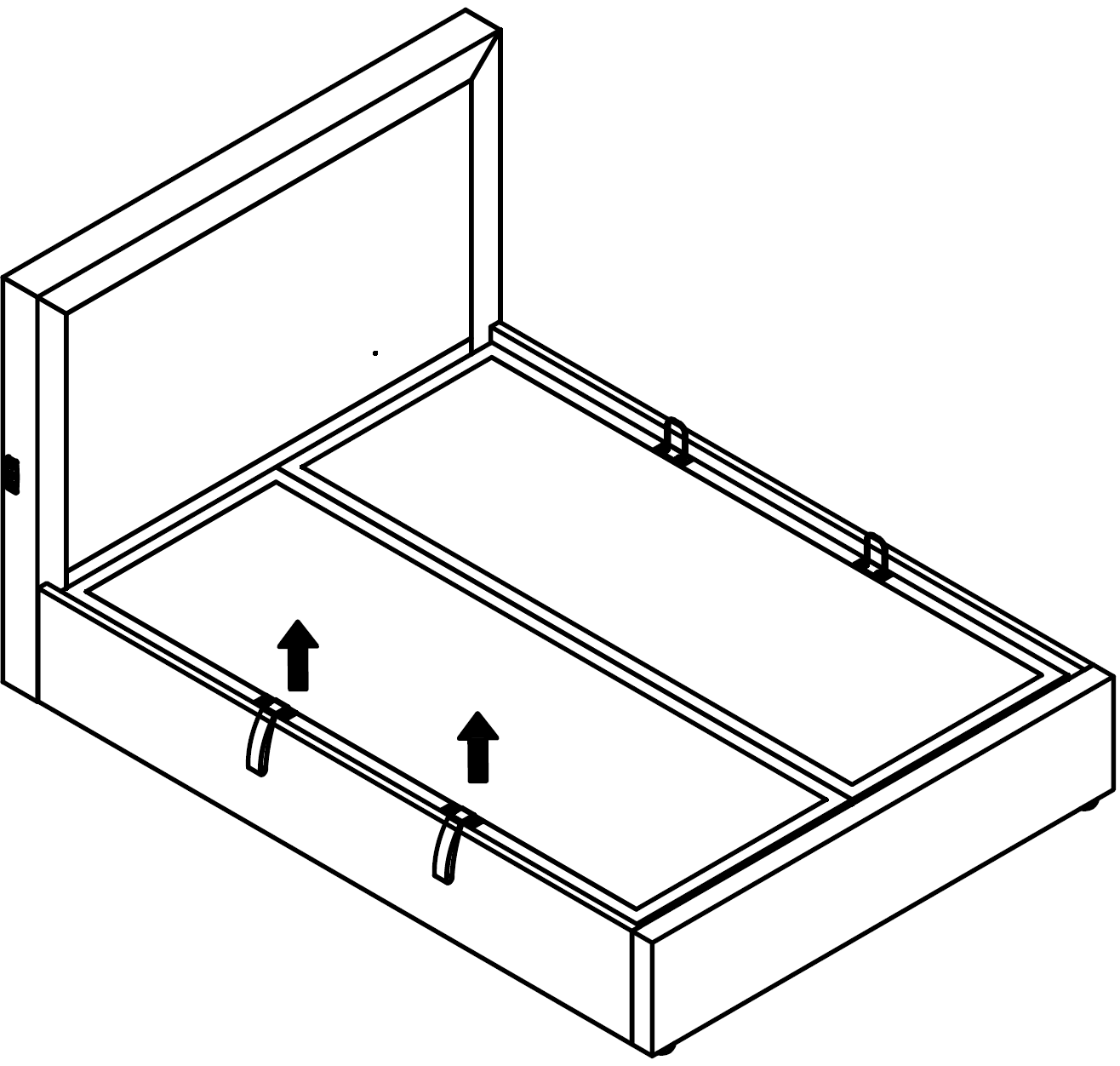 - Once access to the storage area is complete and items have been removed, carefully lower the mattress base back to its closed position using the hand straps.