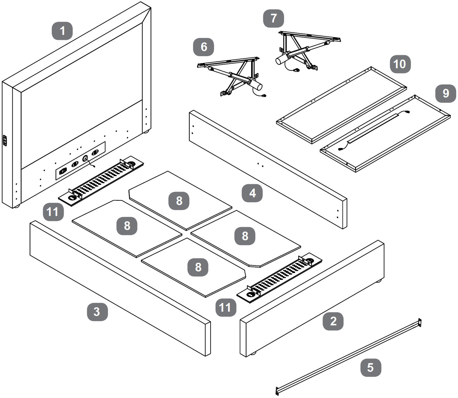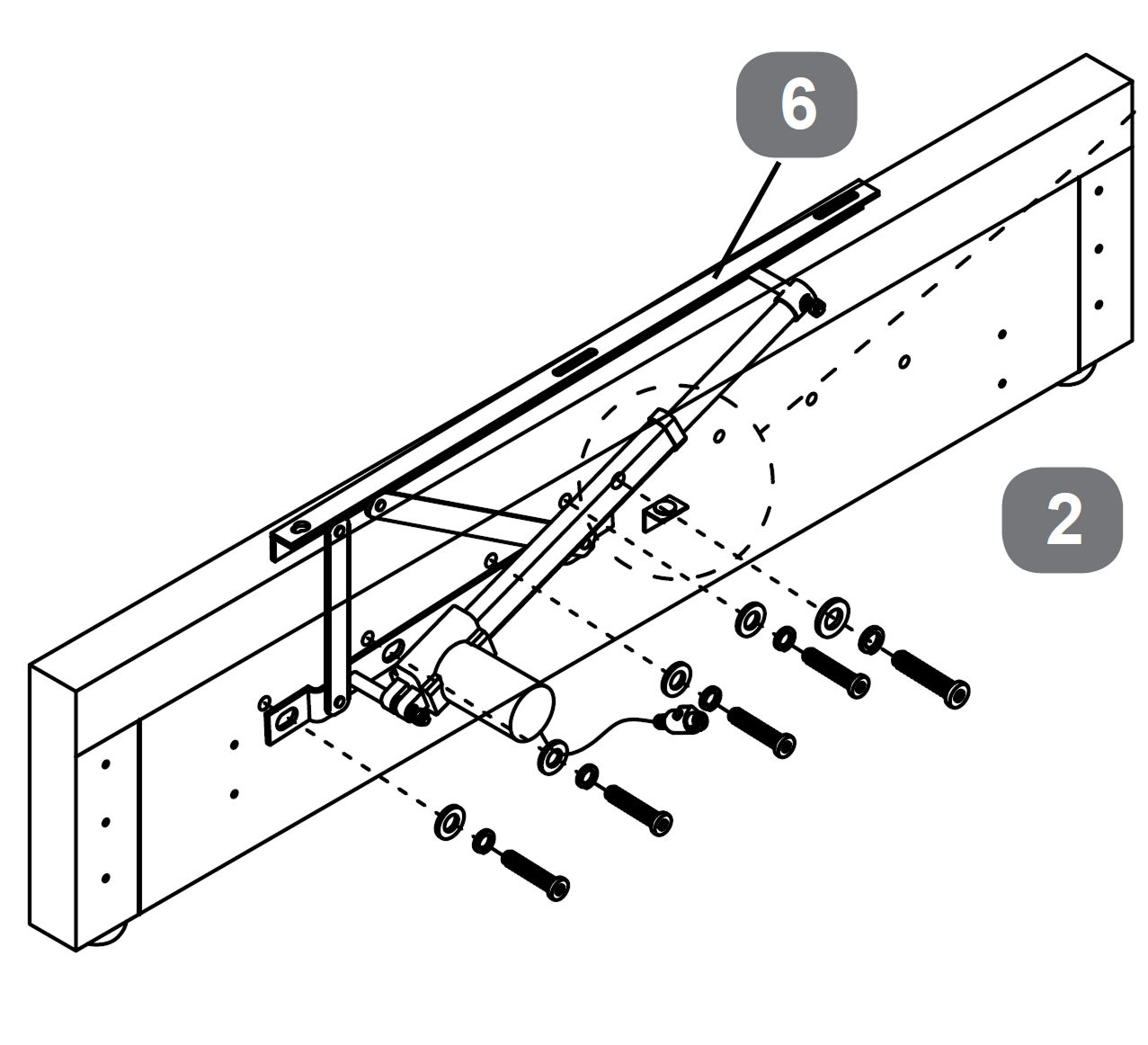 Lift the Mattress Base Board - Upper (10) into position and align it with the lift mechanisms as shown.