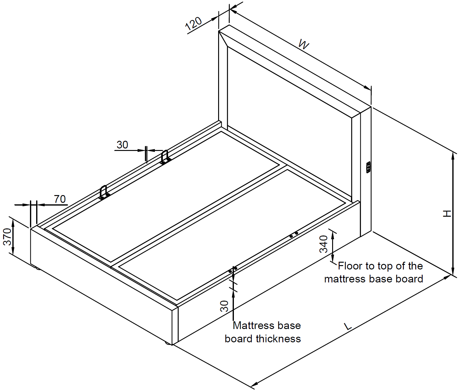Ensure stored items are no taller than 265 mm to prevent damage to the lift mechanism and mattress base.