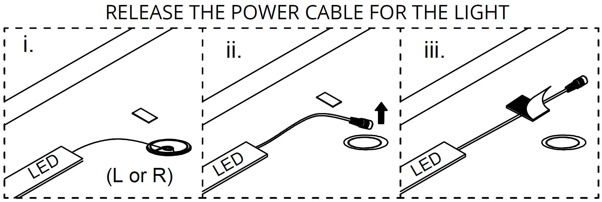 - Release the power cable for the LED light by removing it from the cable holder as shown.