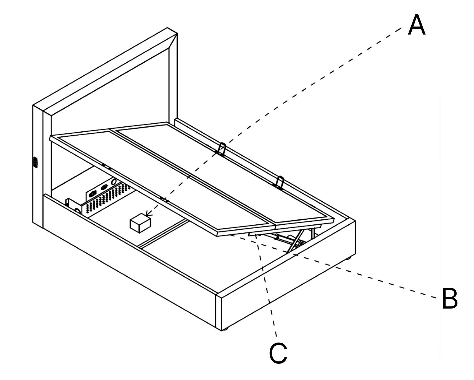 - If the bed opens from the right, connect the LED light cable to (L), which will be on the left side of the bed nearest to the headboard (A) when viewed standing behind the footboard.