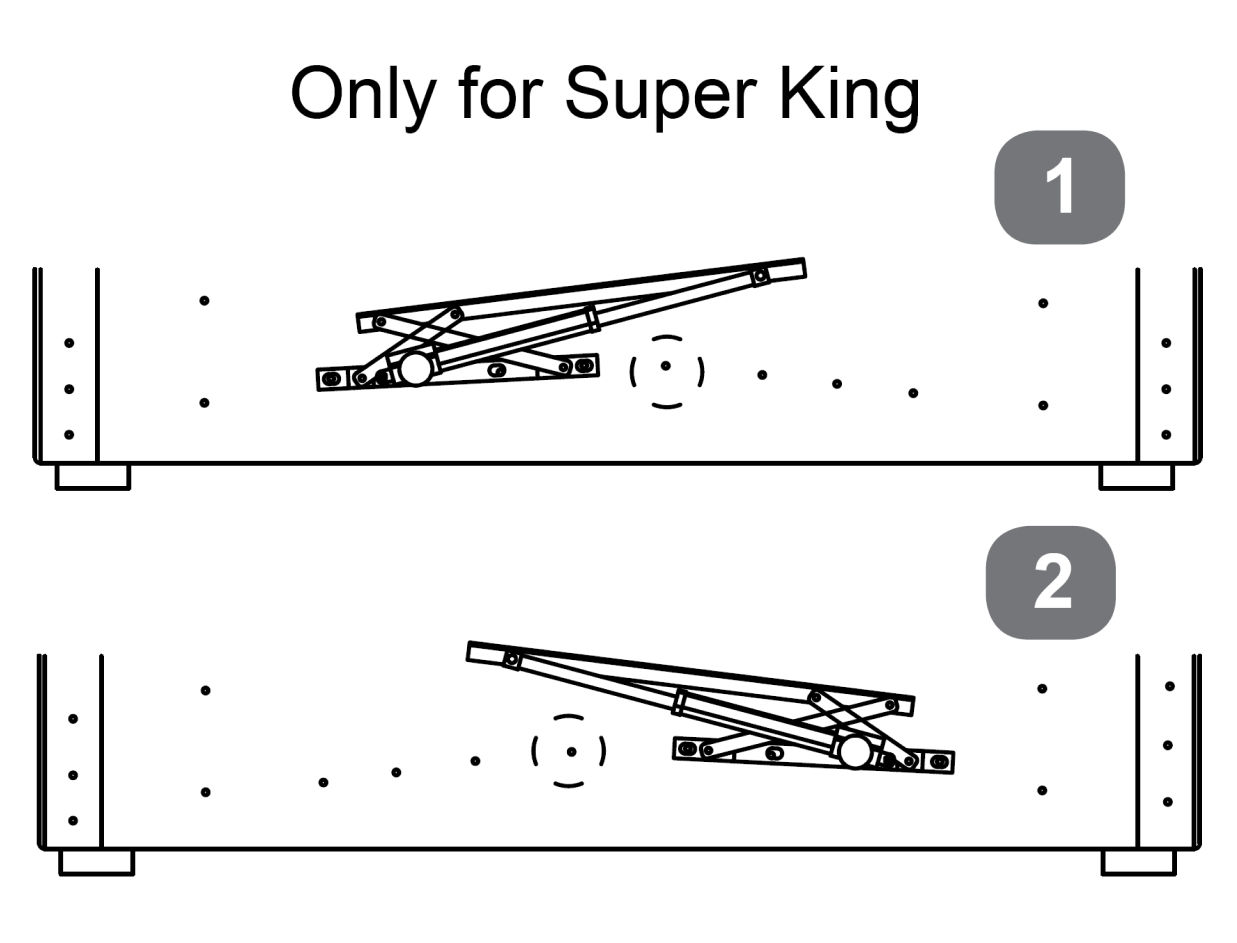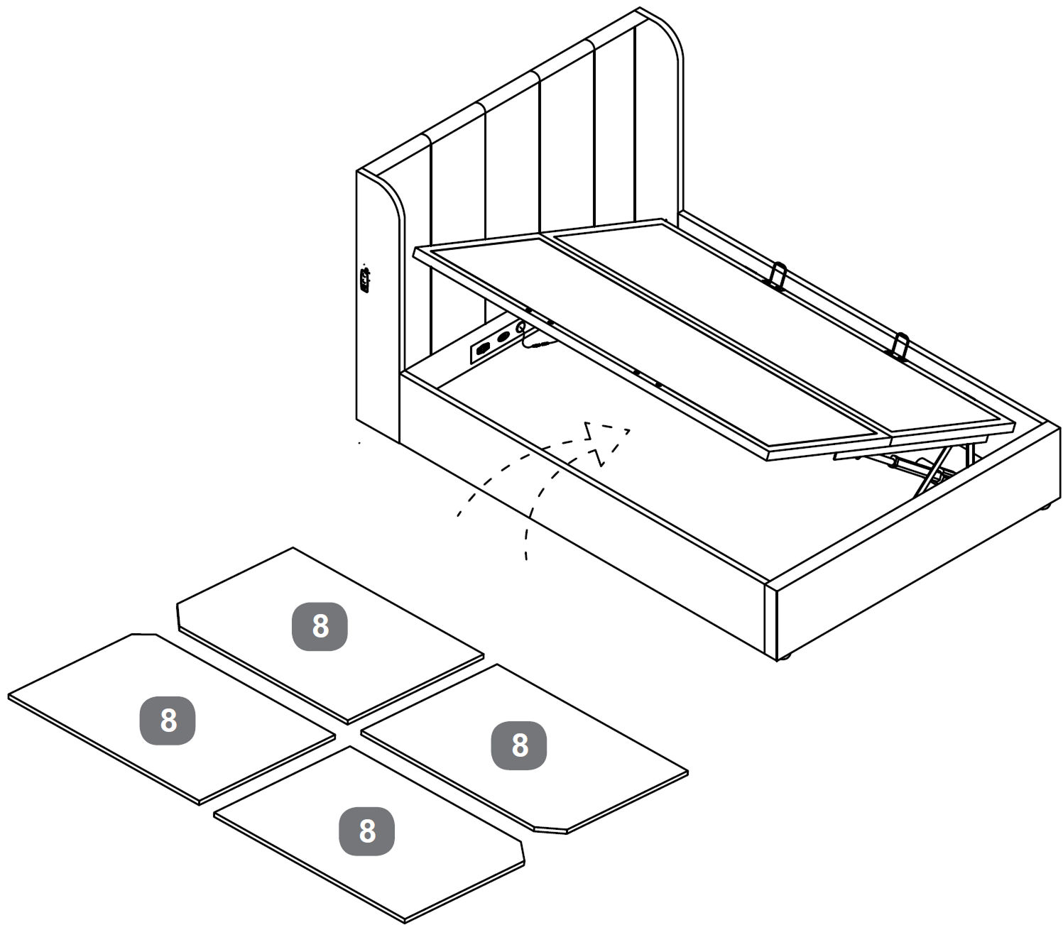 - If you want the bed to open from the right side, position both Gas lift Mechanism - Right (6) and Gas lift Mechanism - Left (7) on the left side of the headboard and footboard, using the holes marked L with red labels.