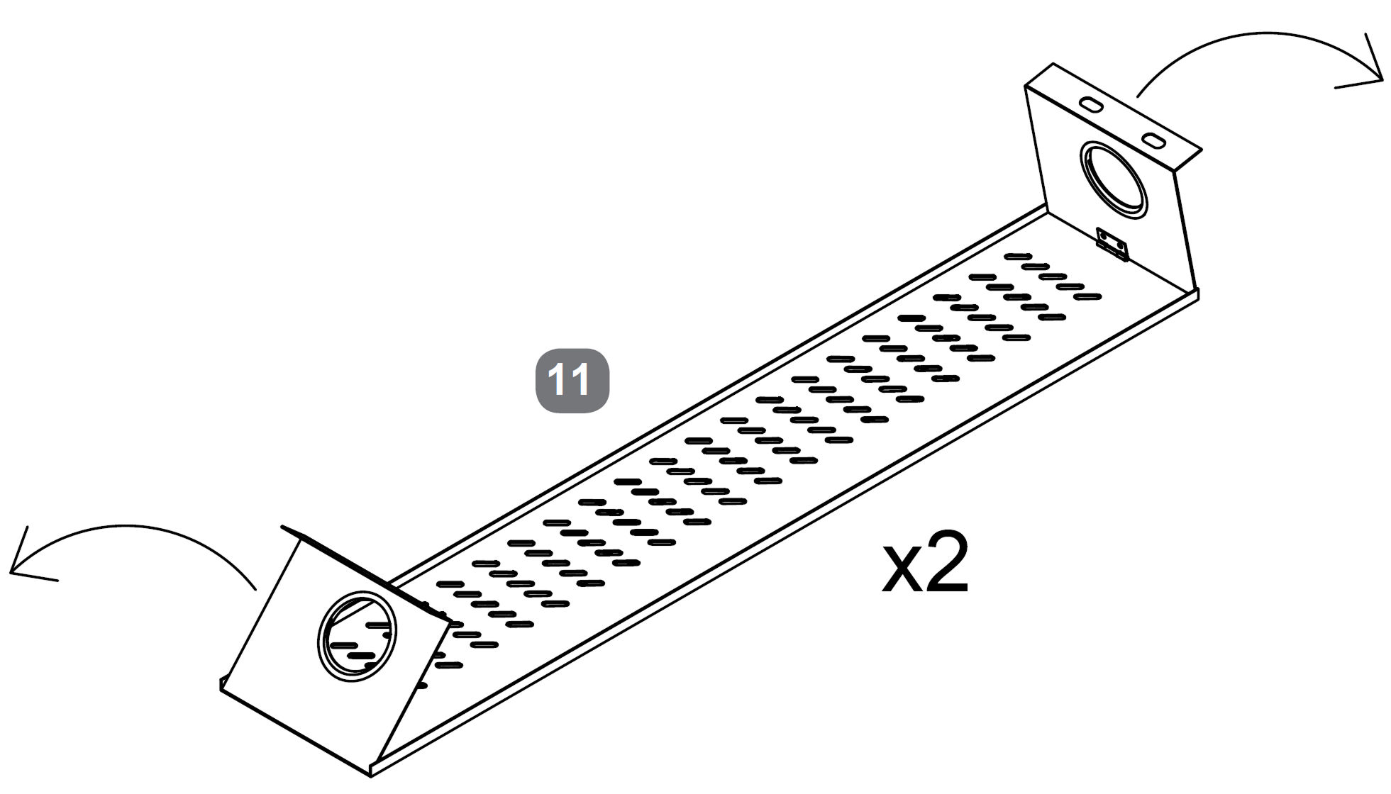 - Take the Metal Cable Guards (11) and fold the end tabs upward as shown, creating a right angle at each end.