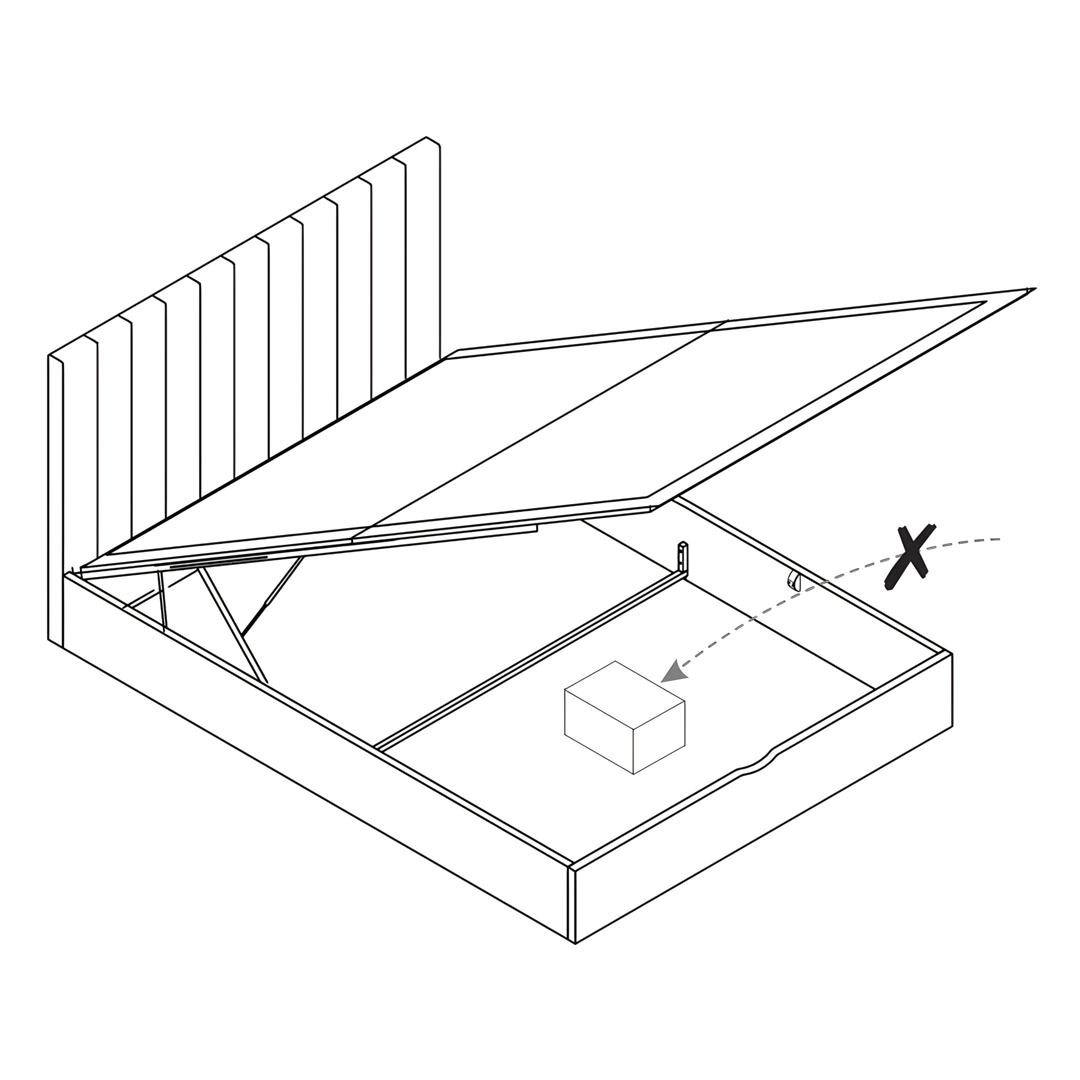 Be very careful what you store under the bed -the top of an item, like a suitcase or a box, must not touch the slats or theymay be damaged.