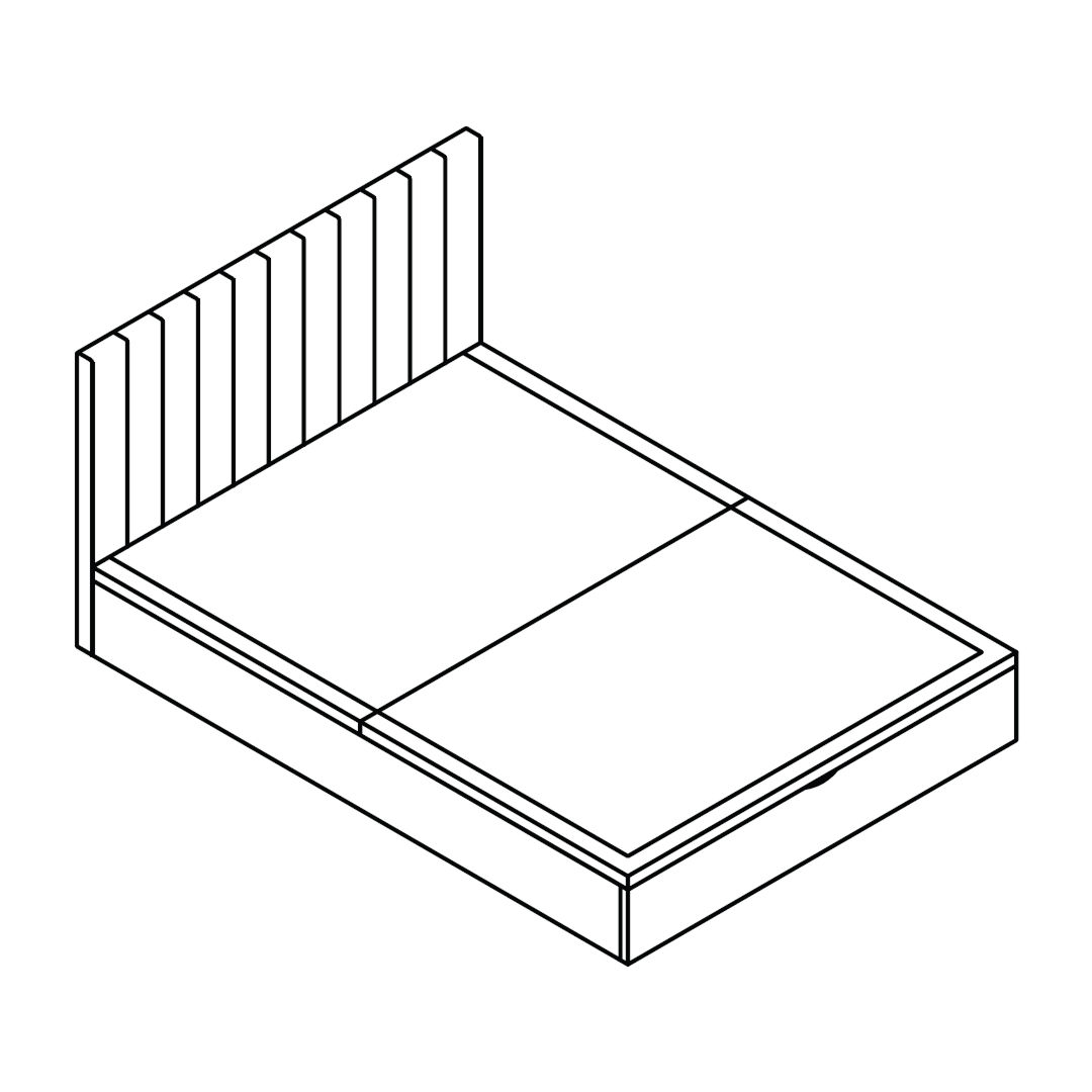 Attach the Fabric Base Cover (9) to the bottom of the Side Rails (3 & 4), Headboard (1), and Footboard (2) using the Velcro tape.